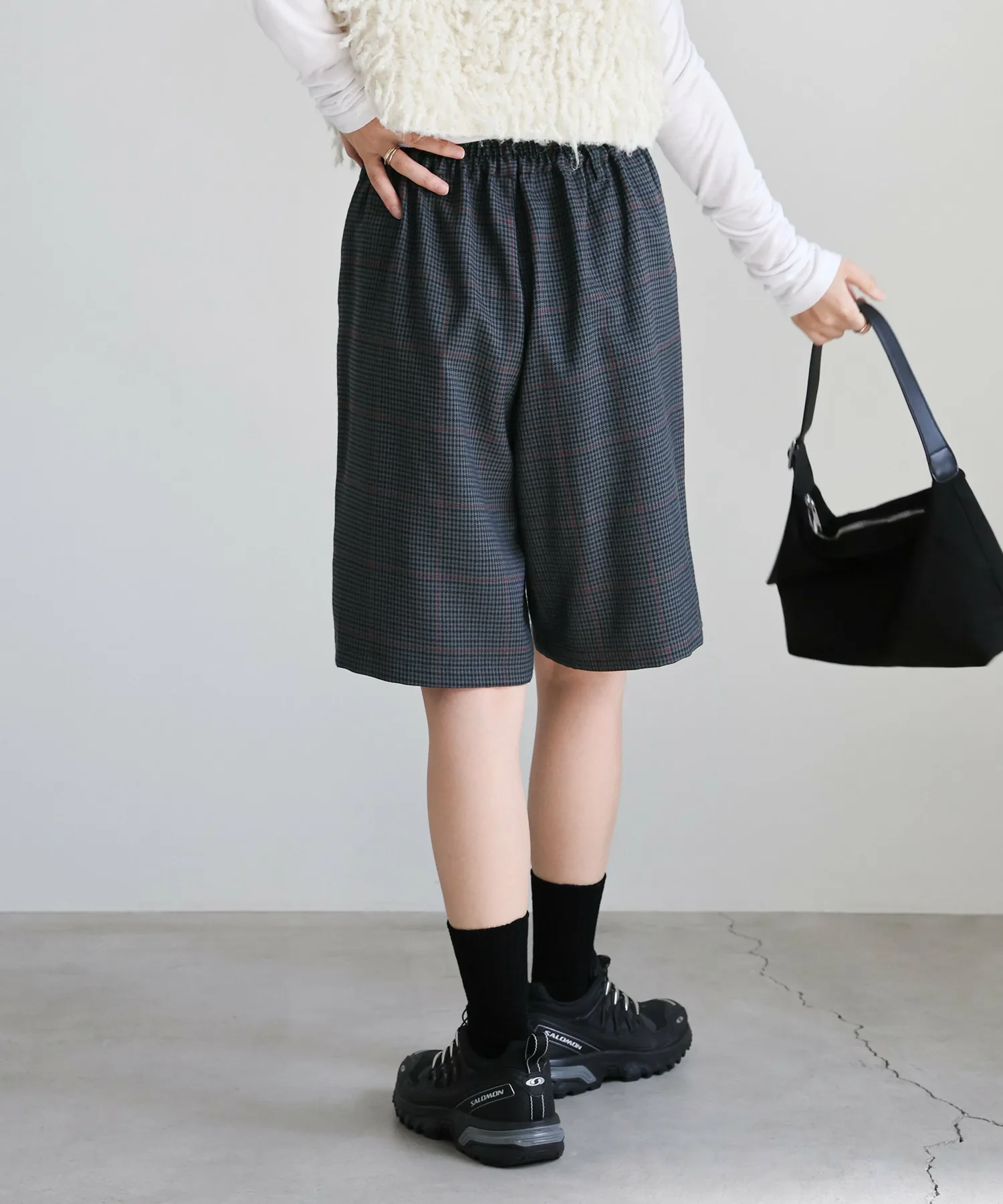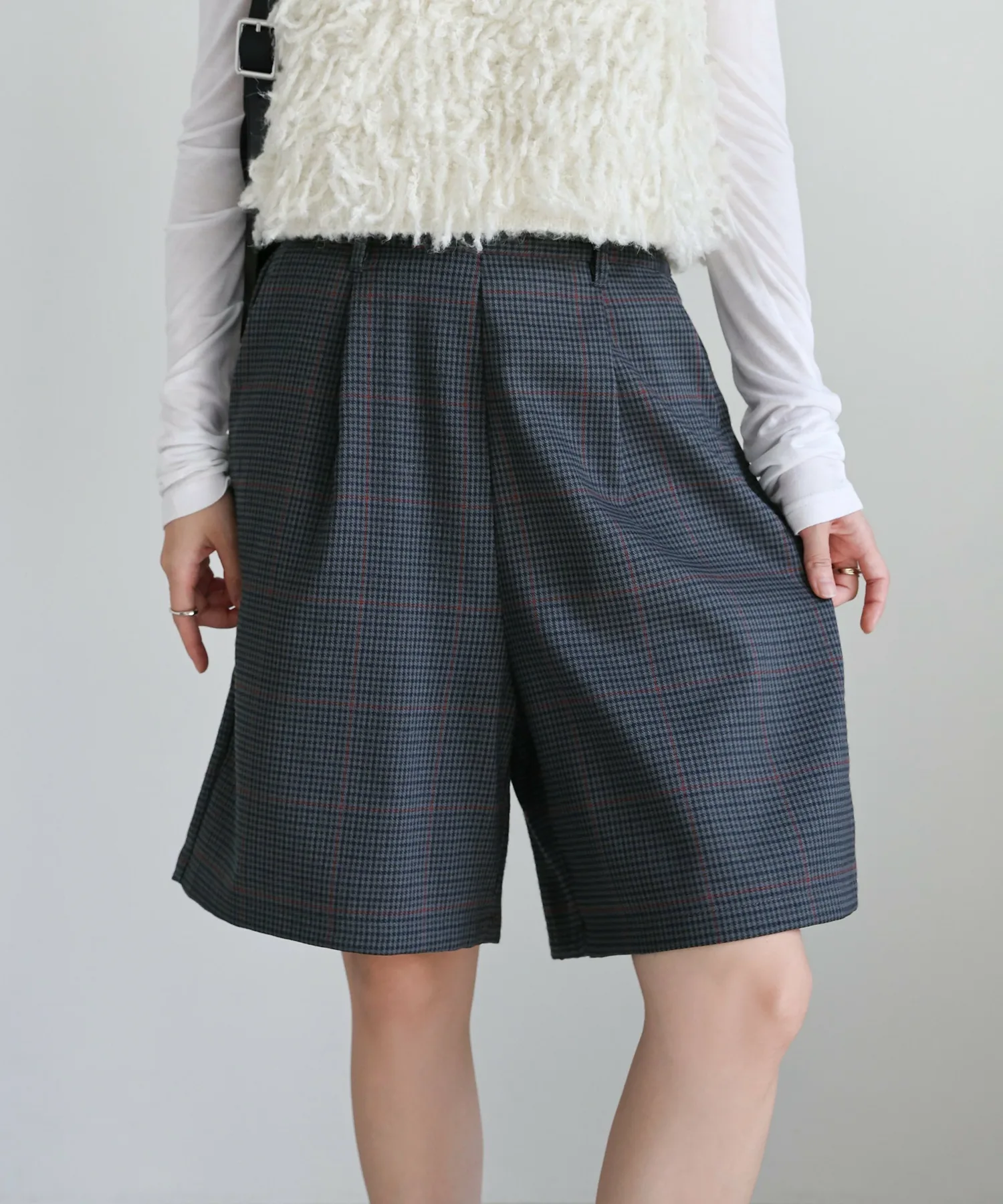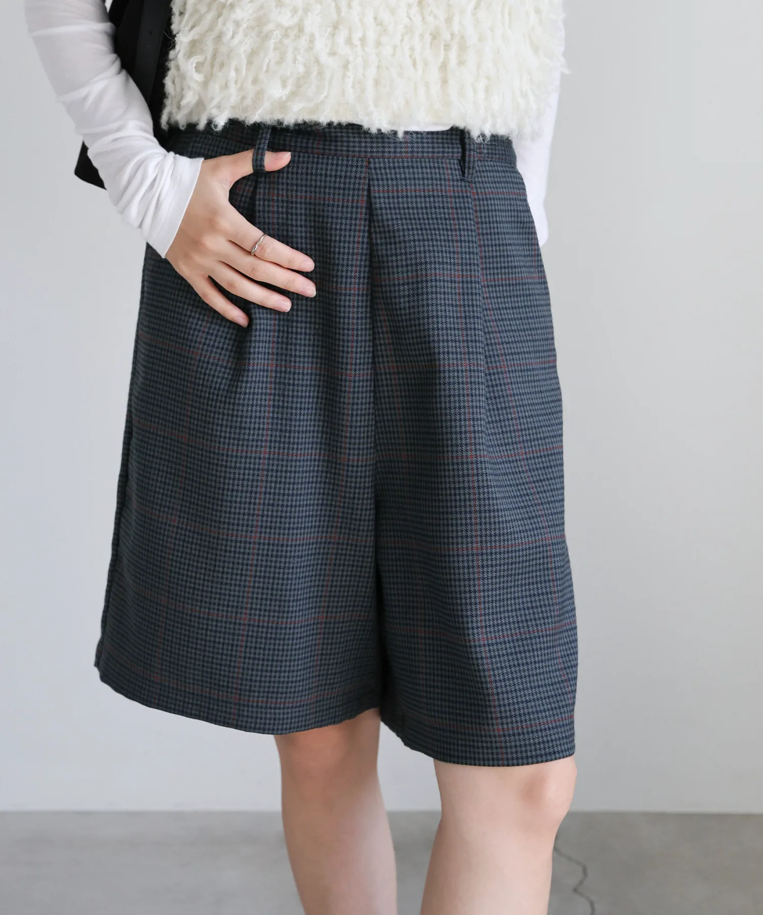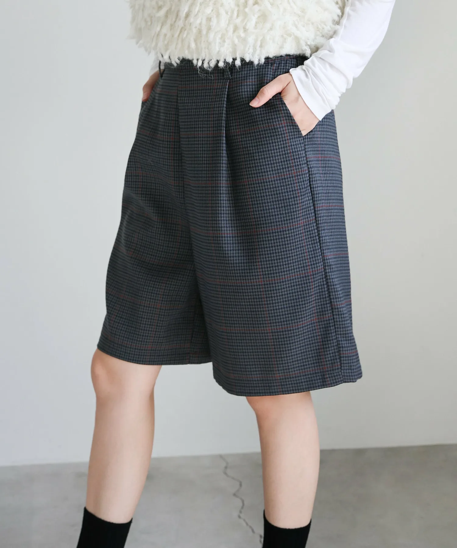 Эти шорты сочетают в себе изысканный и непринужденный стиль. Нежный клетчатый узор прекрасно дополняет цвет, создавая классический образ, не слишком повседневный. Эластичная вставка сзади обеспечивает комфортную посадку, а простота ухода позволяет стирать их дома. Мы рекомендуем сочетать их с объемной рубашкой или трикотажным свитером, чтобы добавить объема верхней части тела. Также можно носить в комплекте с курткой (ou225104), изготовленной из того же материала. [Инструкции по стилю] Идеально подходят для изысканного, расслабленного повседневного стиля. Сочетайте их с простой футболкой или футболкой для освежающего и сбалансированного образа. Наденьте их поверх куртки или кардигана для повседневной носки или прогулки. Мы рекомендуем завершить образ кроссовками или сандалиями для более легкого варианта. Эта универсальная вещь идеально подходит для перехода между сезонами.