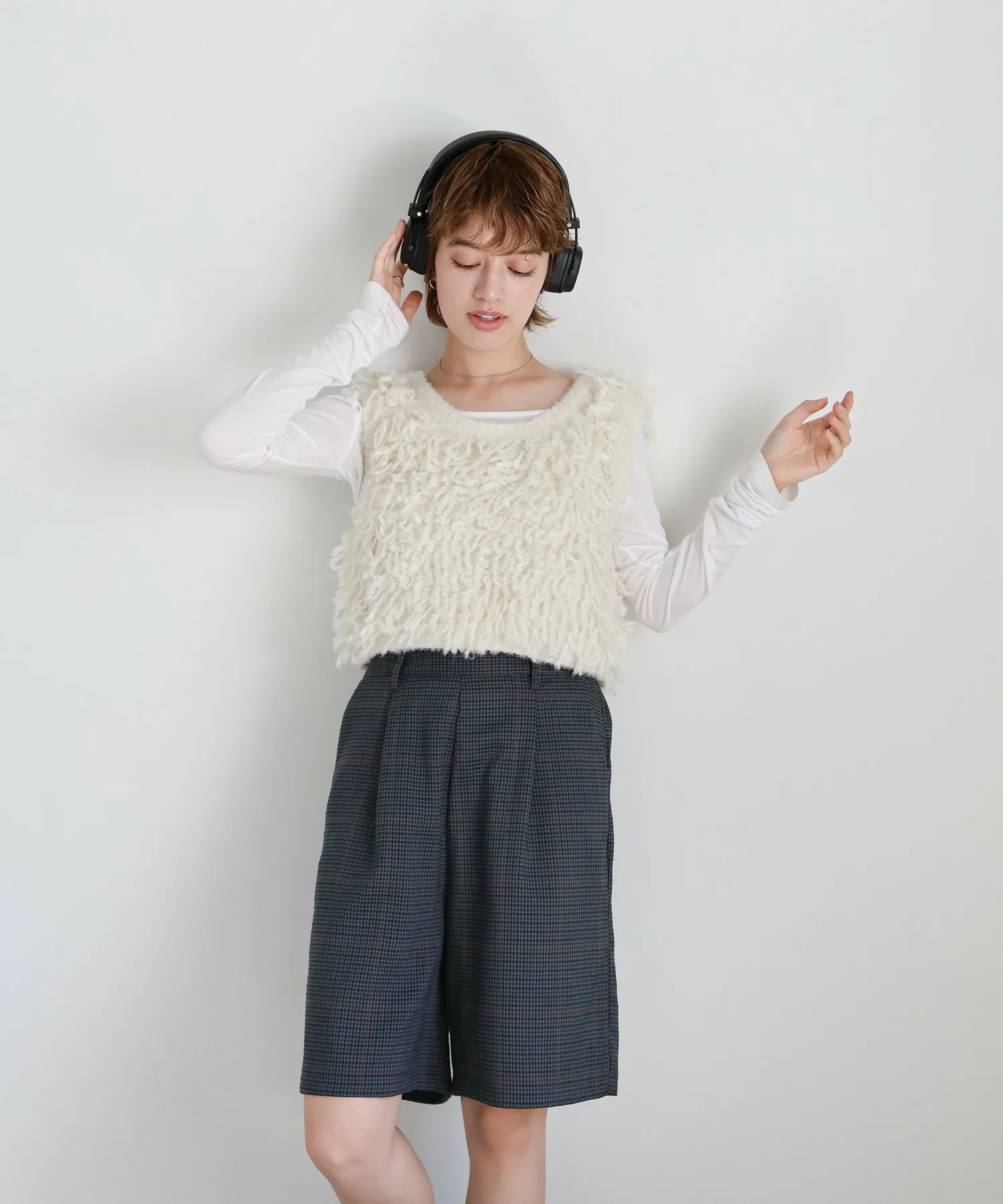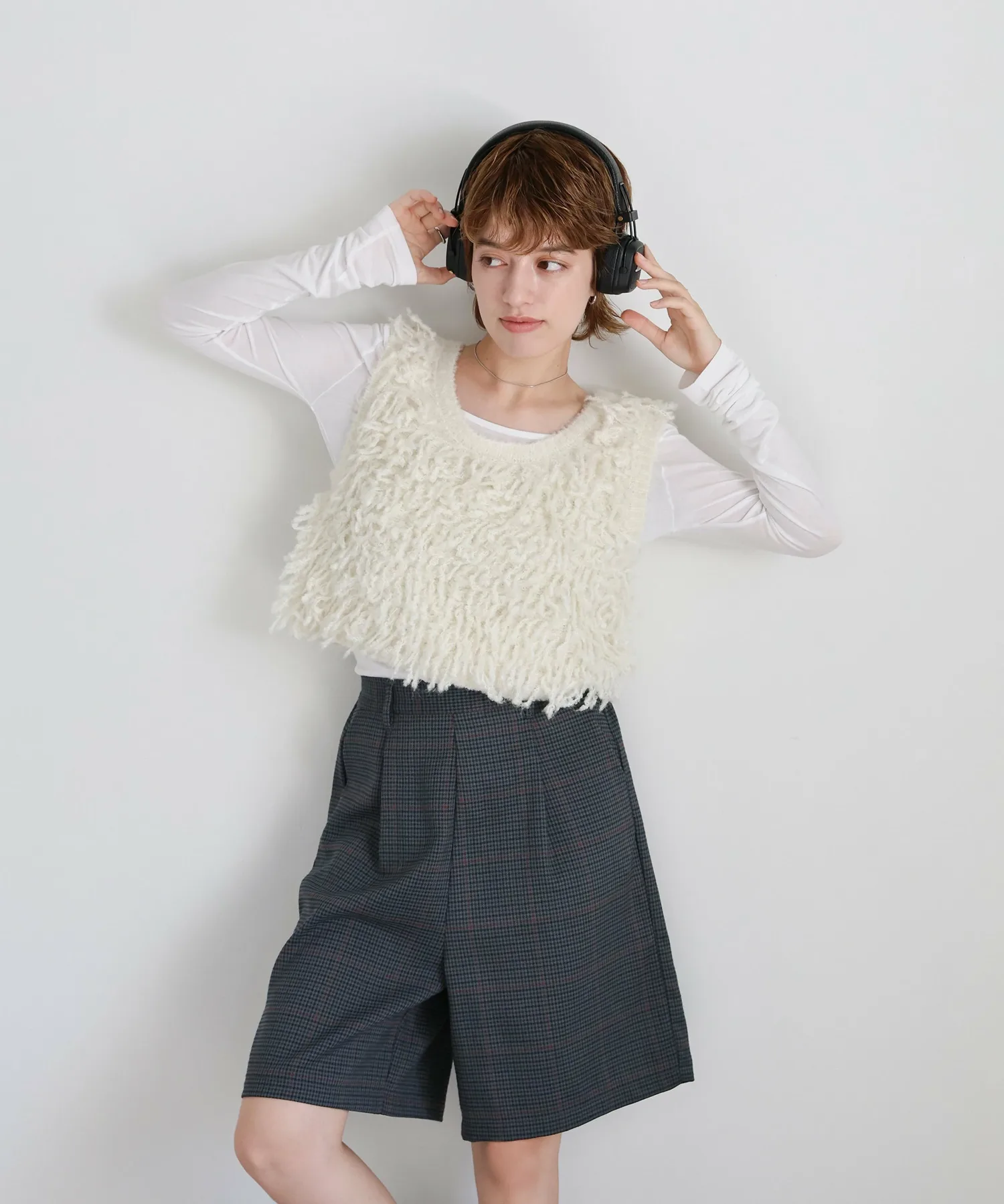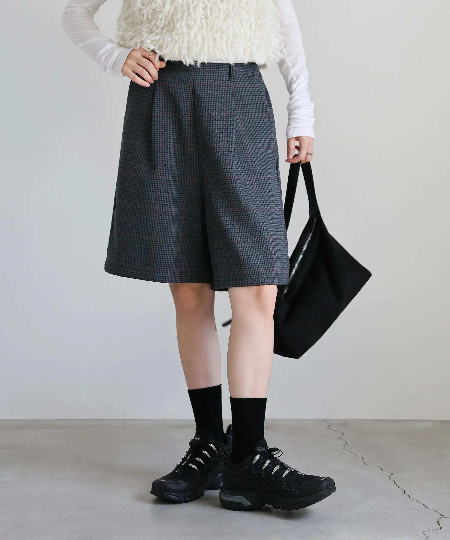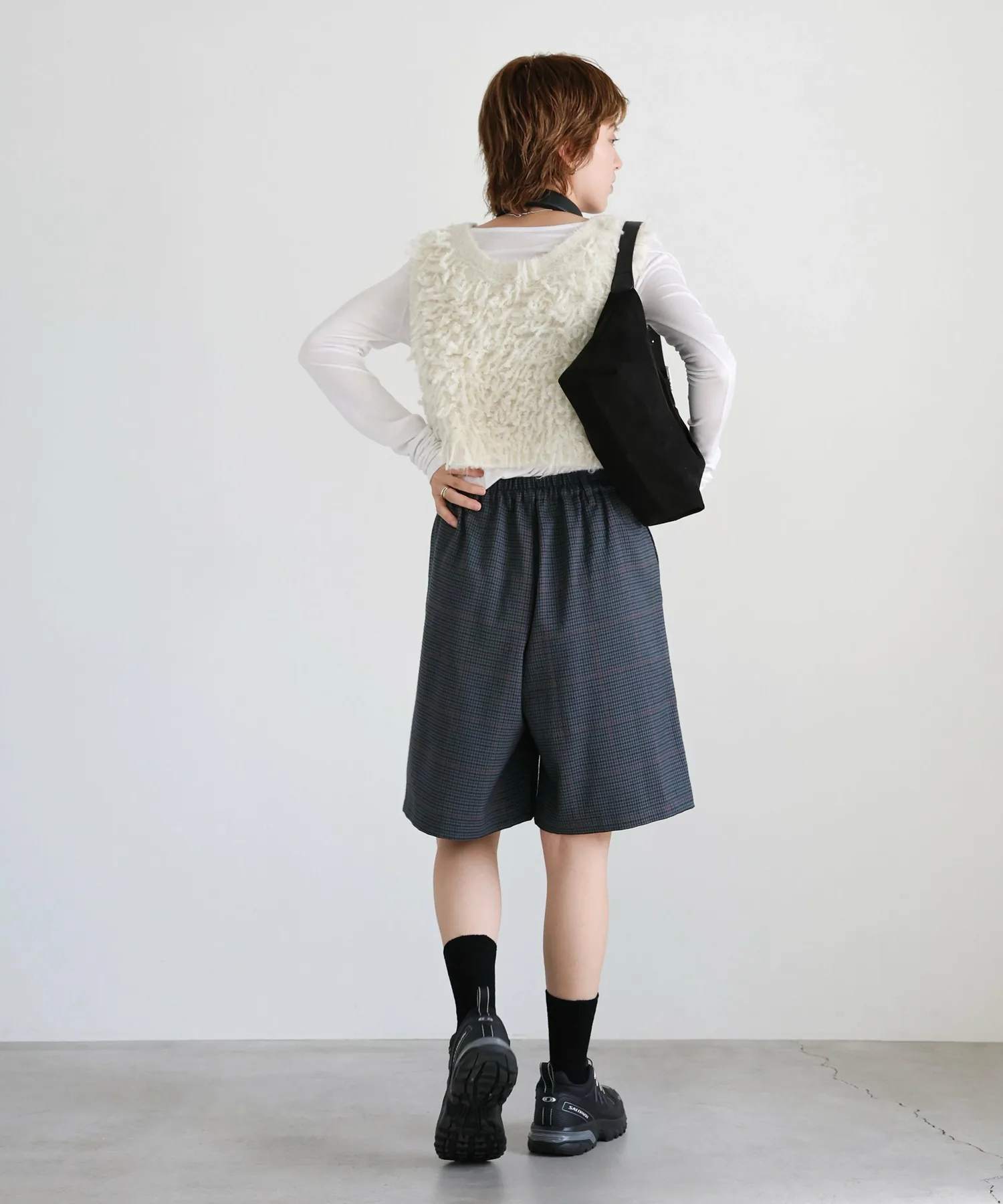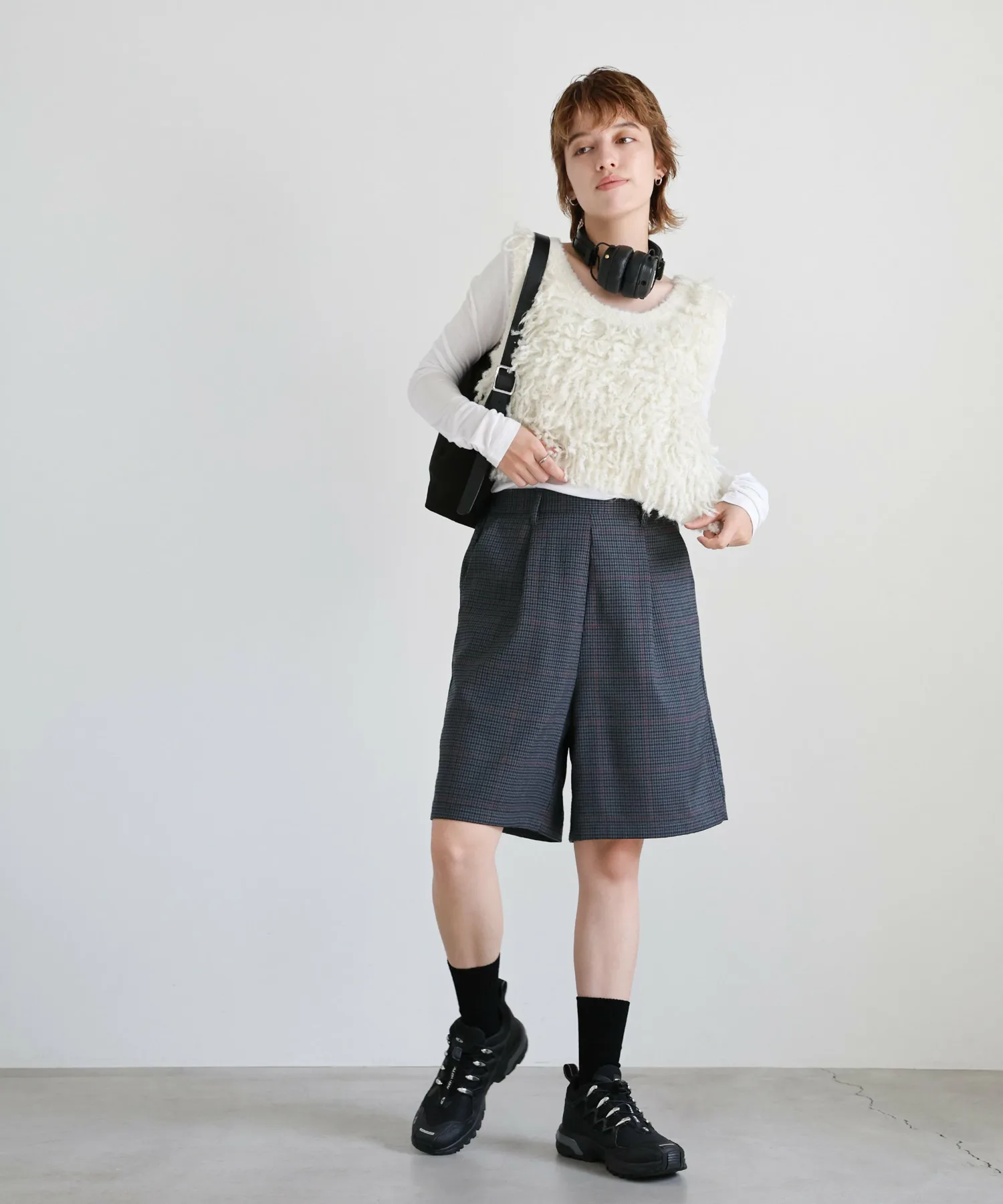 Эти шорты сочетают в себе изысканный и непринужденный стиль. Нежный клетчатый узор прекрасно дополняет цвет, создавая классический образ, не слишком повседневный. Эластичная вставка сзади обеспечивает комфортную посадку, а простота ухода позволяет стирать их дома. Мы рекомендуем сочетать их с объемной рубашкой или трикотажным свитером, чтобы добавить объема верхней части тела. Также можно носить в комплекте с курткой (ou225104), изготовленной из того же материала. [Инструкции по стилю] Идеально подходят для изысканного, расслабленного повседневного стиля. Сочетайте их с простой футболкой или футболкой для освежающего и сбалансированного образа. Наденьте их поверх куртки или кардигана для повседневной носки или прогулки. Мы рекомендуем завершить образ кроссовками или сандалиями для более легкого варианта. Эта универсальная вещь идеально подходит для перехода между сезонами.