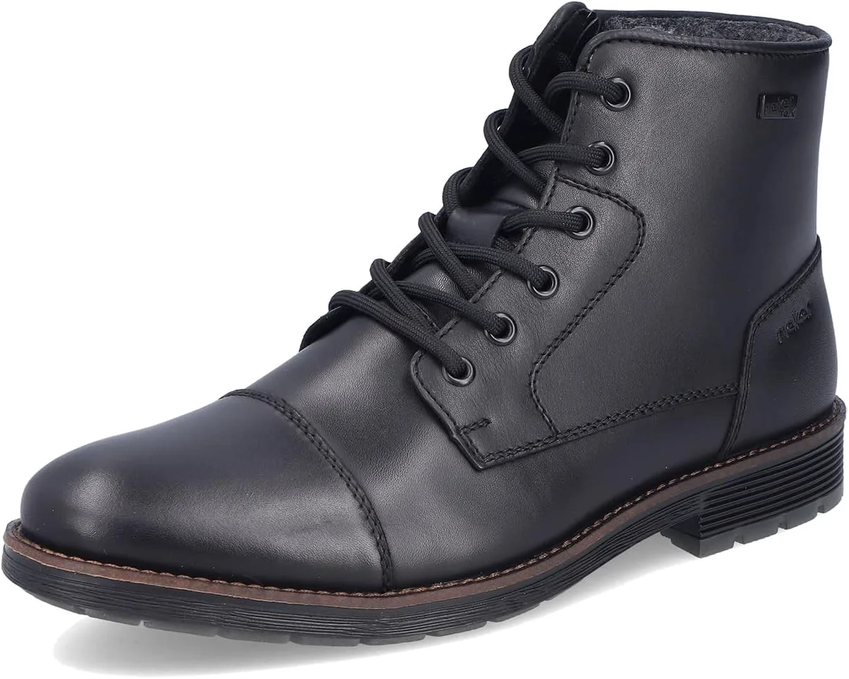 Стиль в полном порядке! Эти черные ботинки Rieker на шнуровке из гладкой кожи идеальны для повседневной носки. Умное сочетание шнуровки и молнии обеспечивает оптимальную поддержку и облегчает надевание и снятие. Подошва обеспечивает хорошее сцепление в любых условиях. Благодаря мягкой съемной стельке, ботинки на шнуровке имеют еще одну практичную функцию комфорта. Комфортная ширина дает пальцам ног достаточно свободы движения. Благодаря технологии RiekerTEX, ботинки на шнуровке водоотталкивающие и поэтому подходят для любой погоды. Настоящая роскошь.