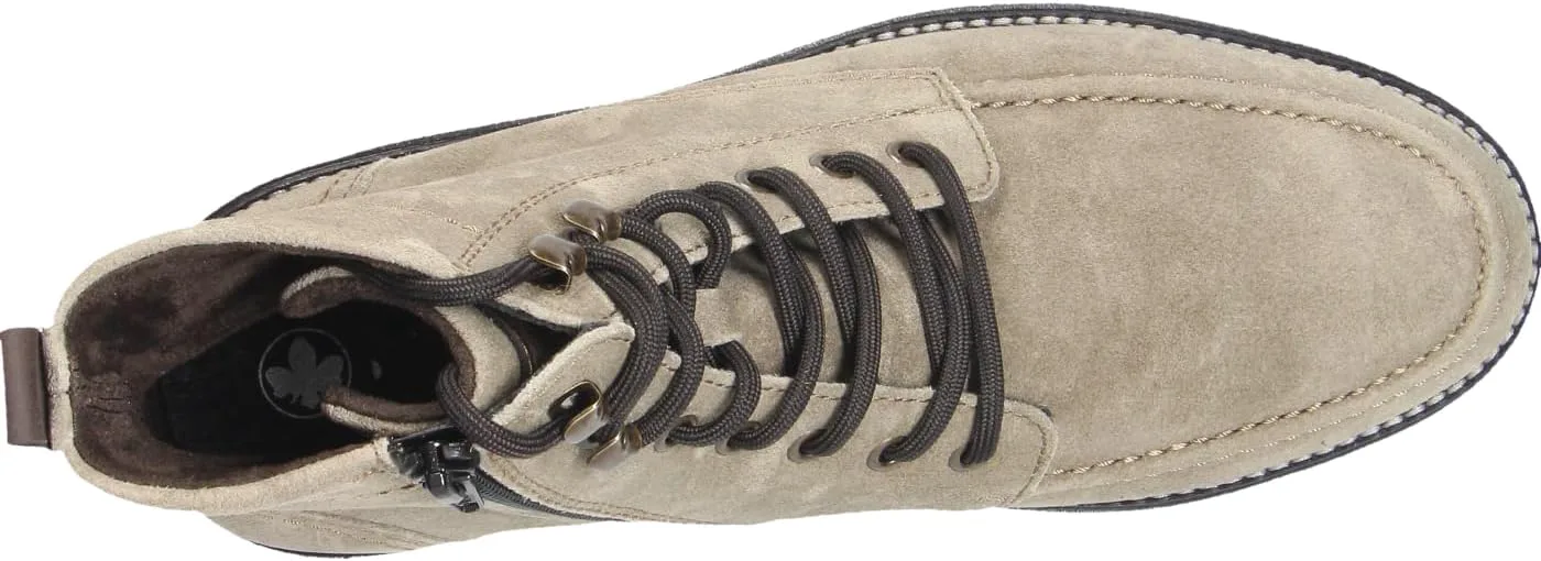 Всегда на шаг впереди! Эти темно-коричневые замшевые ботинки Rieker со шнуровкой - идеальный спутник для любого случая. Шнуровка дополнена молнией, что гарантирует идеальную фиксацию и точную посадку. Альпинистские люверсы умело освежают дизайн. С ультралегкой и амортизирующей подошвой ваши ноги будут наслаждаться максимальным комфортом при ходьбе на каждом шагу. Кроме того, супермягкая стелька обеспечивает дополнительный комфорт. Дополнительным плюсом является дополнительная ширина, которая дает больше пространства в обуви. Внутренняя подкладка из микрозамши легкая и дышащая. Отличное самочувствие гарантировано.
