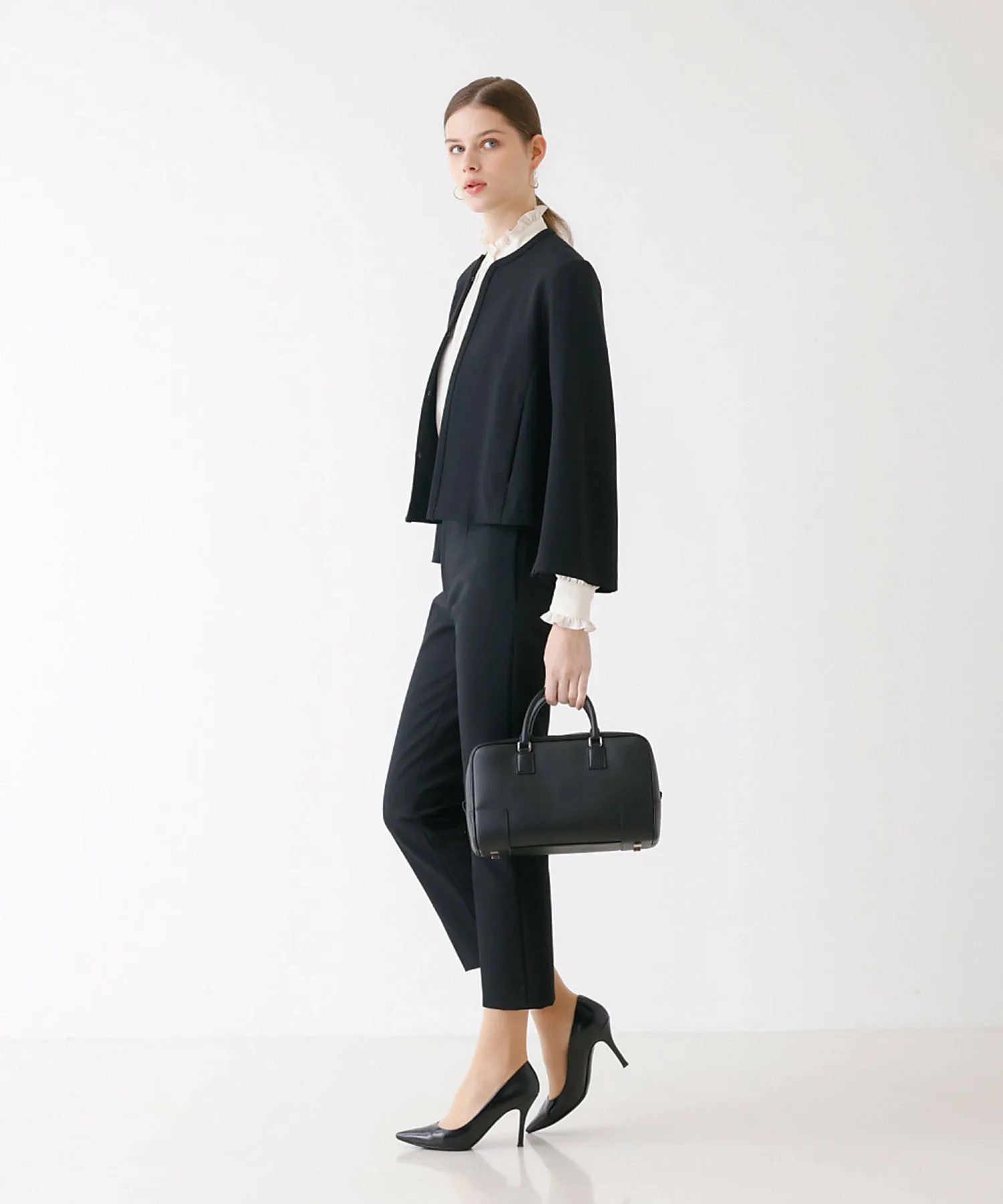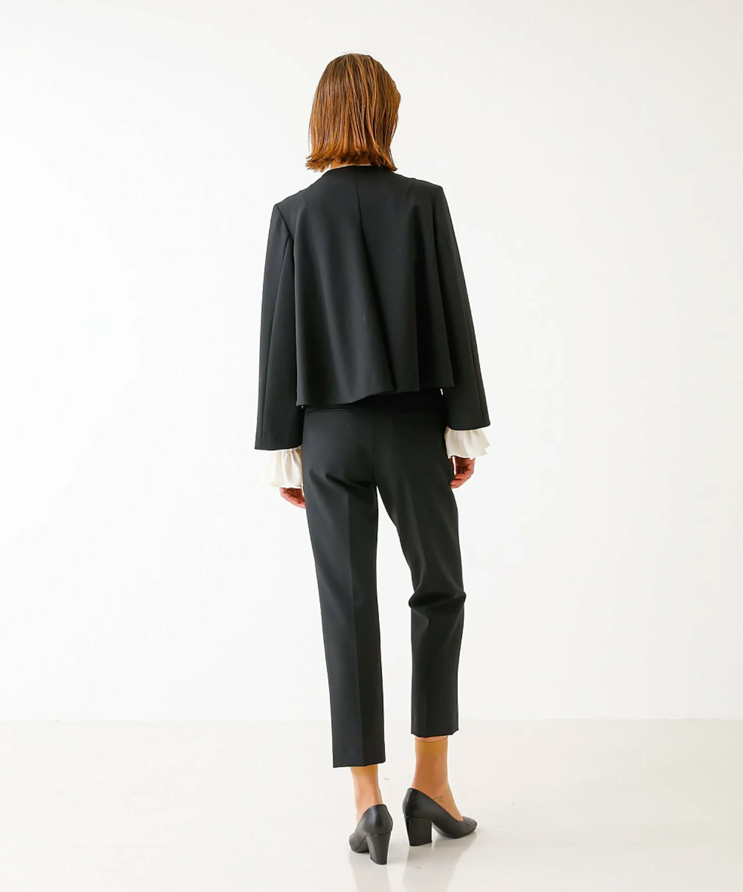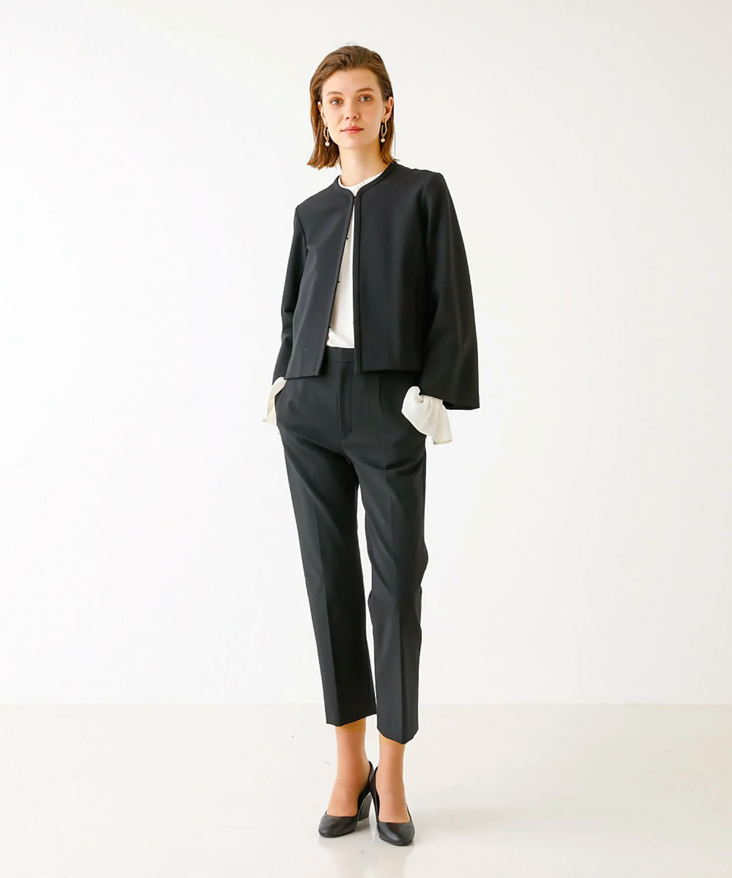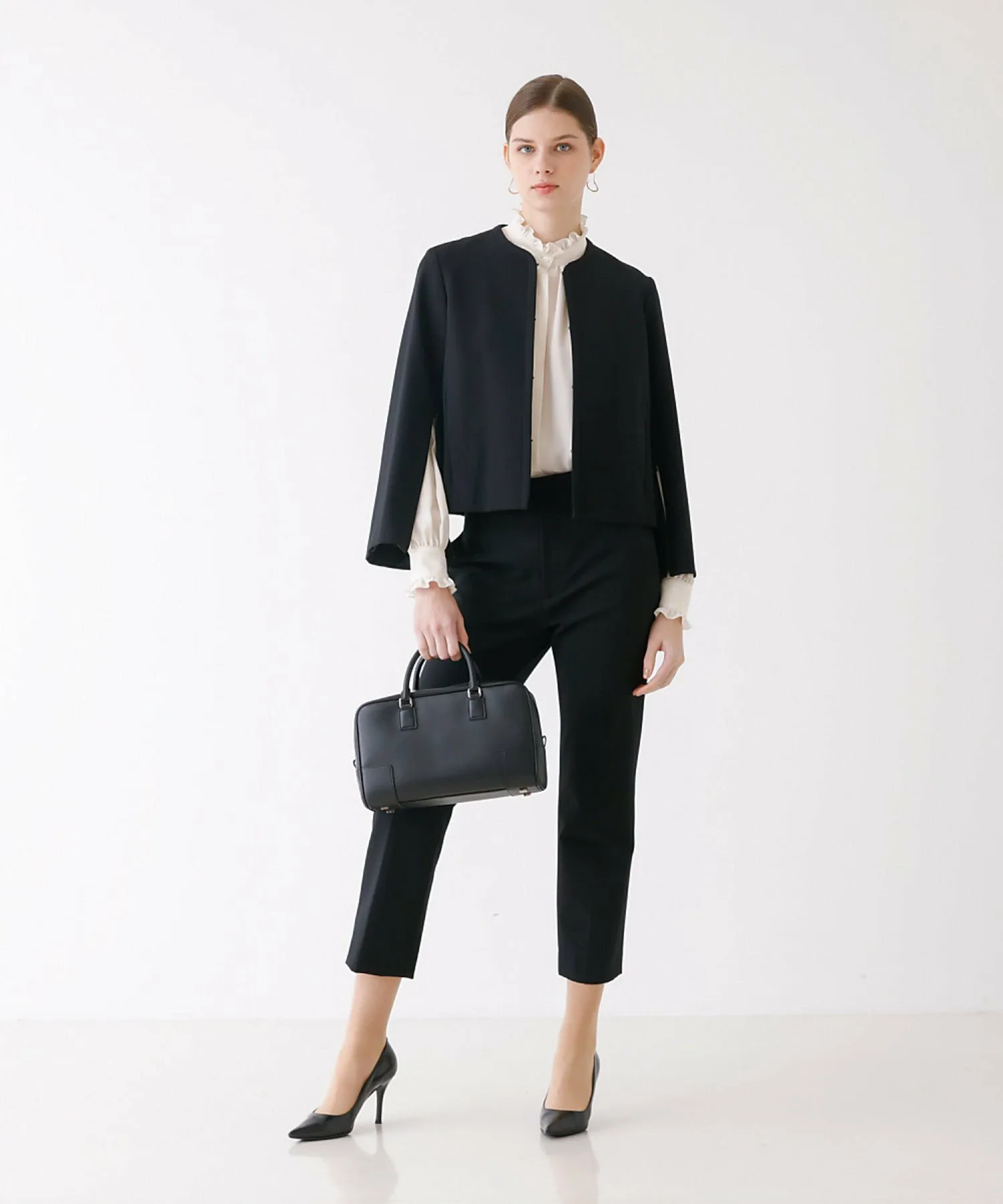 Модель в черном цвете: обхват 177 см, талия 78 см, талия 58 см, обхват 86 см, размер 38.