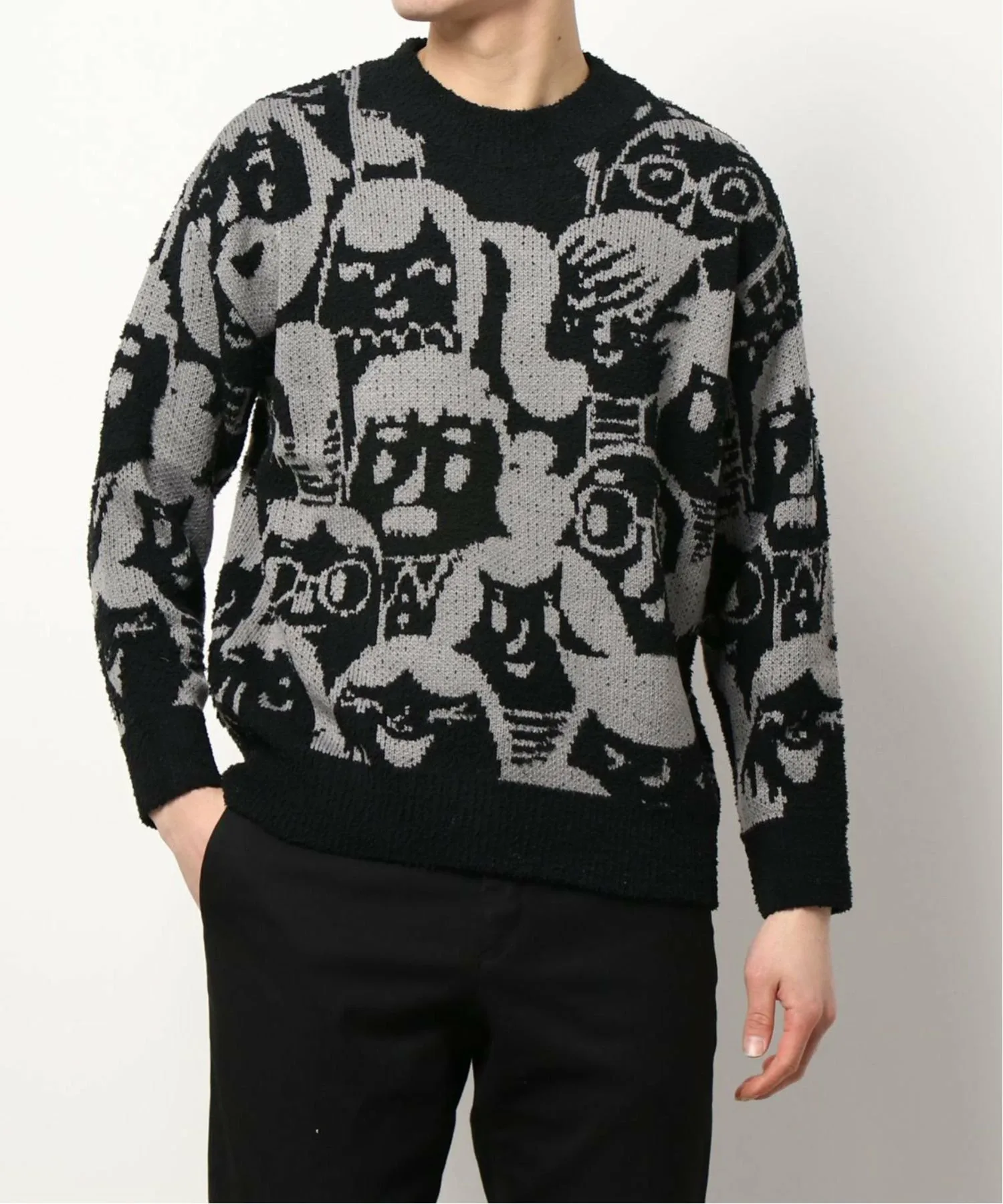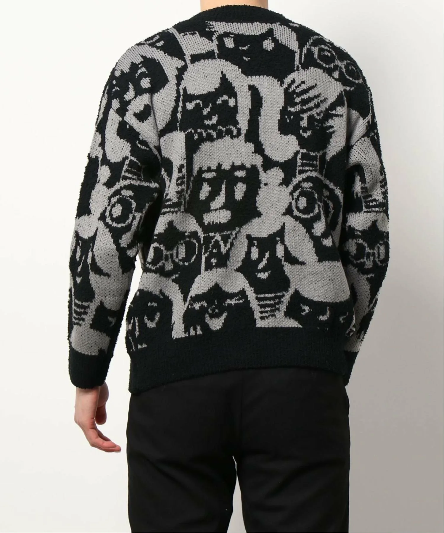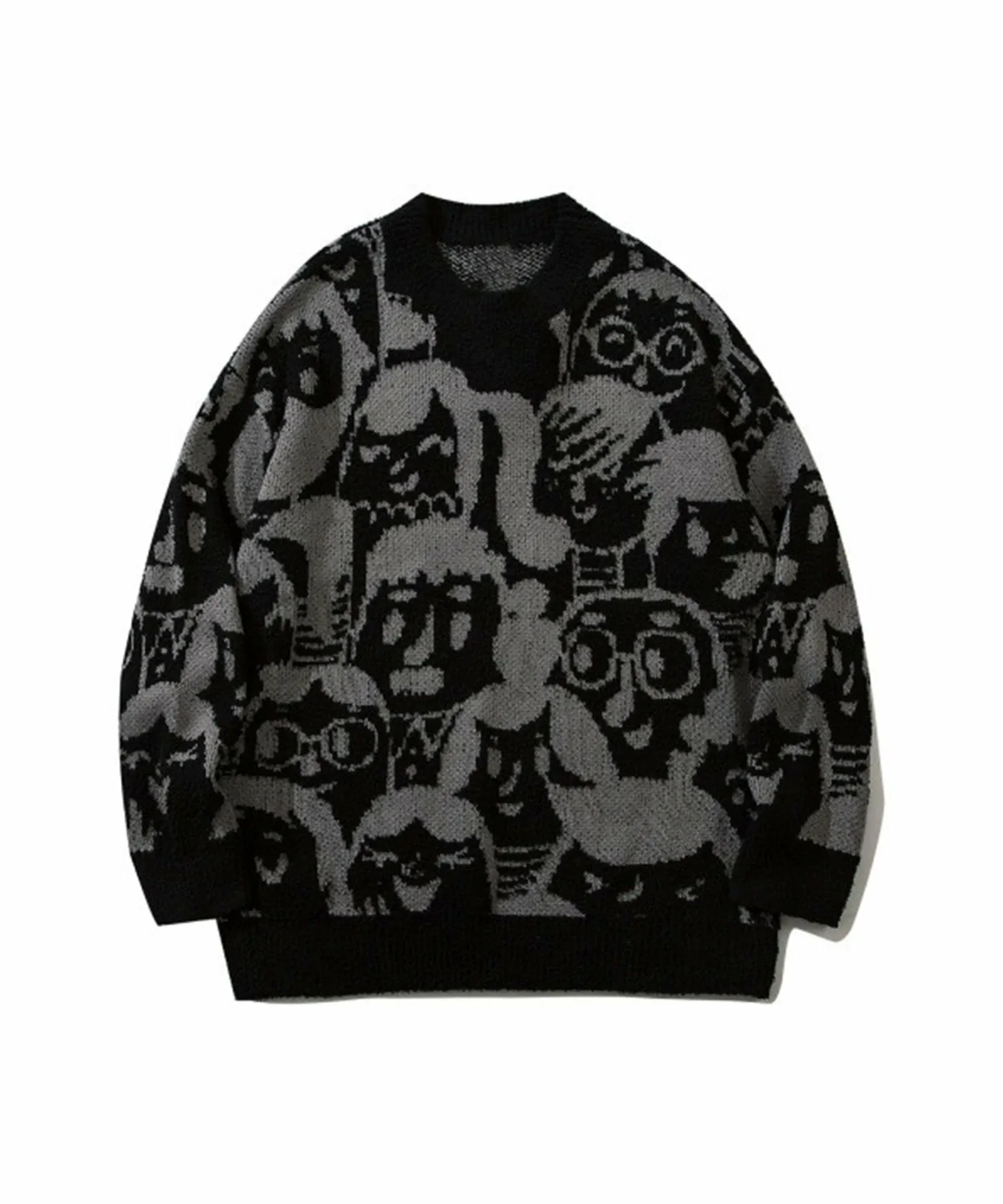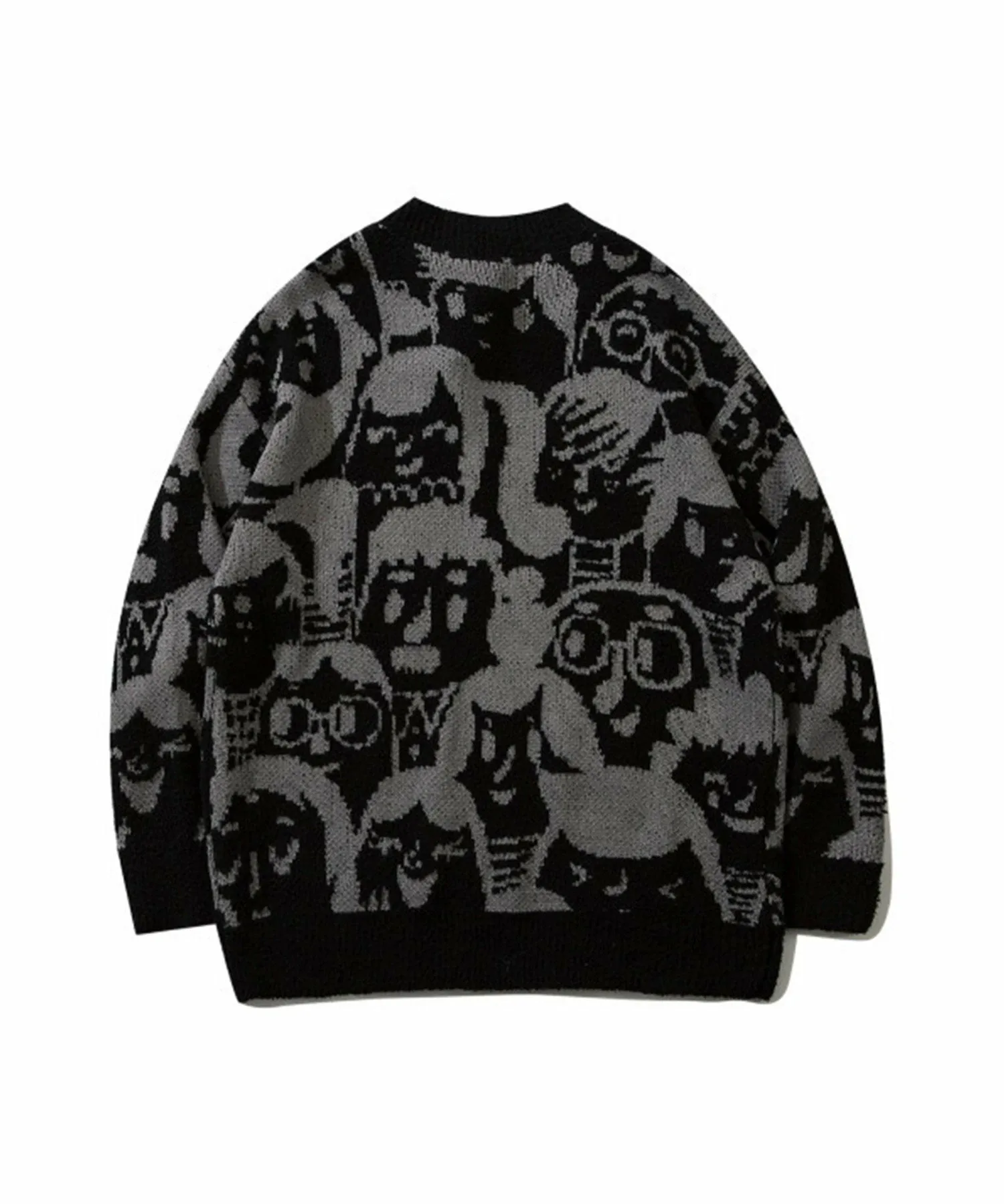 Этот вязаный пуловер украшен уникальным принтом в стиле мультфильмов. Широкий крой и рукава создают округлый силуэт, а свободный силуэт обеспечивает комфорт и удобство ношения в качестве нижнего слоя. Умеренная толщина и гладкая, удобная посадка делают его идеальным для осени, зимы и ранней весны. Он унисекс, что делает его отличным подарком или прекрасной верхней одеждой. Идеально сочетается с модной верхней одеждой этого сезона, включая пуховые куртки, куртки-бомберы и флисовые куртки. Носите его с узкими джинсами, полосатыми брюками и кроссовками для создания модного спортивно-уличного образа. Клетка, широкие брюки и кожаные туфли также популярны для стильного и аккуратного образа. Носите его с джинсами или чиносами для повседневного образа или со спортивными штанами для расслабленного образа. Он идеально сочетается с аксессуарами, такими как сумки-мешки, сумки через плечо, сумки-тоут и кепки.