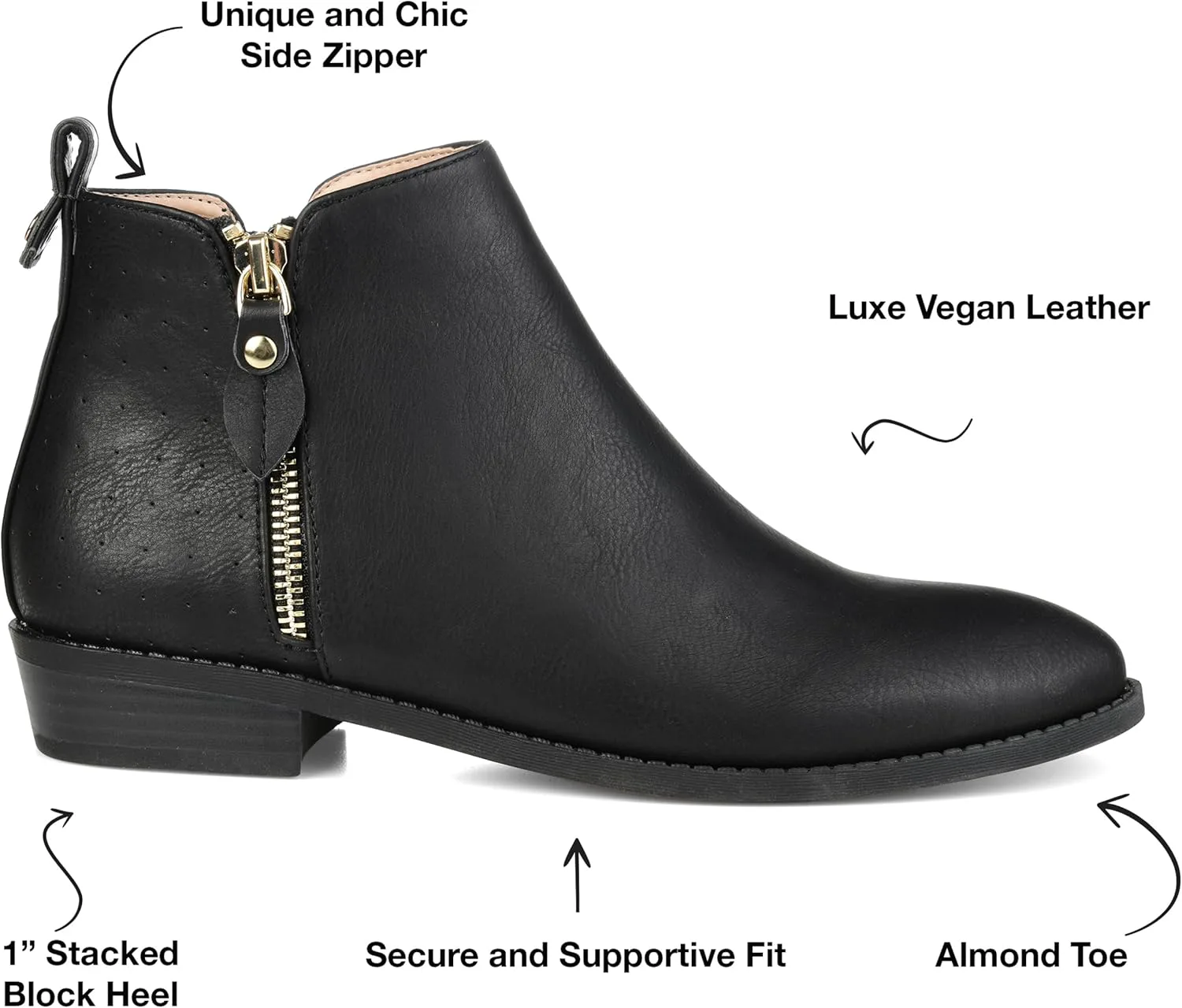 Ellis от Journee - это самое милое пополнение вашей коллекции ботильонов. Эта модель имеет внутреннюю молнию и декоративную наружную молнию, состаренную окраску по всей поверхности и текстуру с небольшими отверстиями на каблуке. Форма носка миндаль и низкий устойчивый каблук завершают этот дизайн. В Journee наши ботильоны обеспечат вам комфортный и стильный образ, идеально подходящий как для офиса, так и для веселого вечера с подругами.