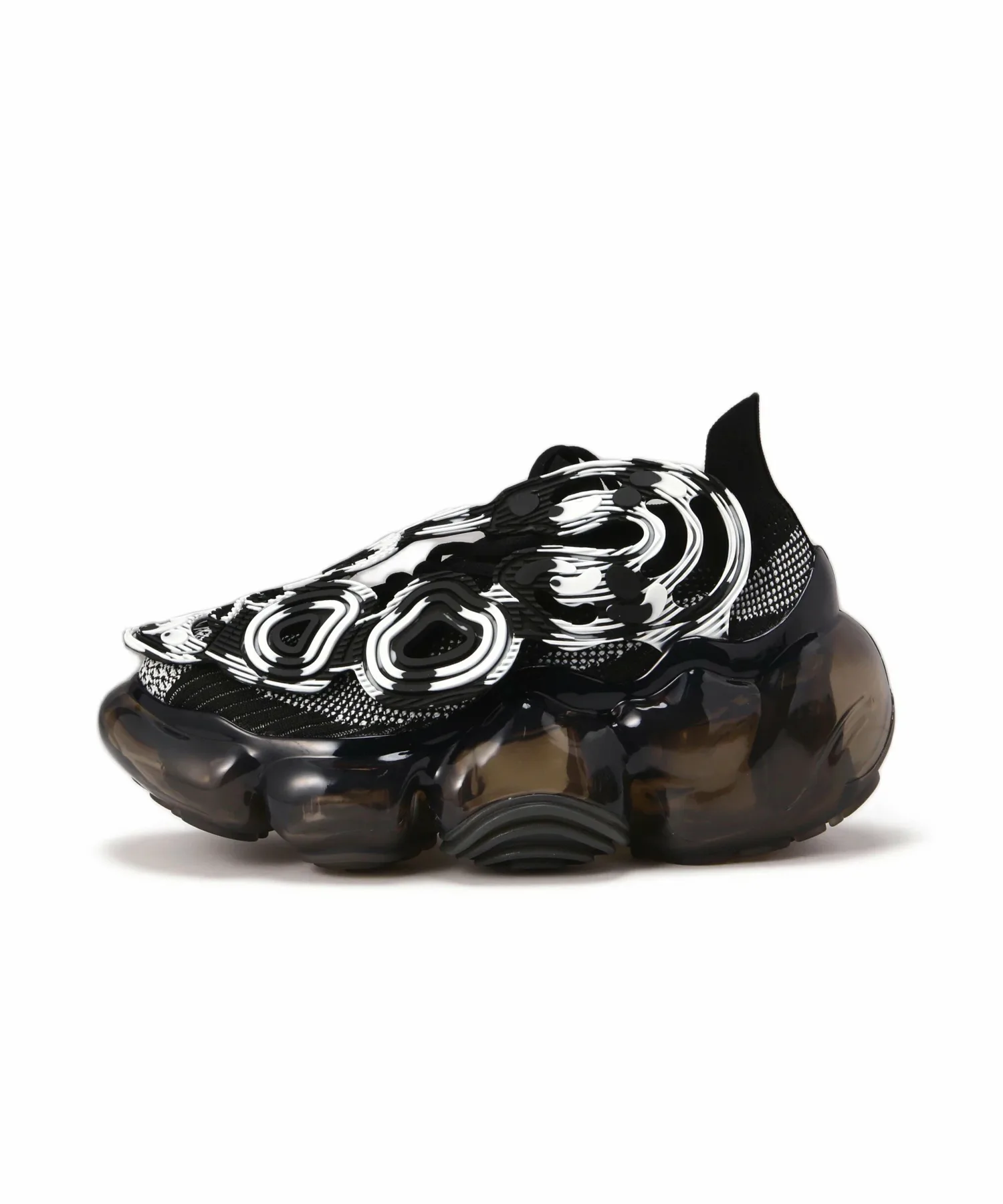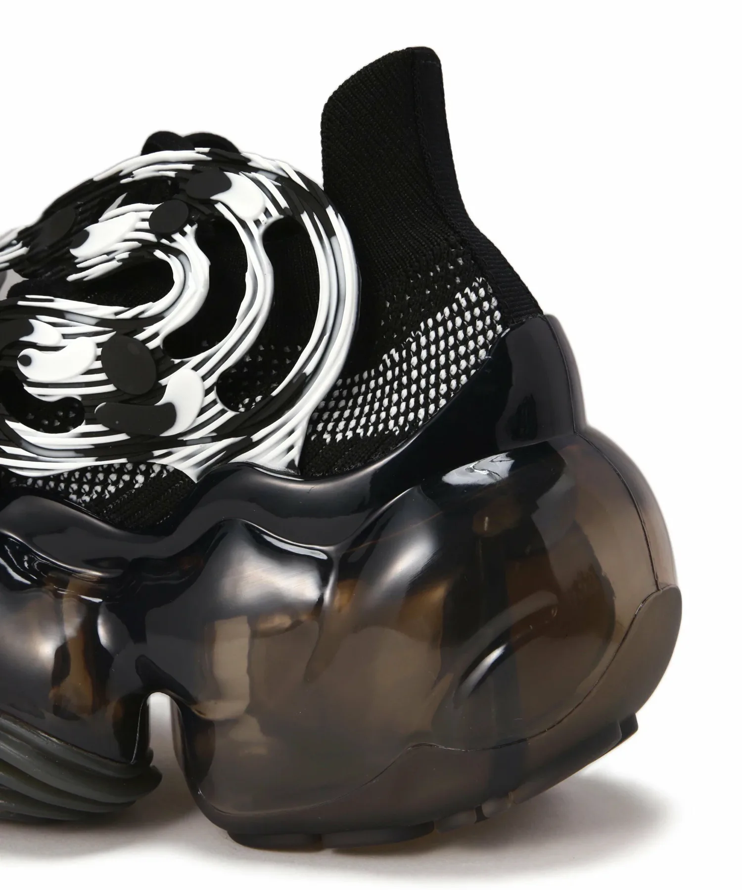 К верху прикреплена деталь из ПВХ в форме характерного отпечатка лапы MOOPIE, размывающая границу между верхом и подошвой обуви и создавая необычный вид.