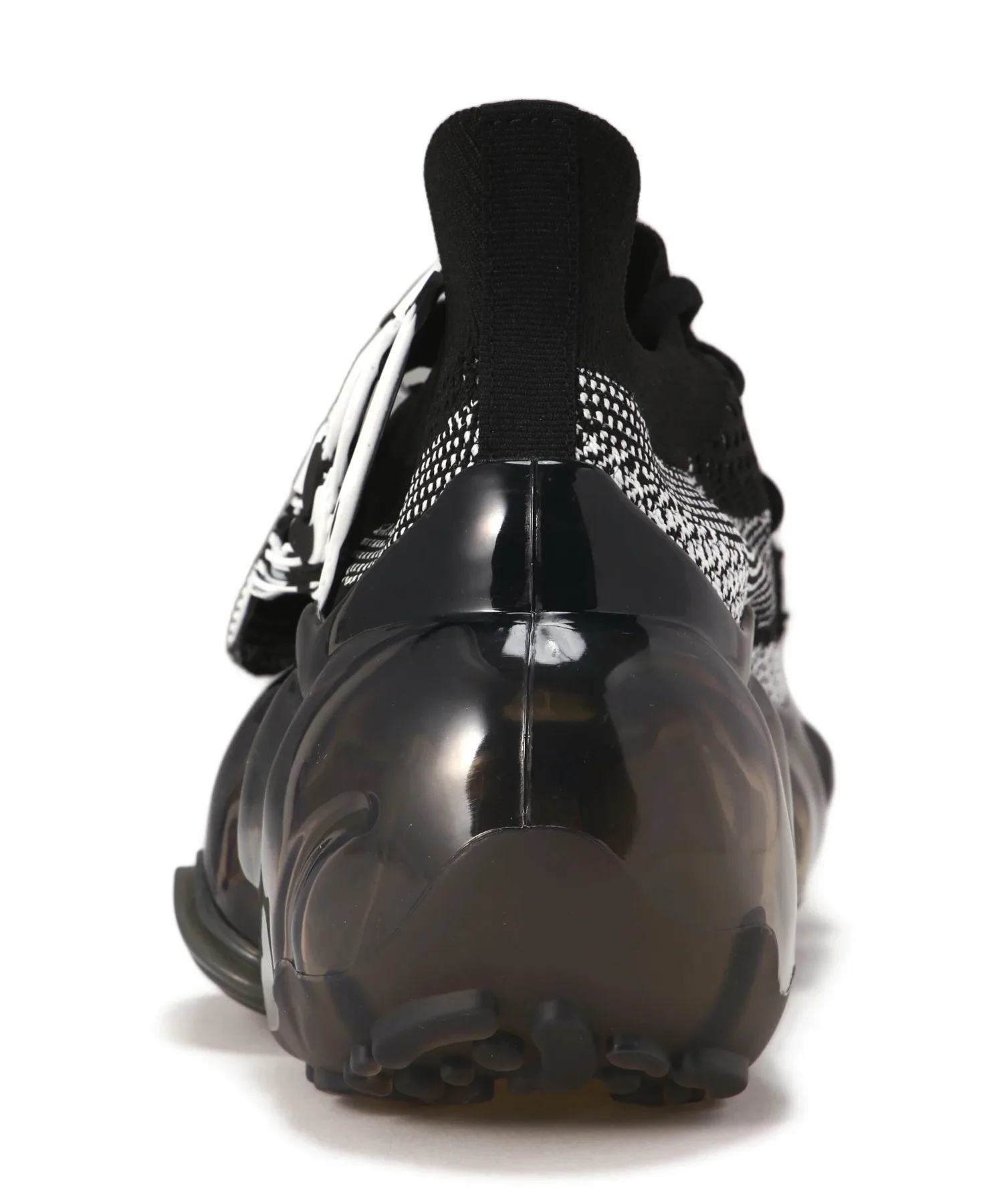 Асимметричные люверсы и узор на вязаном верхе также повторяют абстрактный дизайн подошвы.