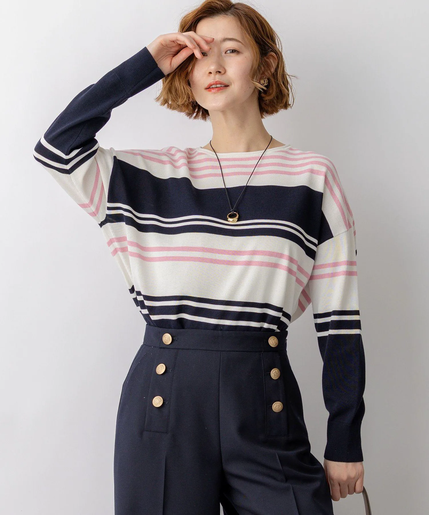 Этот свободный пуловер с вырезом-лодочкой связан из трикотажа. Хлопково-полиэстерная ткань имеет оптимальную плотность, создавая красивый прямой силуэт, который не подчеркивает линии тела. Длина туники полностью закрывает ягодицы, поэтому ее можно уверенно носить с облегающими брюками. Боковые швы слегка сдвинуты вперед, а подол имеет разрез, создавая ощущение легкости. Отложной воротник также является ненавязчивым акцентом. Материал хорошо держит форму, а дизайн позволяет легко надеть пуловер, и он выглядит стильно, что делает его идеальным вариантом для повседневной носки. Доступен в шести цветах: розовый (#012) для идеального акцента, бежевый (#033) для мягкости, желтый (#040) для ощущения комфорта, черный и бежевый (#105) для светлой цветовой гаммы, бежевый и желтый (#133) для сдержанного впечатления с бледными тонами, а также темно-синий и розовый (#175) для привлекательного яркого розового.