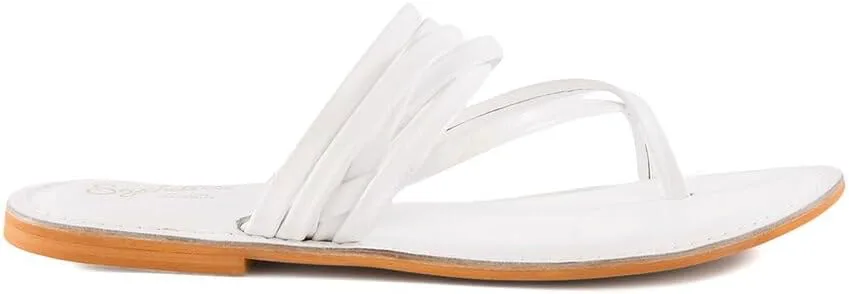 О бренде: Женственные детали с силуэтами в стиле ретро. Сандалии Reezie из белой кожи с петлей для пальца и верхом в виде ремешков, стиль с засовываемой подножкой, умеренно мягкая стелька, подошва из искусственных материалов, каблук 0,25 дюйма. Пожалуйста, обратите внимание: все размеры являются приблизительными и были измерены для размера US (W) 6; возможны небольшие отклонения. Импортировано.