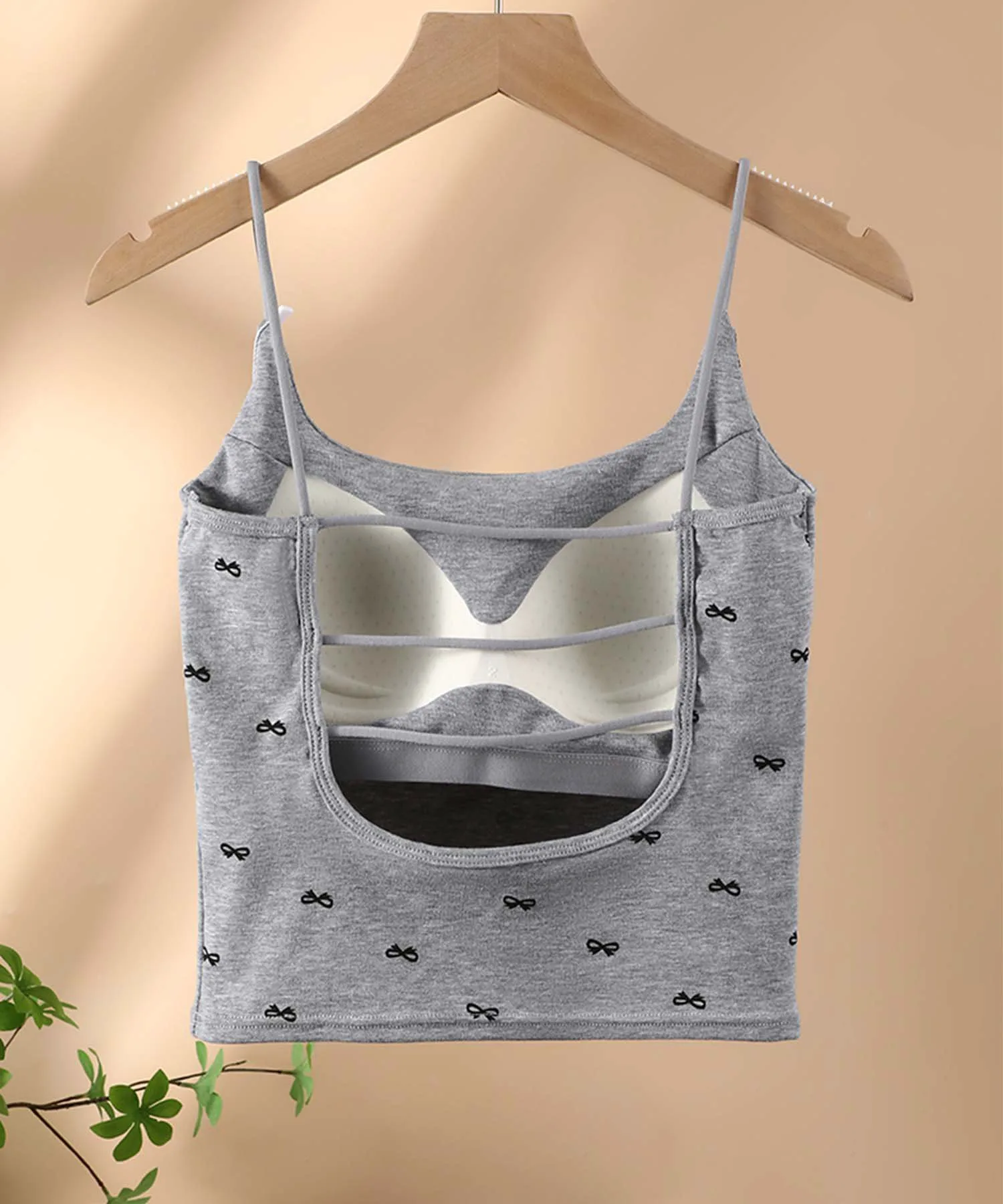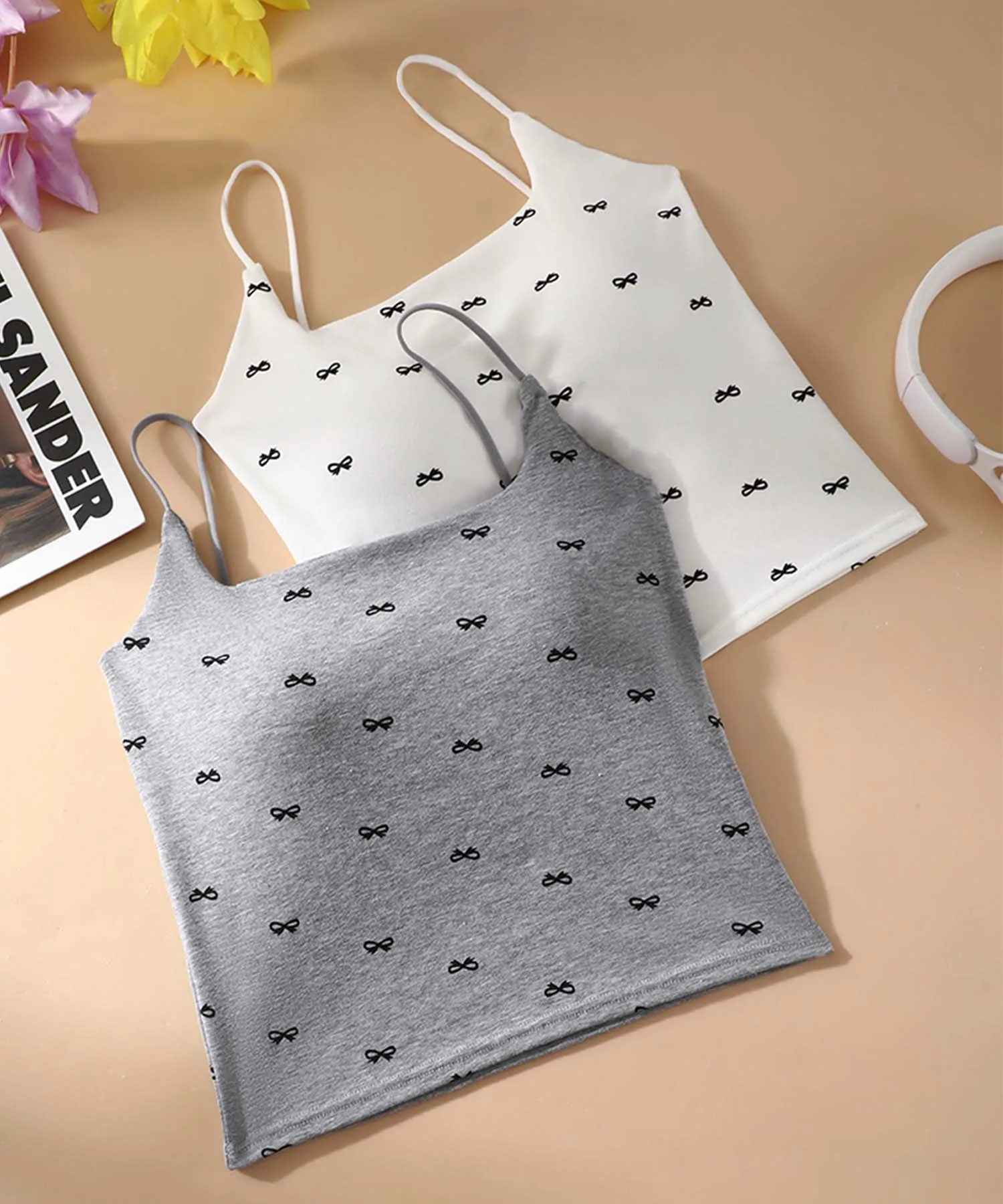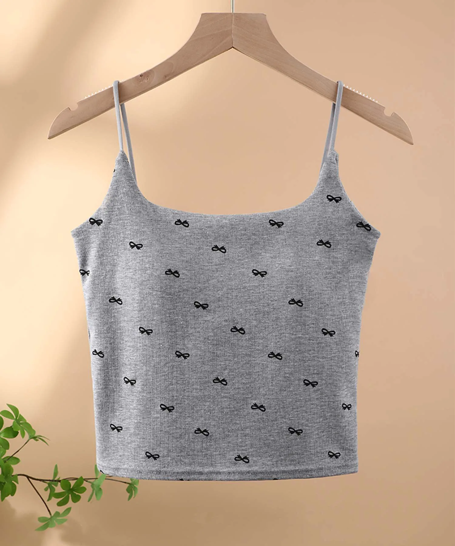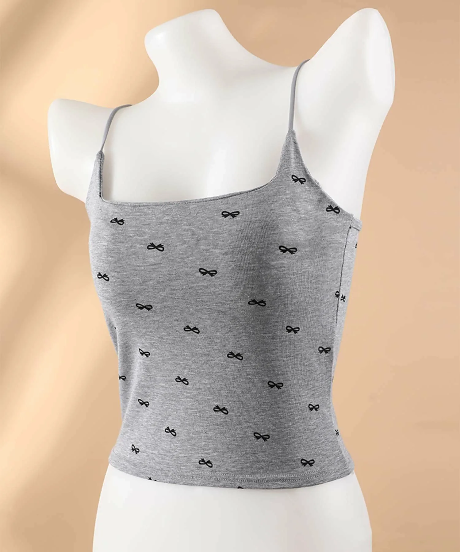 Эта милая майка украшена ленточным узором. Бретели регулируются, что позволяет подогнать ее по фигуре. В области груди есть чашечки, поэтому ее можно носить и отдельно.