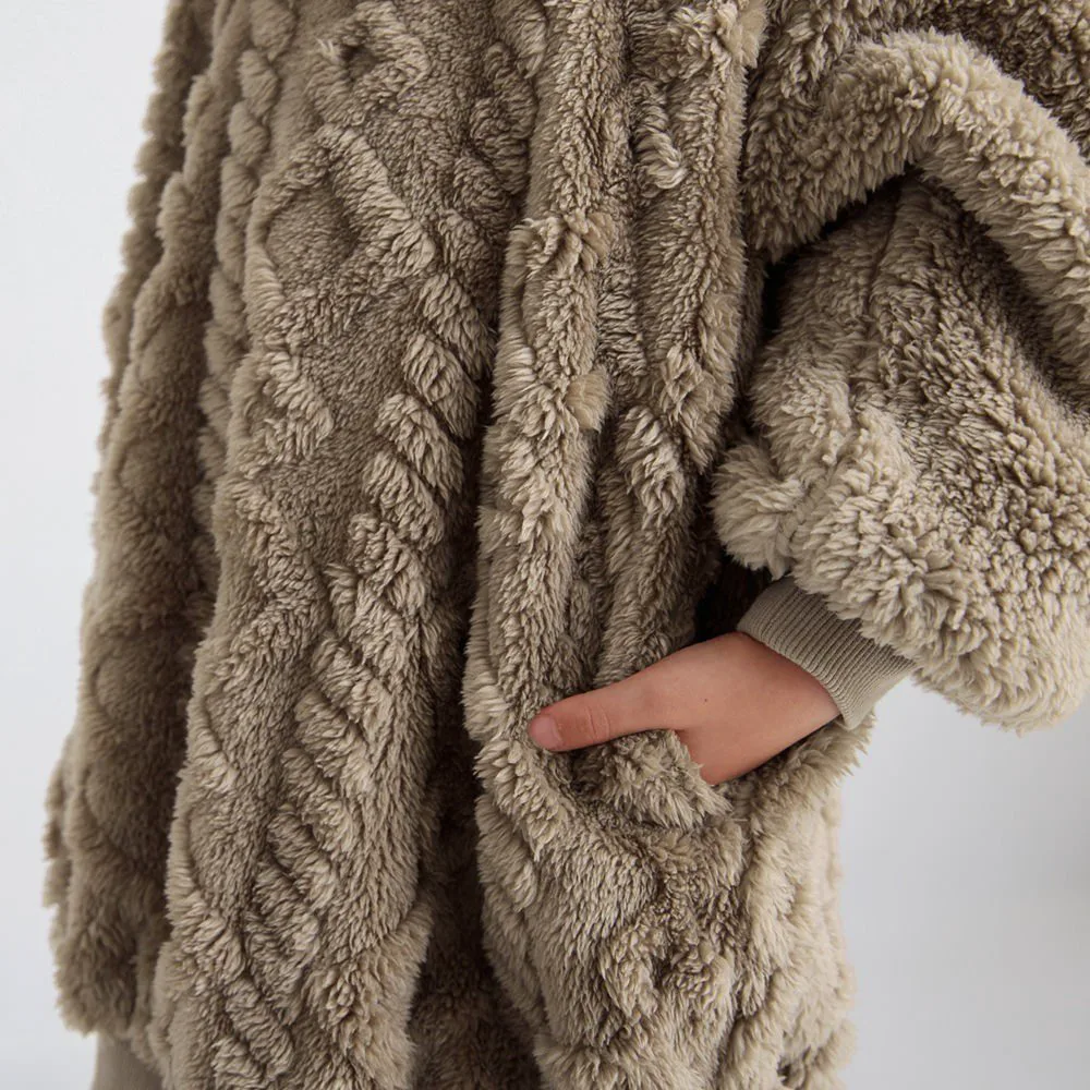 Теплый, пушистый и легкий материал делает это платье удобным и идеально подходящим для холодного времени года.
