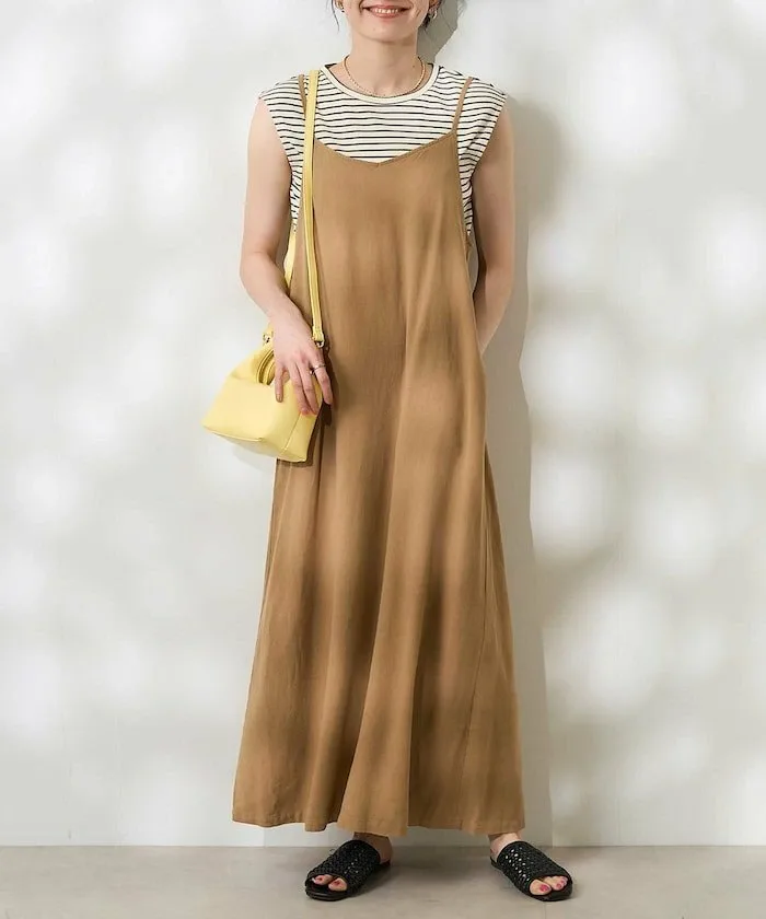 Платье-комбинацию можно сочетать с футболкой или майкой для более современного, здорового образа.