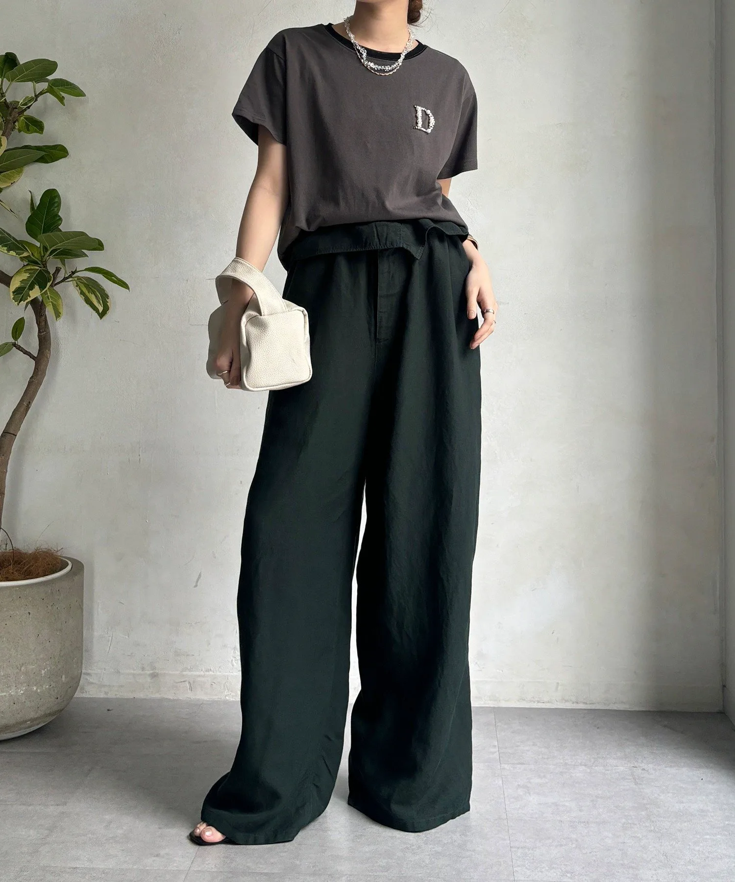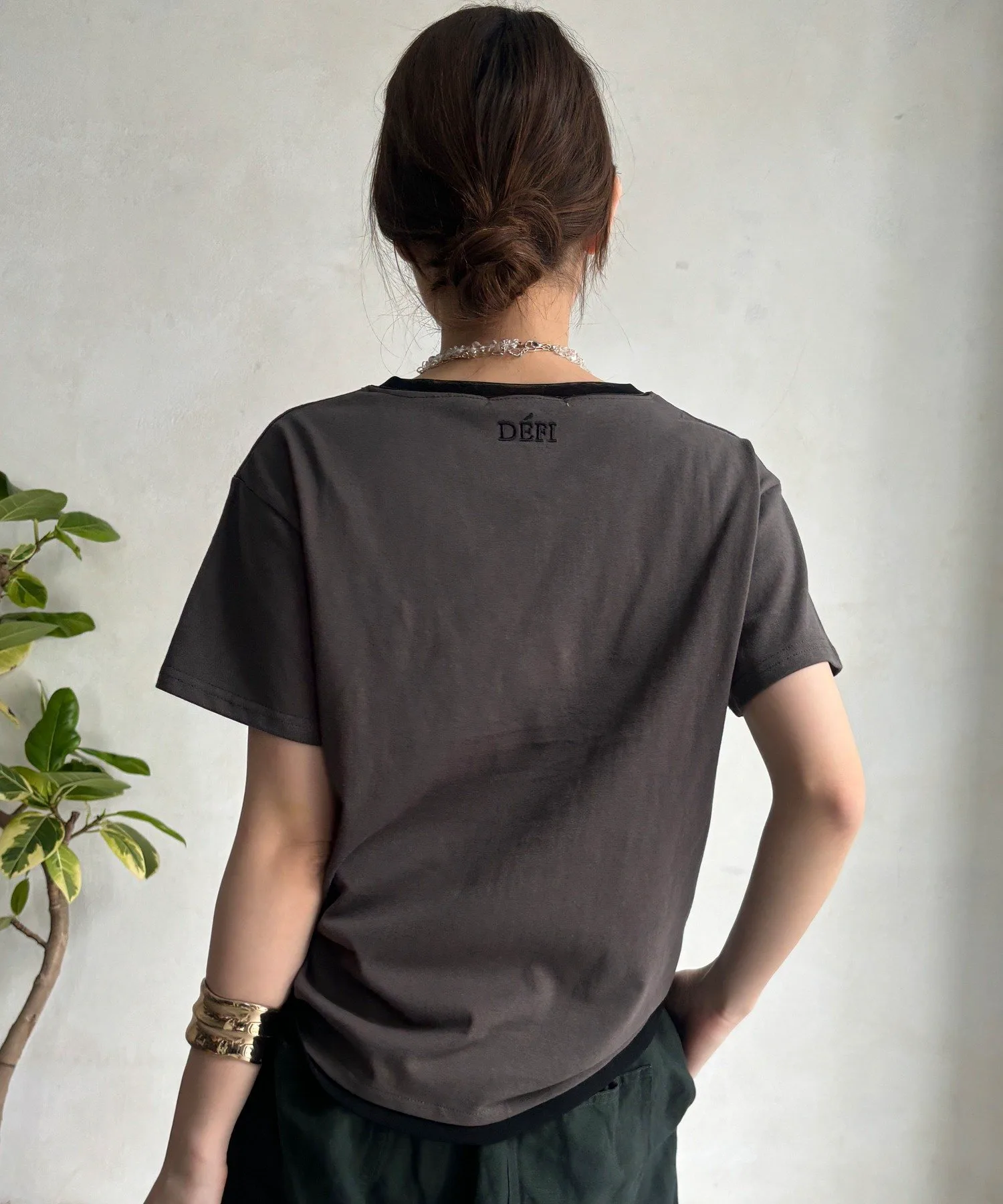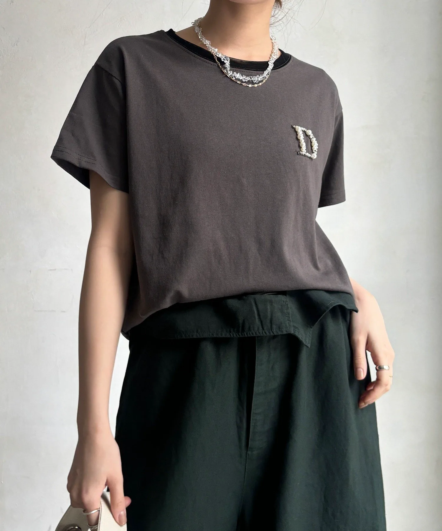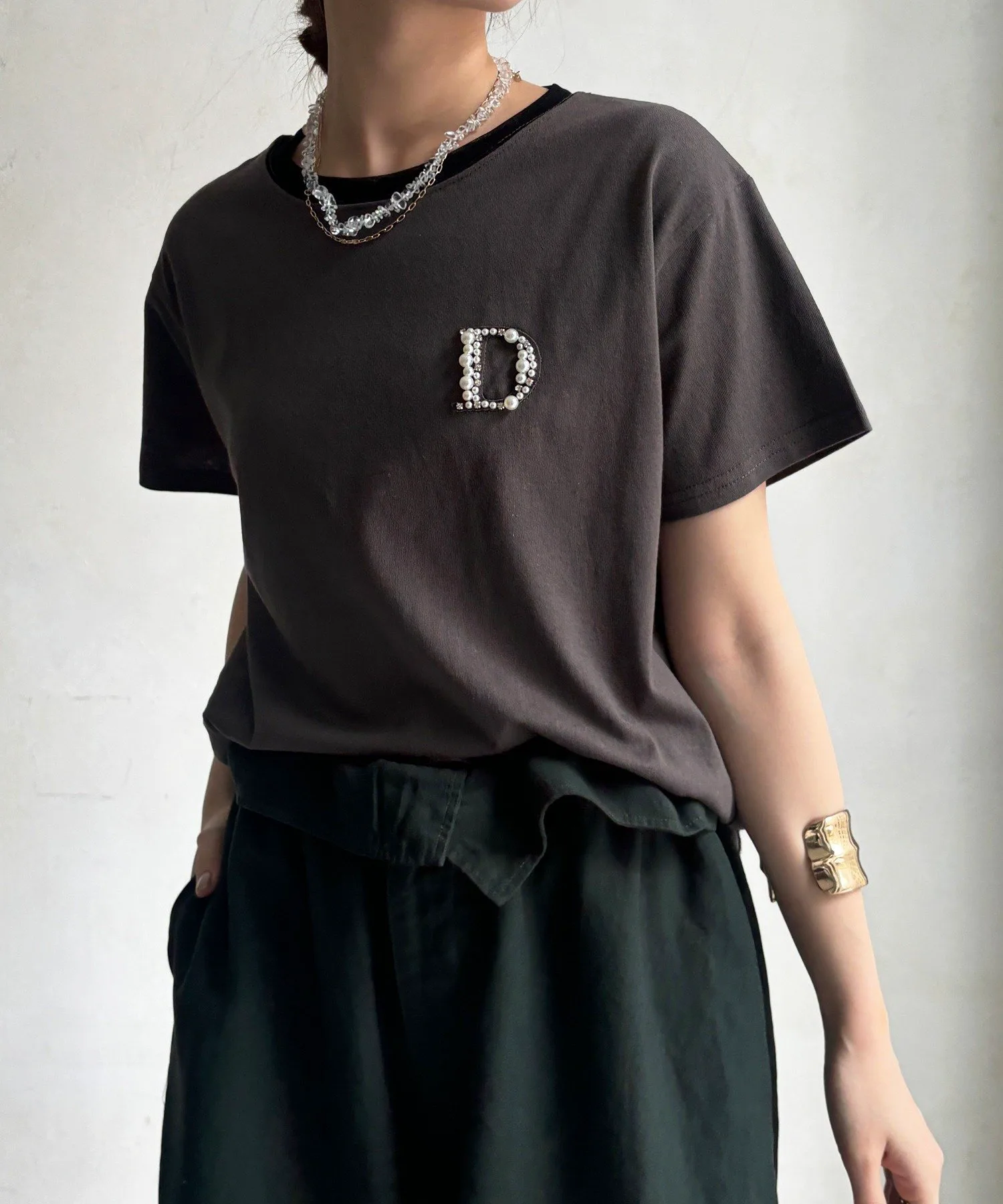 Хотя на первый взгляд это кажется простой футболкой с круглым вырезом, инкрустация в виде буквы «D» на левой стороне груди добавляет элегантности и выразительности.