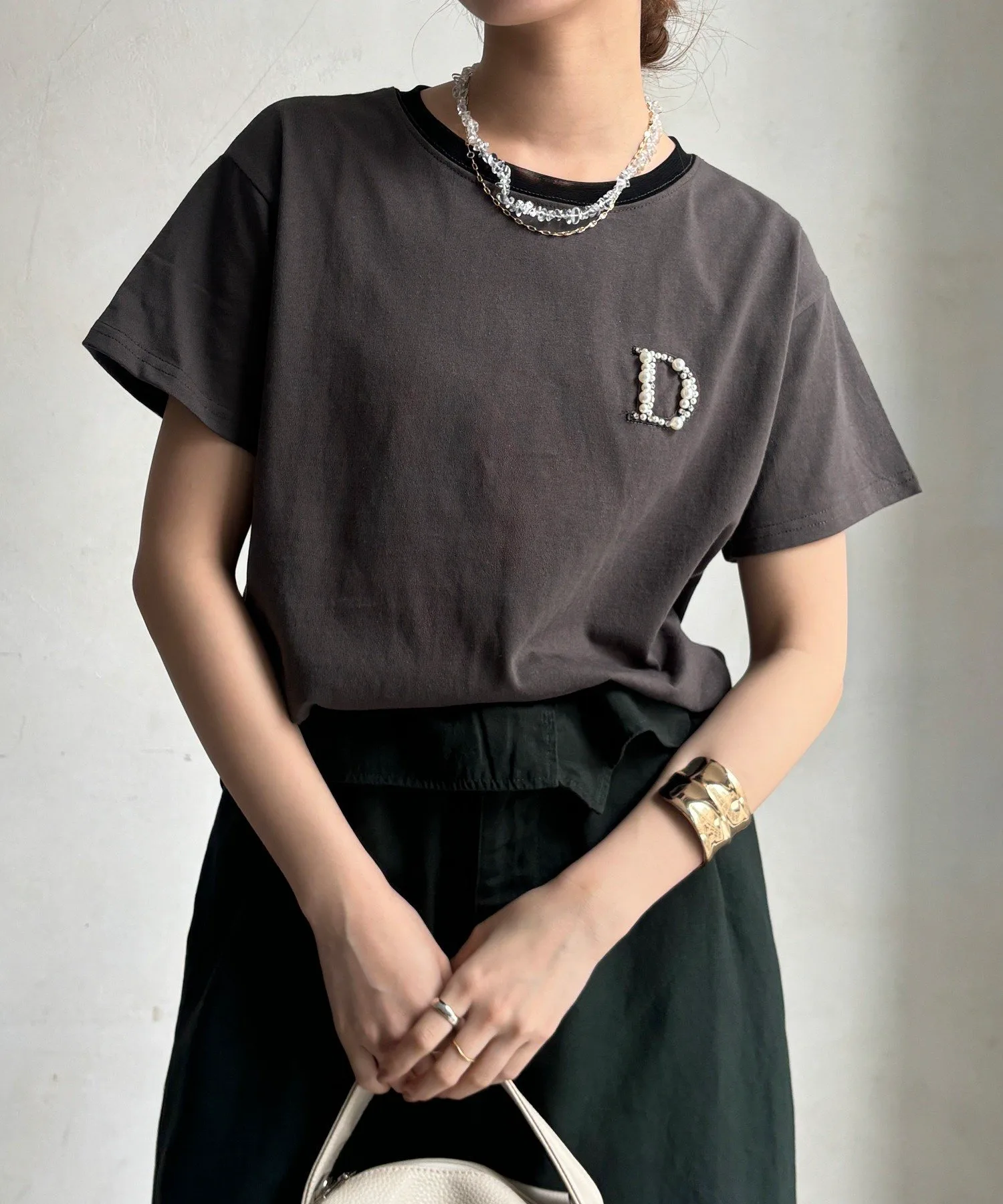 Новая вещь для повседневной взрослой одежды! Футболка с инкрустацией в виде буквы D