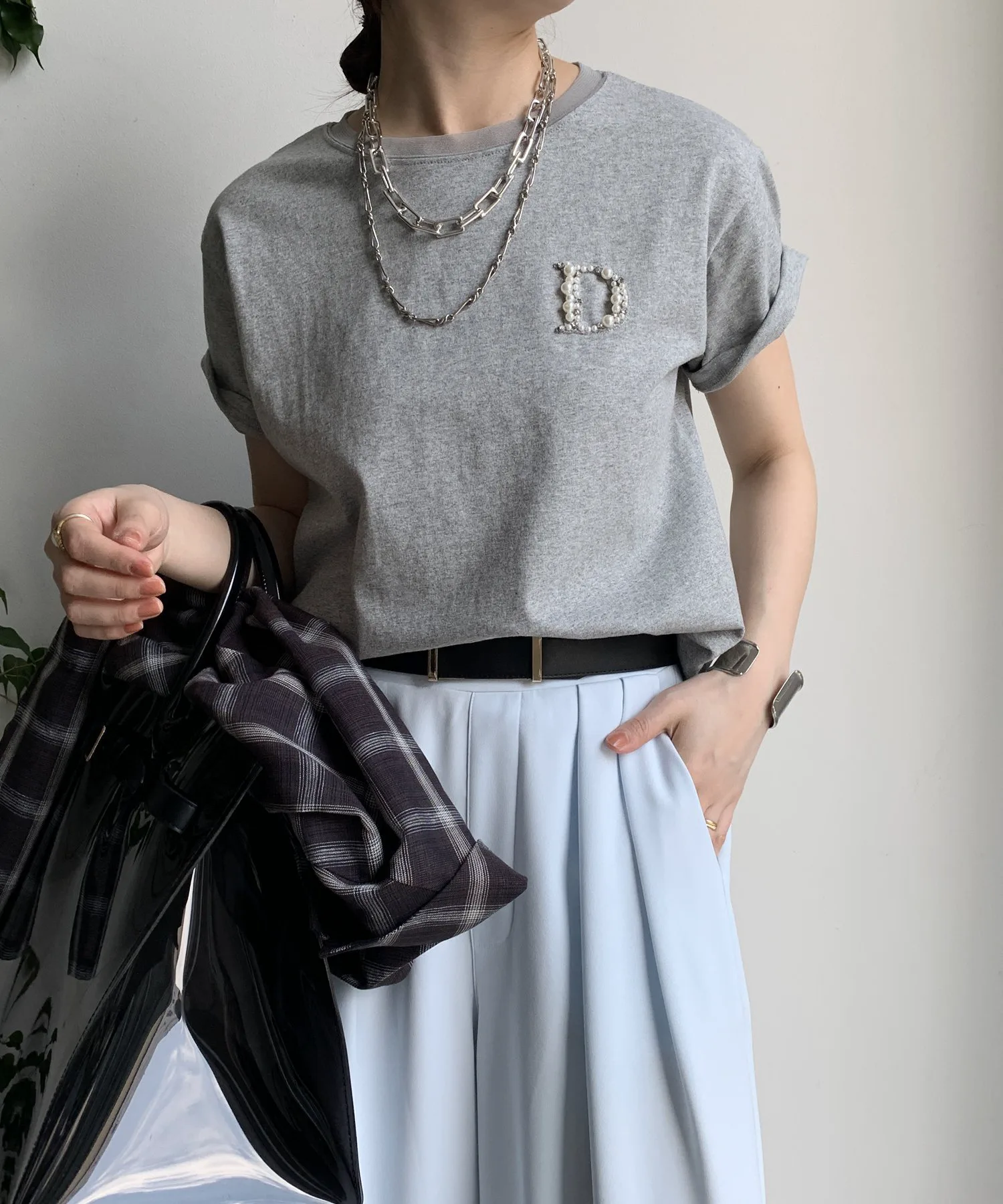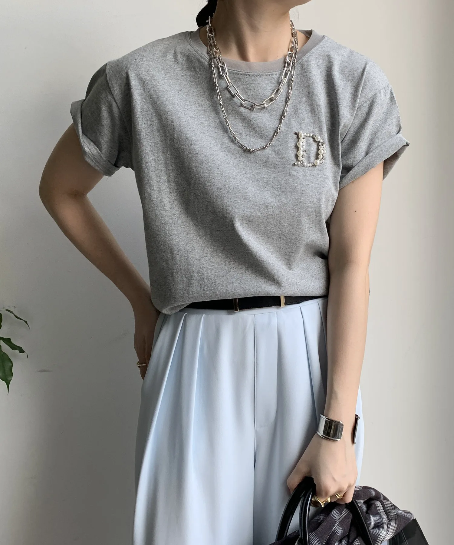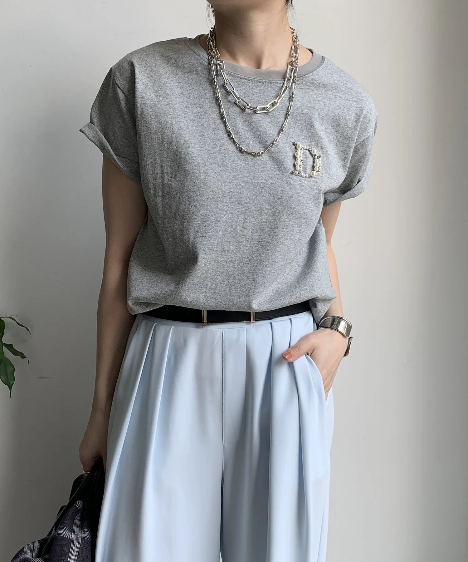 Хотя на первый взгляд это кажется простой футболкой с круглым вырезом, инкрустация в виде буквы «D» на левой стороне груди добавляет элегантности и выразительности.