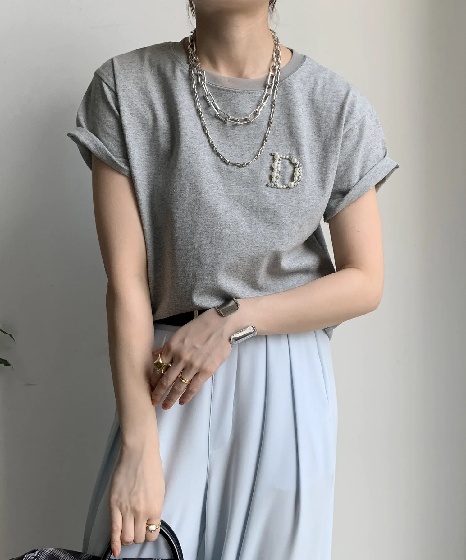 Новая вещь для повседневной взрослой одежды! Футболка с инкрустацией в виде буквы D