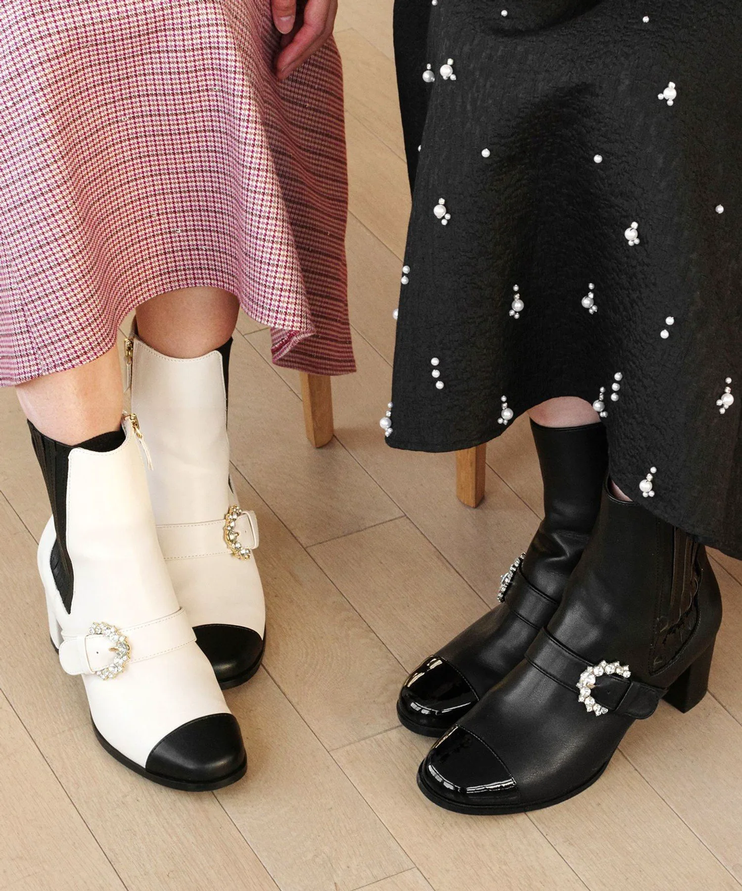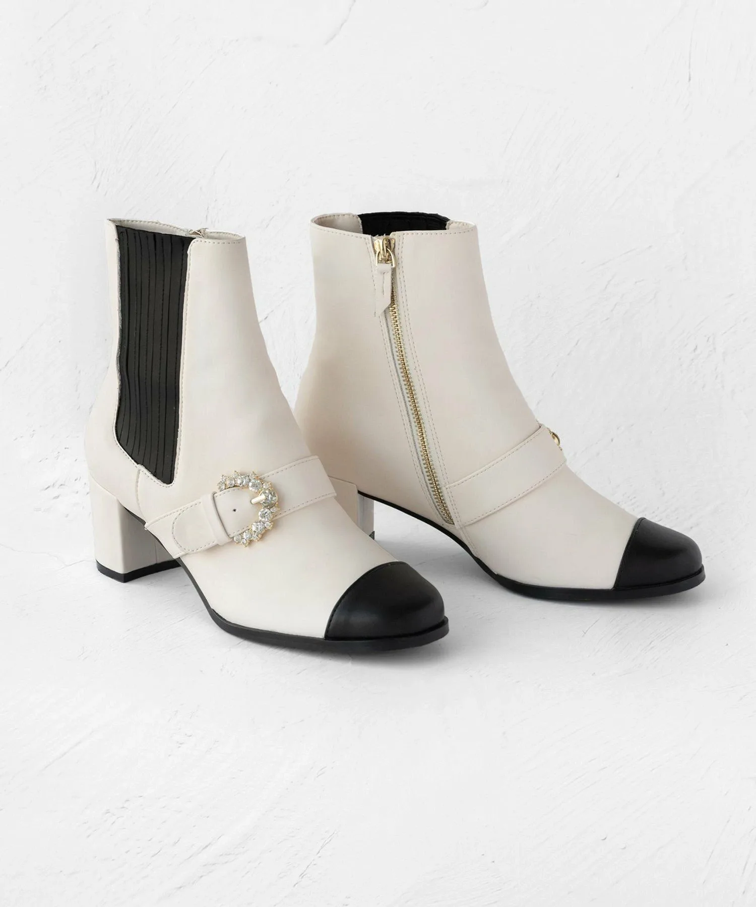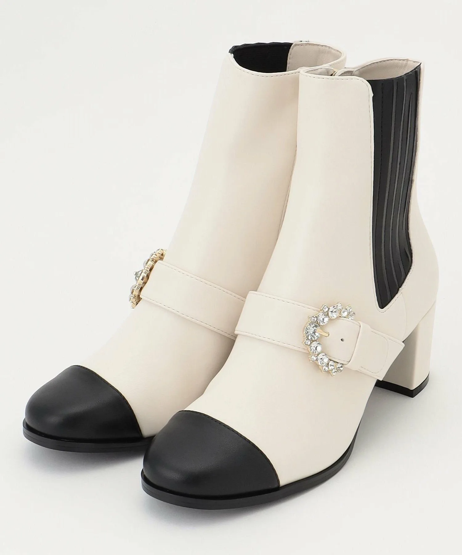 Ботинки с эластичными вставками и пряжкой, украшенной драгоценными камнями, для стильного акцента.