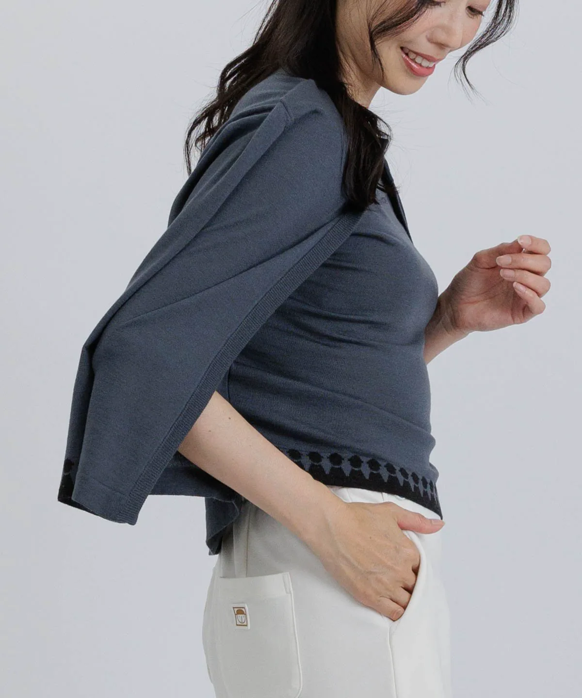 ・Дизайн, напоминающий сочетание топа без рукавов и кардигана (они соединены в области плеч)