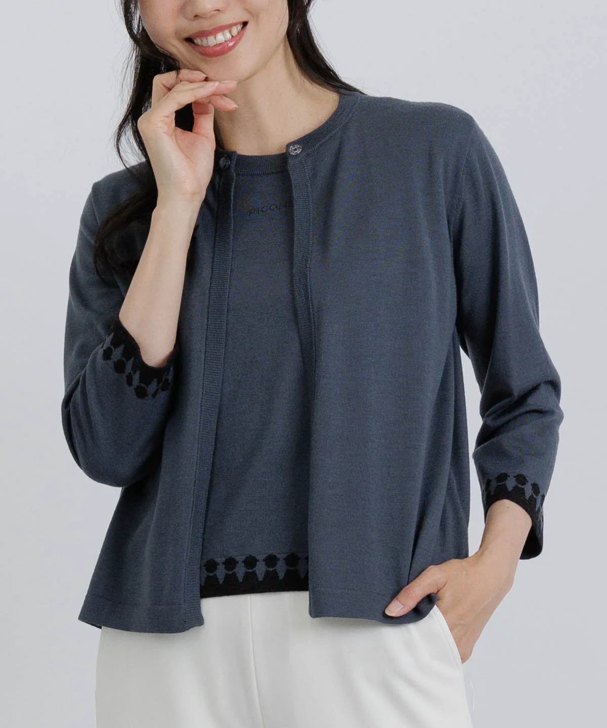 ・Силуэт с фестончатым краем по низу и манжетам также является изюминкой