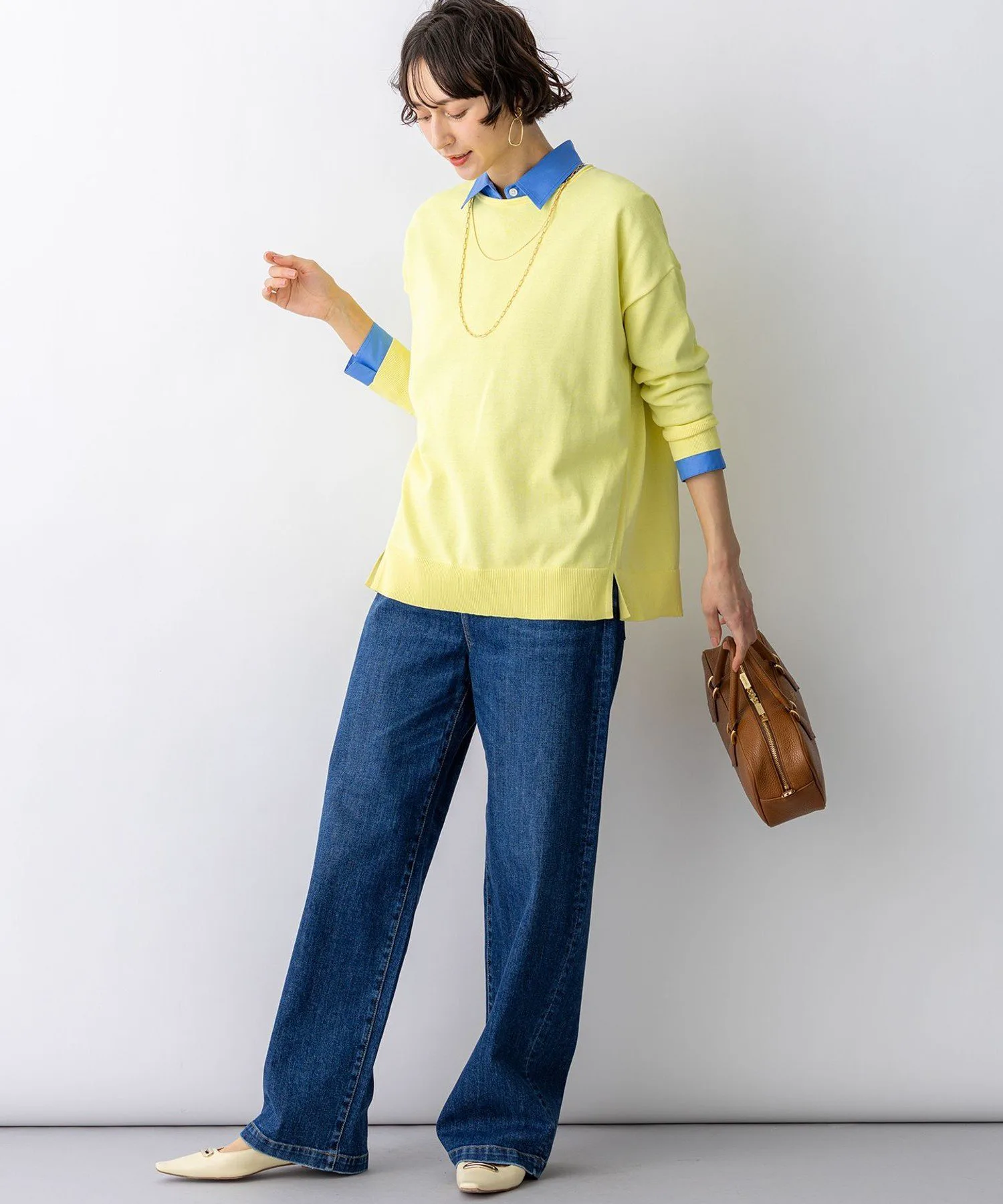 Этот свободный пуловер с вырезом-лодочкой связан из трикотажа. Хлопково-полиэстерная ткань имеет оптимальную плотность, создавая красивый прямой силуэт, который не подчеркивает линии тела. Длина туники полностью закрывает ягодицы, поэтому ее можно уверенно носить с облегающими брюками. Боковые швы слегка сдвинуты вперед, а подол имеет разрез, создавая ощущение легкости. Отложной воротник также является ненавязчивым акцентом. Материал хорошо держит форму, а дизайн позволяет легко надеть пуловер, и он выглядит стильно, что делает его идеальным вариантом для повседневной носки. Доступен в шести цветах: розовый (#012) для идеального акцента, бежевый (#033) для мягкости, желтый (#040) для ощущения комфорта, черный и бежевый (#105) для светлой цветовой гаммы, бежевый и желтый (#133) для сдержанного впечатления с бледными тонами, а также темно-синий и розовый (#175) для привлекательного яркого розового.