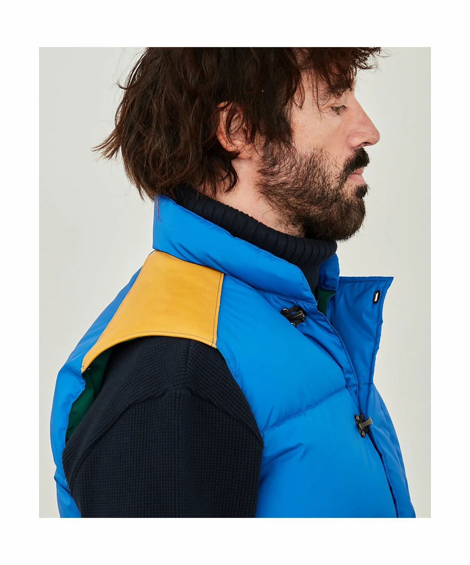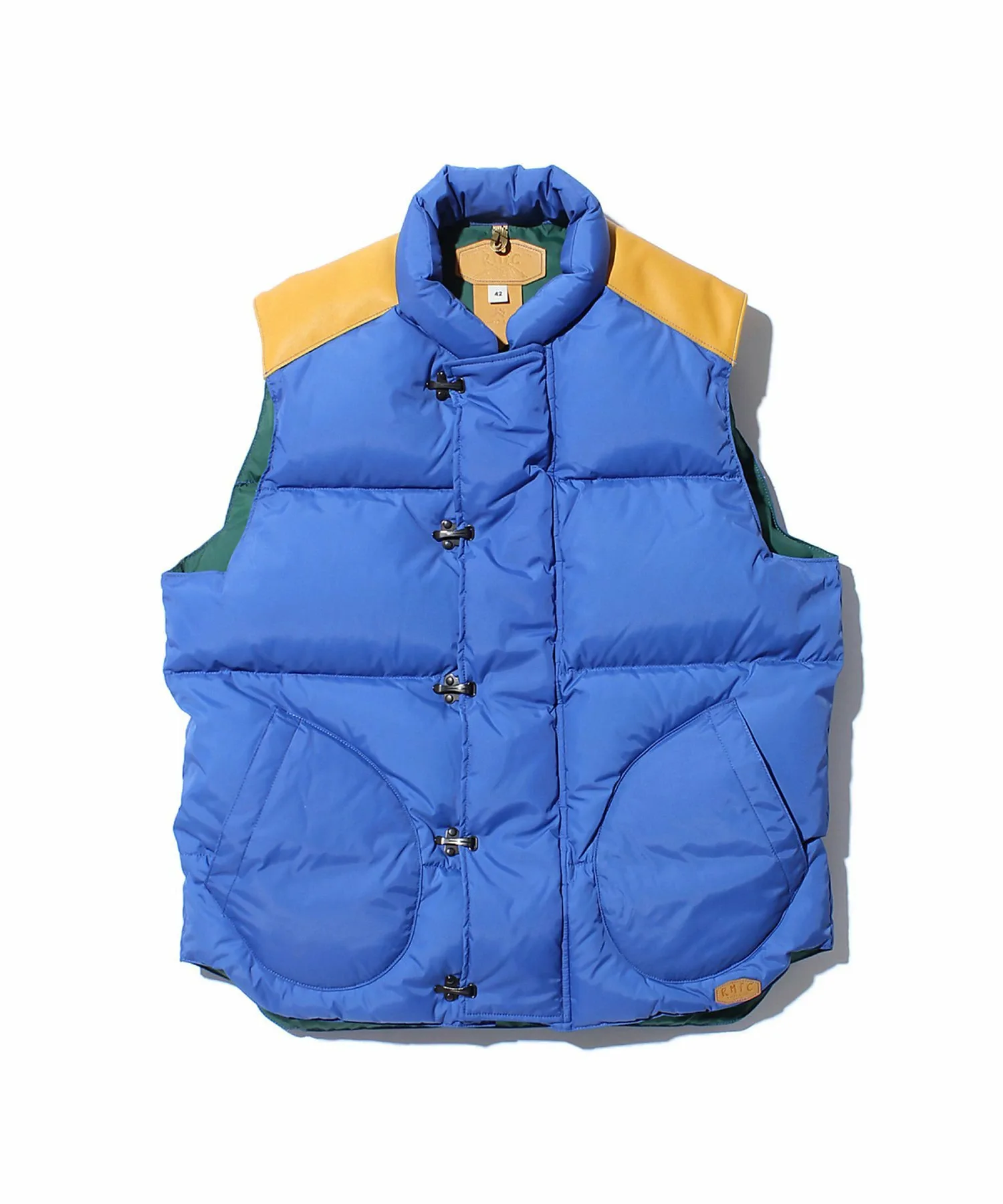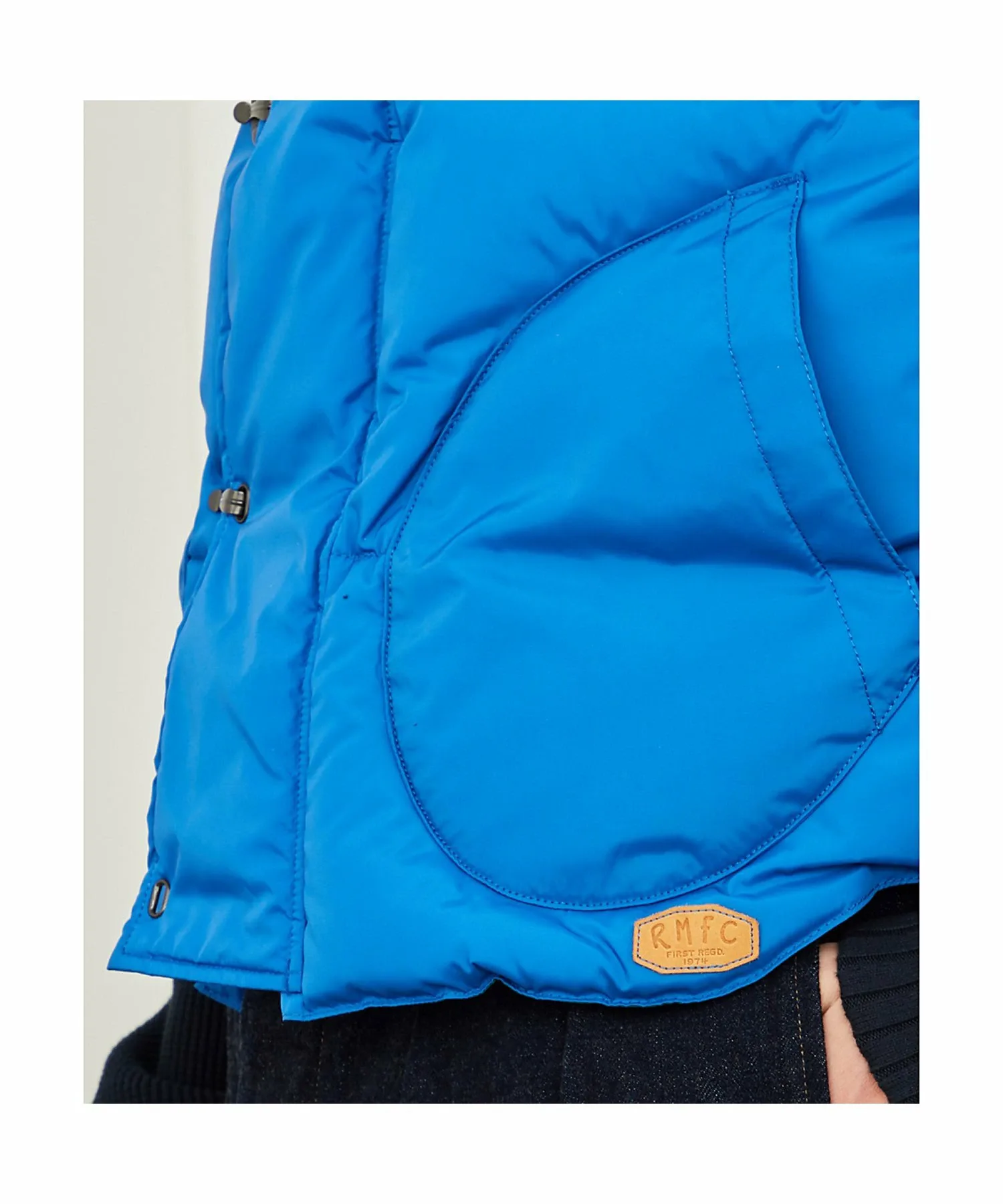 Культовый пуховый жилет Rocky Mountain Featherbed отличается характерной цельной кожаной кокеткой RMFC, окрашенной дубильными веществами и хромом, известной теперь как «застежка пожарного». Это деталь, которую изначально носили члены экипажа кораблей. Дубильные вещества сохраняют естественную текстуру кожи, а хром повышает прочность. Жилет изготовлен из оригинальной нейлоновой тафты плотностью 70 ден, воссозданной после изучения винтажной нейлоновой тафты. Это легкий трехслойный материал с превосходными теплоизоляционными свойствами. Пуховый жилет обеспечивает отличную теплоизоляцию, поскольку состоит на 90% из пуха, на 10% из перьев и имеет показатель упругости 700. Пух поставляется из Европы и обработан водоотталкивающим покрытием. Хотя пух обычно теряет свои теплоизоляционные свойства во влажном состоянии, водоотталкивающая обработка самого пуха позволяет ему сохранять свои теплоизоляционные свойства даже в ненастную погоду.