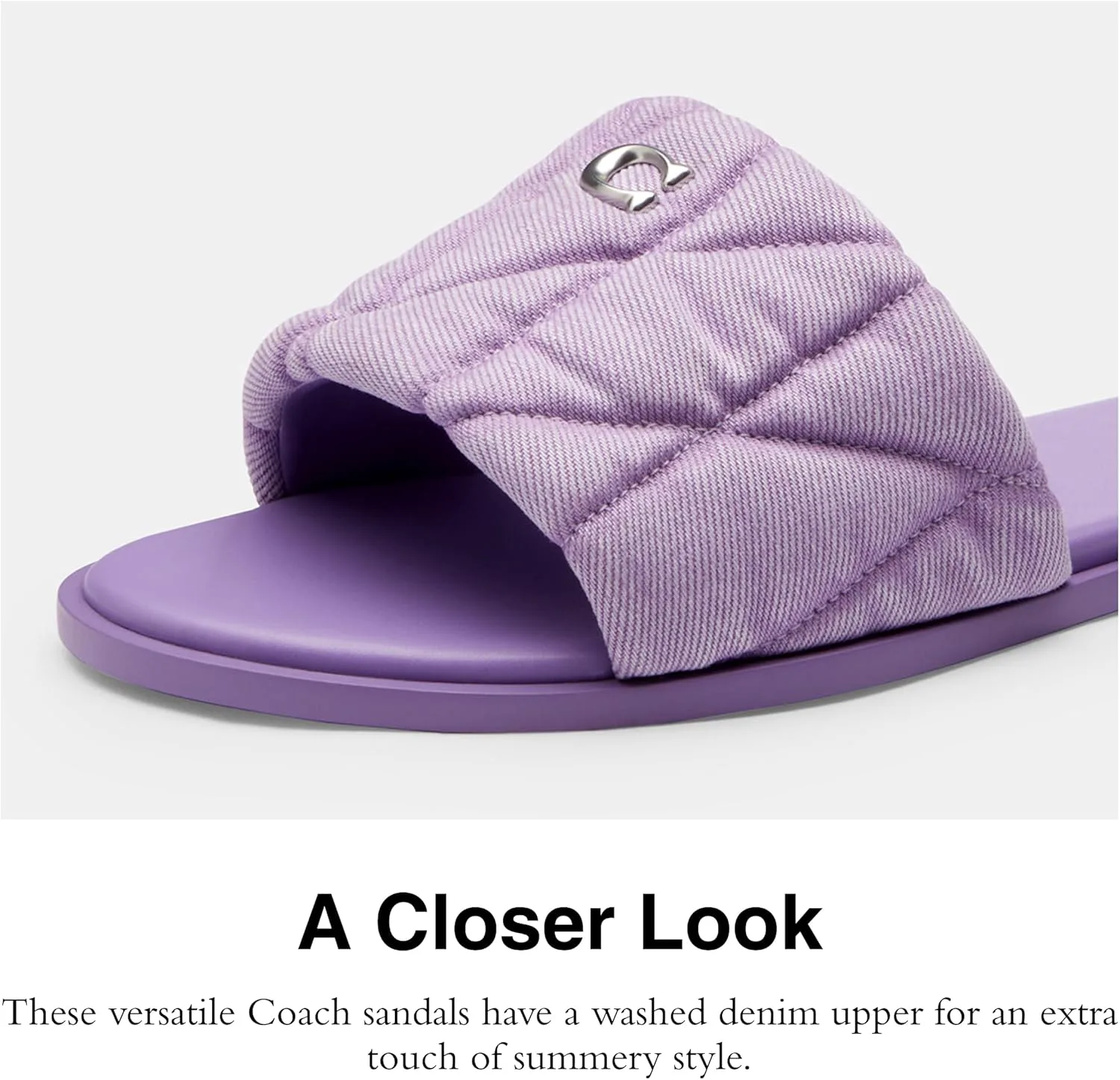 Начните свой день с этих универсальных сандалий COACH Holly Quilted Patchwork из стеганой кожи - легких, прочных и подходящих к любому наряду. Верх выполнен из кожи, подкладка и стелька - из искусственной кожи. Эти сандалии без застежек имеют открытую круглую носочную часть, низкий силуэт и логотип бренда на подъеме. Логотип бренда также на стельке. Подошва из резины.