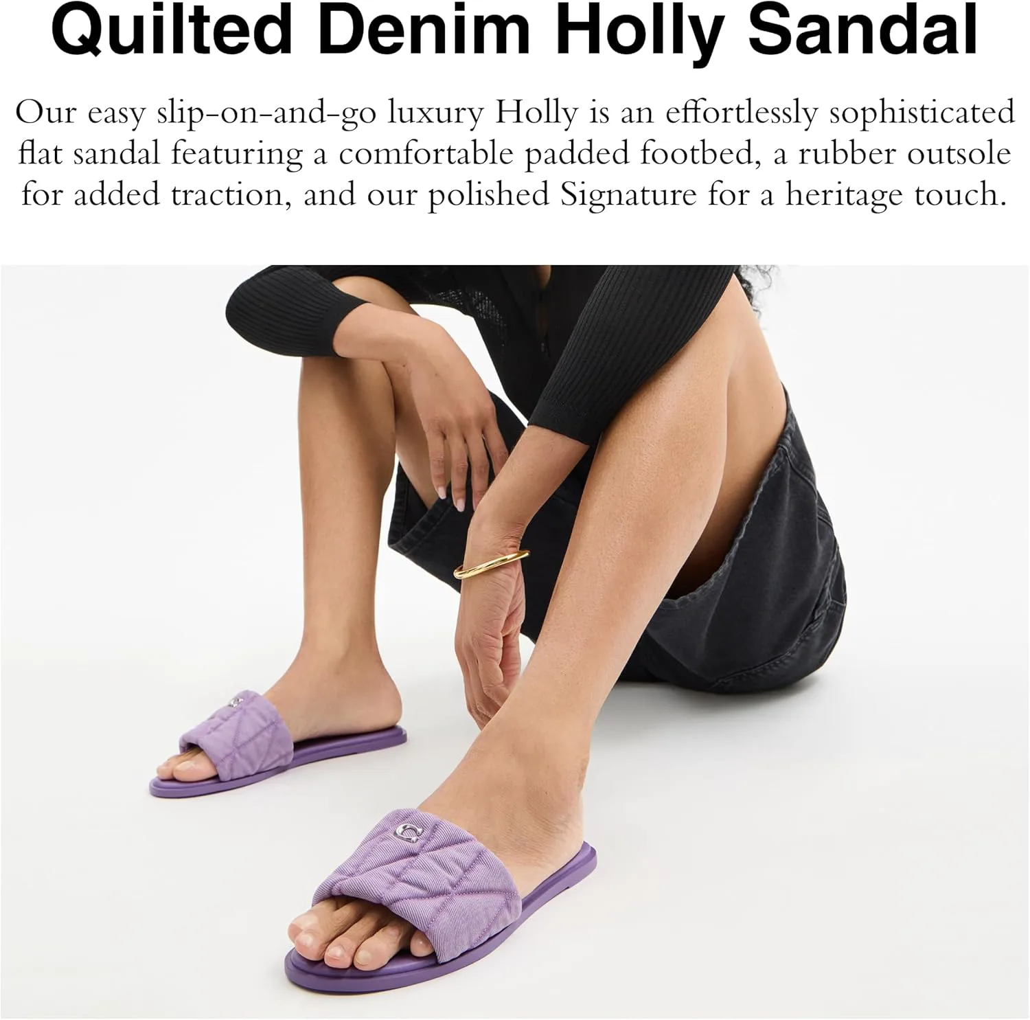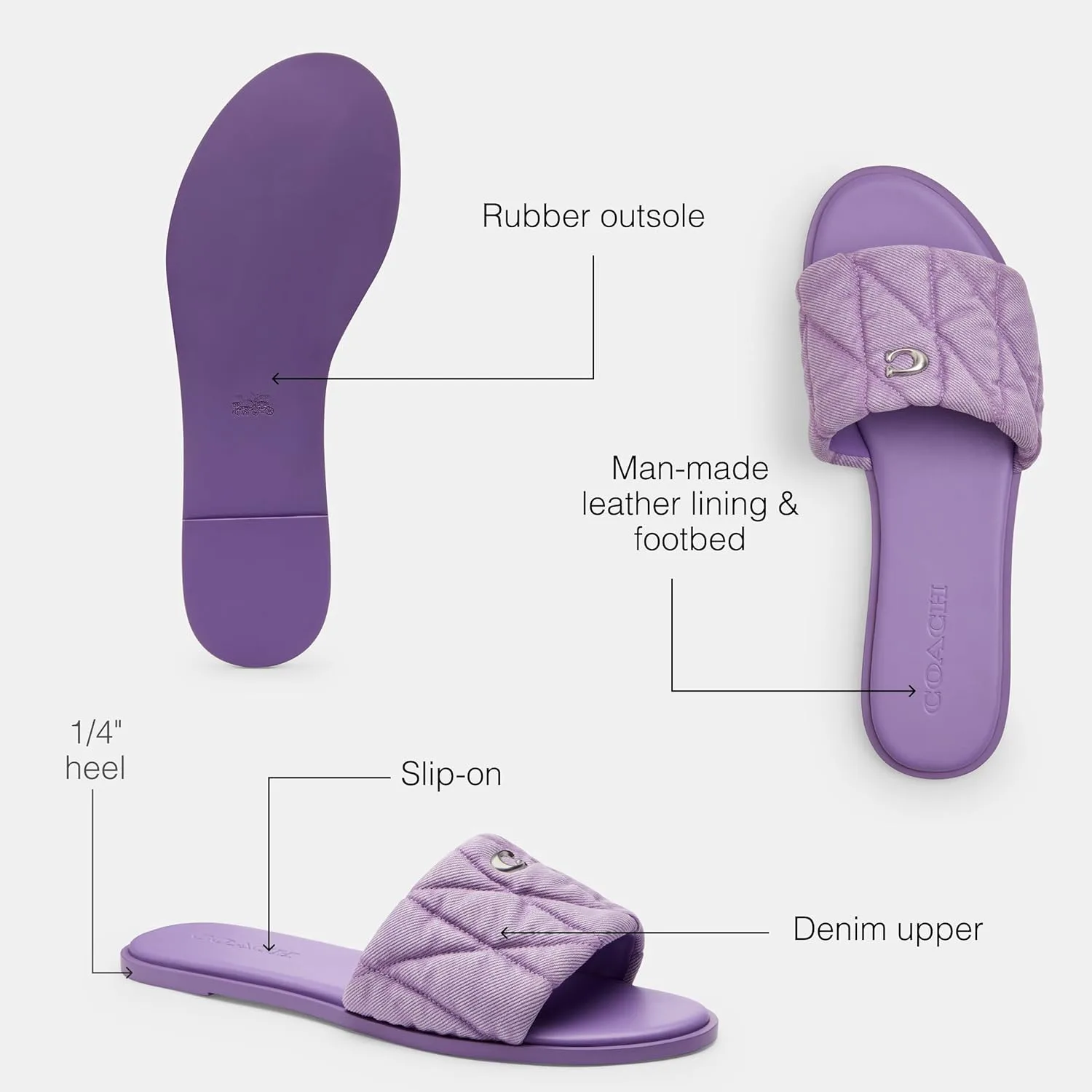 Примечания редактора: Легкая обувь, которую можно просто надеть и идти, наши кожаные сандалии Holly - это изысканная женская модель, выполненная из денима и украшенная нашей фирменной фурнитурой C Верх из денима: Эти универсальные сандалии Coach выполнены с верхом из выстираного денима для дополнительного летнего стиля Комфорт на весь день: Роскошные плоские сандалии с удобной мягкой стелькой, резиновой подошвой для лучшего сцепления и нашей отполированной фирменной деталью, добавляющей наследственный шарм Все в деталях: верх из денима, подкладка и стелька из искусственной кожи, резиновая подошва, легко надеваются, каблук 1/4" Это COACH: С момента основания в 1941 году мы смело остаемся настоящими. COACH - оригинальный американский дом кожаных изделий с наследием мастерства и сообществом, поддерживающим смелость жить по-настоящему