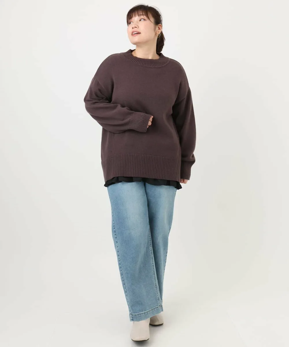 Этот трикотаж имеет приятную, мягкую текстуру и свободный силуэт с разной длиной спереди и сзади, что делает его чрезвычайно универсальным.