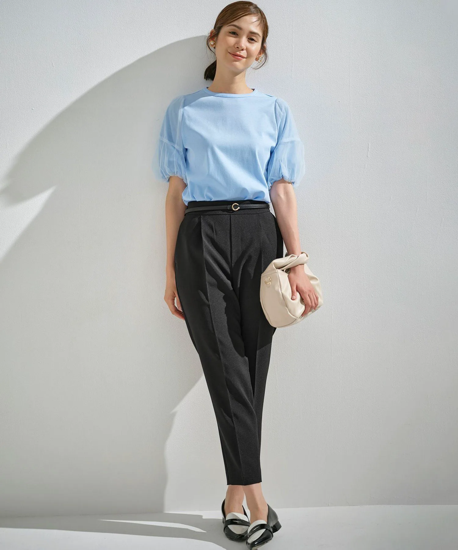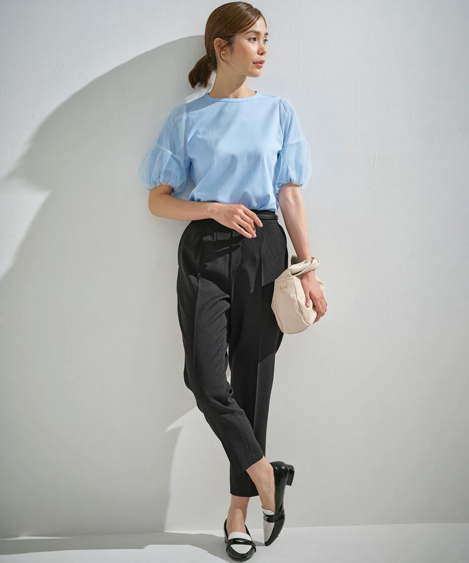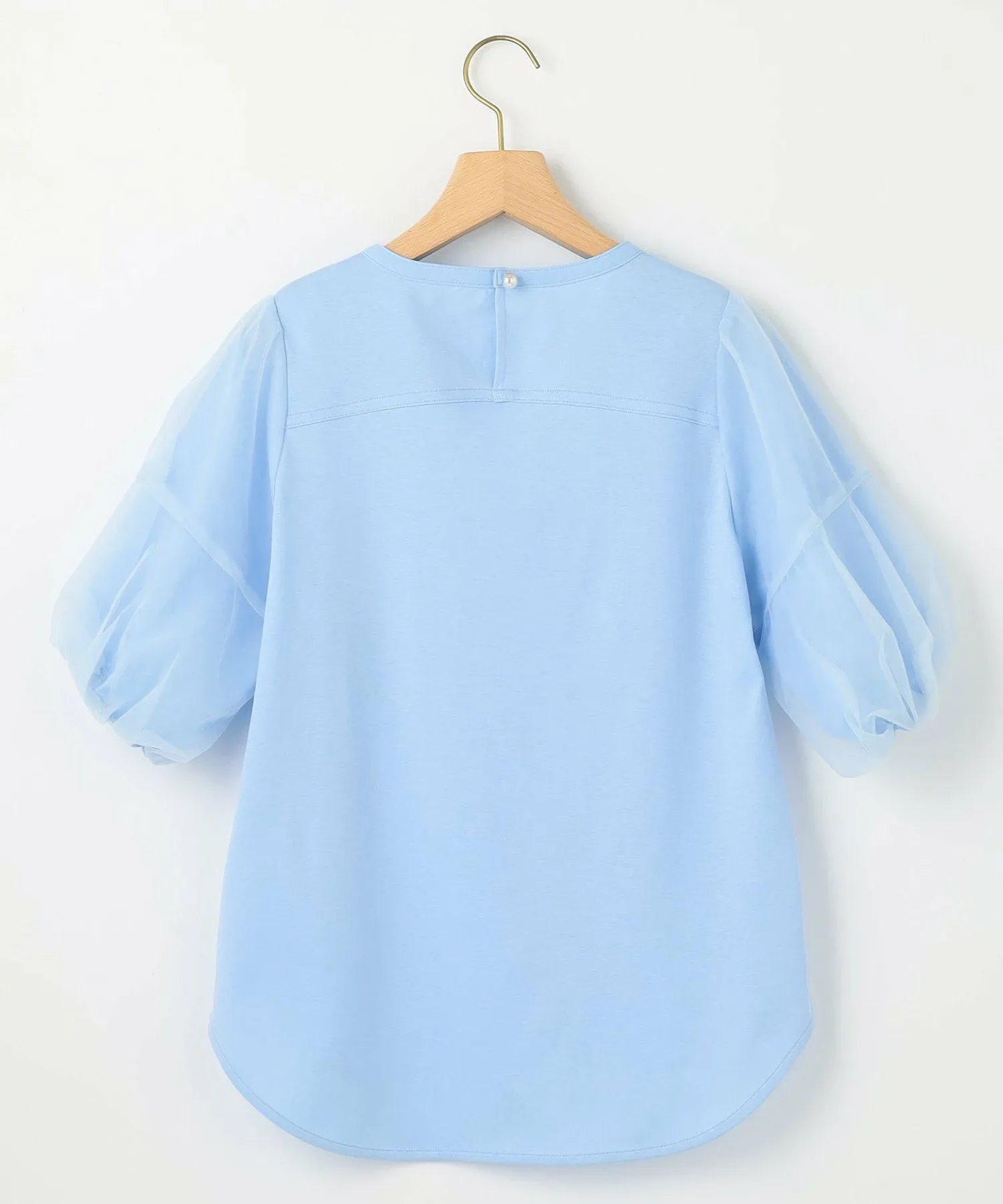Дизайн: Этот топ отличается красивым силуэтом, который в меру свободен, но при этом сохраняет лаконичность. Женственные рукава из тюля состоят из двух слоев прозрачного тюля, создавая трехмерный эффект благодаря контрастным швам. Современный дизайн не слишком приторный, поэтому он подходит для взрослых. Благодаря использованию элементов дизайна, обычно встречающихся в рубашках, таких как кокетка на спине и закругленный нижний край, эта изысканная футболка сохраняет непринужденность пошива, оставаясь при этом утонченной.