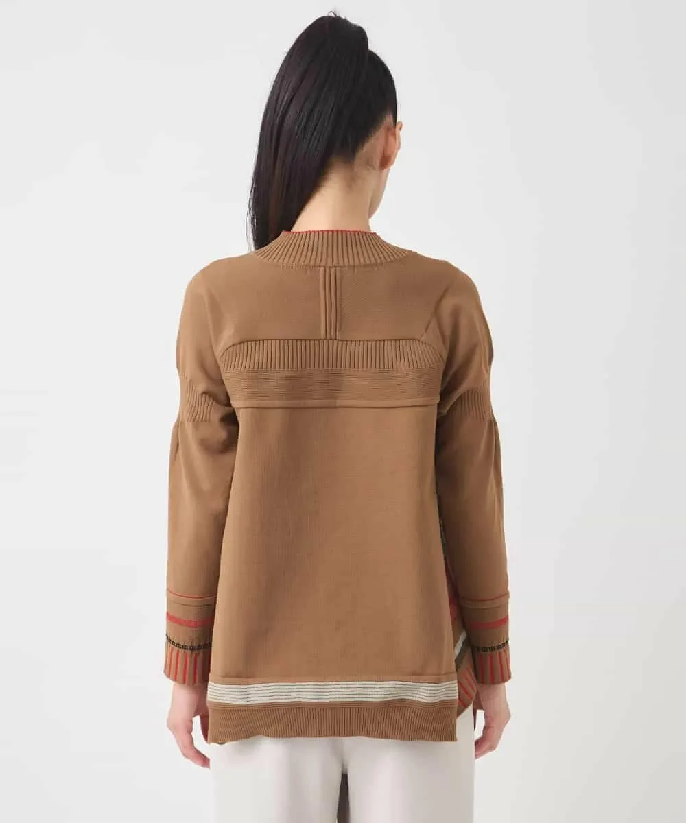 Жаккардовый трикотаж с каймой, изготовленный из смеси трех материалов. Благодаря оптимальной толщине, это практичный предмет одежды для осени и зимы, идеально подходящий для ношения под верхней одеждой.