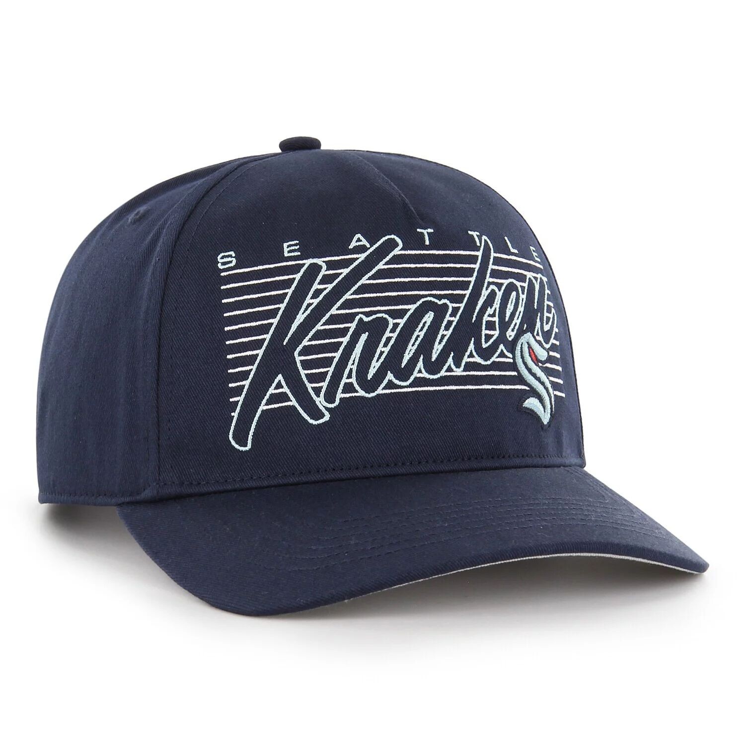 Эта шляпа Marquee Hitch добавит изюминку любому образу Seattle Kraken. Эта кепка 47-го года украшена яркой вышивкой спереди и контрастным нижним козырьком, придающим дополнительную детальность. Застежка-застежка Snapback обеспечивает удобную посадку и идеально подходит для просмотра захватывающей игры Сиэтл Кракен на льду.