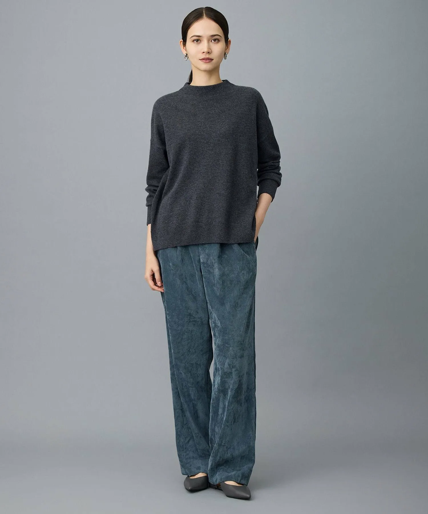 Вязаный свитер с воротником-стойкой, обеспечивающий оптимальную свободу движений и тепло. Дизайн: Этот пуловер имеет аккуратный воротник-стойку и свободный силуэт, обеспечивающий оптимальную свободу движений. Несмотря на простоту и удобство ношения, он отличается такими деталями, как разрезы на манжетах и разная длина спереди и сзади. Это простой, но элегантный свитер с женственным, расслабленным силуэтом. Материал: Изготовлен из сверхтонкой австралийской мериносовой шерсти. Благодаря скручиванию шерстяных и полукамвольных нитей, мягкая, теплая текстура шерсти дополняется естественным блеском и мягкостью полукамвольной шерсти, создавая роскошный результат. Тщательно связанный высокой плотностью, он обеспечивает необходимый объем, оставаясь при этом легким, создавая ветосезонную текстуру, подходящую для длительного ношения вплоть до ранней весны. Благодаря своему элегантному блеску, это идеальный свитер для утонченных женщин в этом сезоне. Товары из того же материала: трикотажное платье с V-образным вырезом (KRWRLS0051) и трикотажное платье (OPWRLS0051)