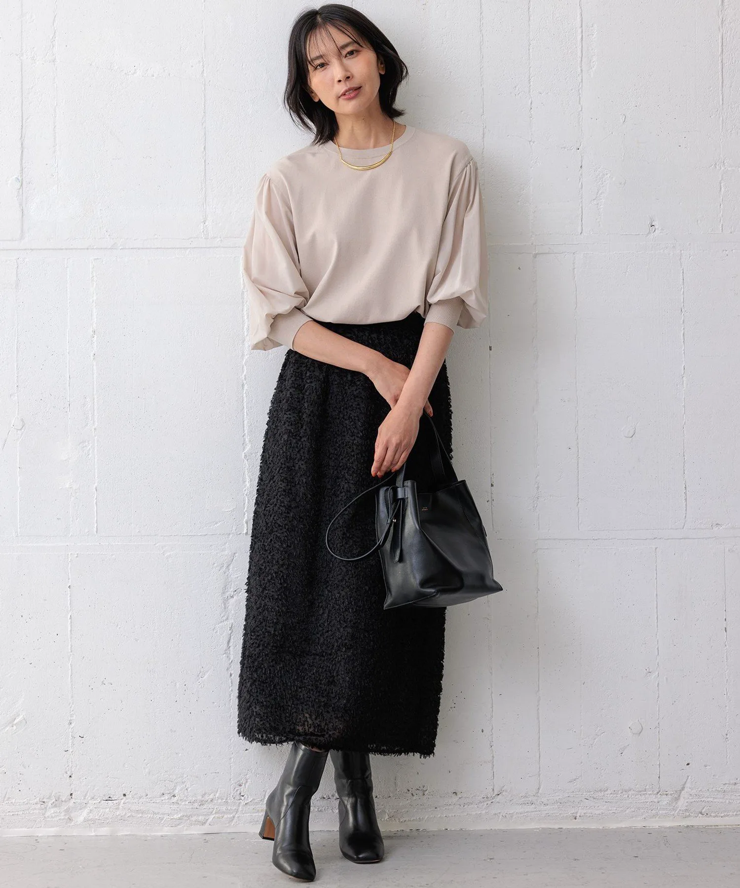 Этот трикотажный крой отличается эффектными пышными рукавами с обильной, деликатной сборкой. Рукава выполнены из вуали с умеренной прозрачностью, что придает им легкий, изысканный вид, не делая их слишком приторными. Небольшое подворачивание рукавов помогает сбалансировать образ, и этот пуловер обновит ваш наряд, добавив современный штрих. Доступен в пяти цветах: легко сочетающийся черный (#005), привычный бежевый (#033), приглушенный хаки (#054), яркий слоновая кость (#002) и изысканный темно-синий (#075).