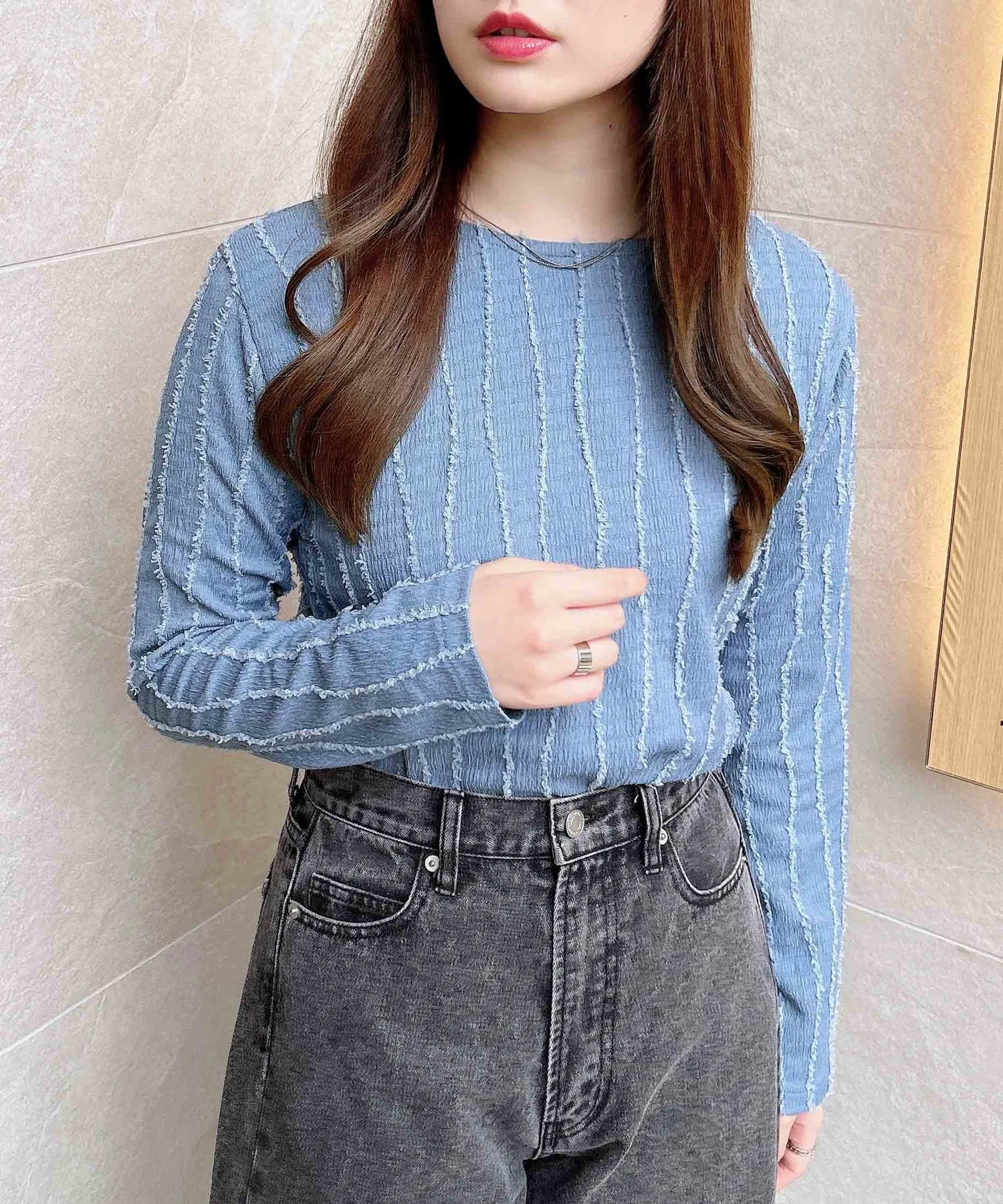 Ткань с бахромой гладкая и эластичная, что делает его удобным в ношении.
