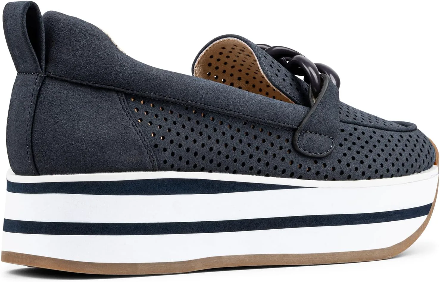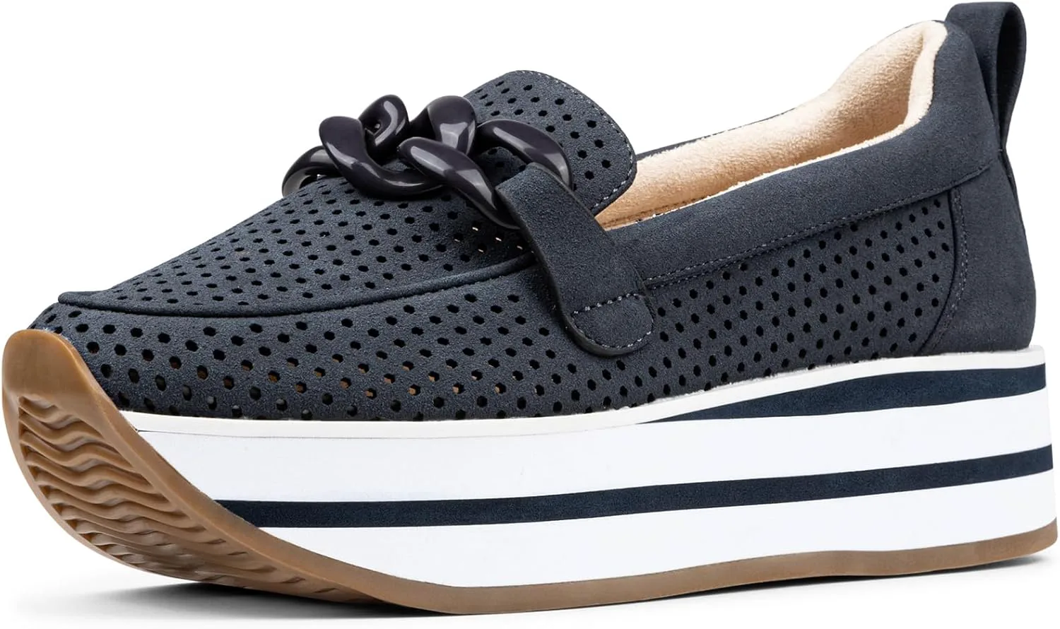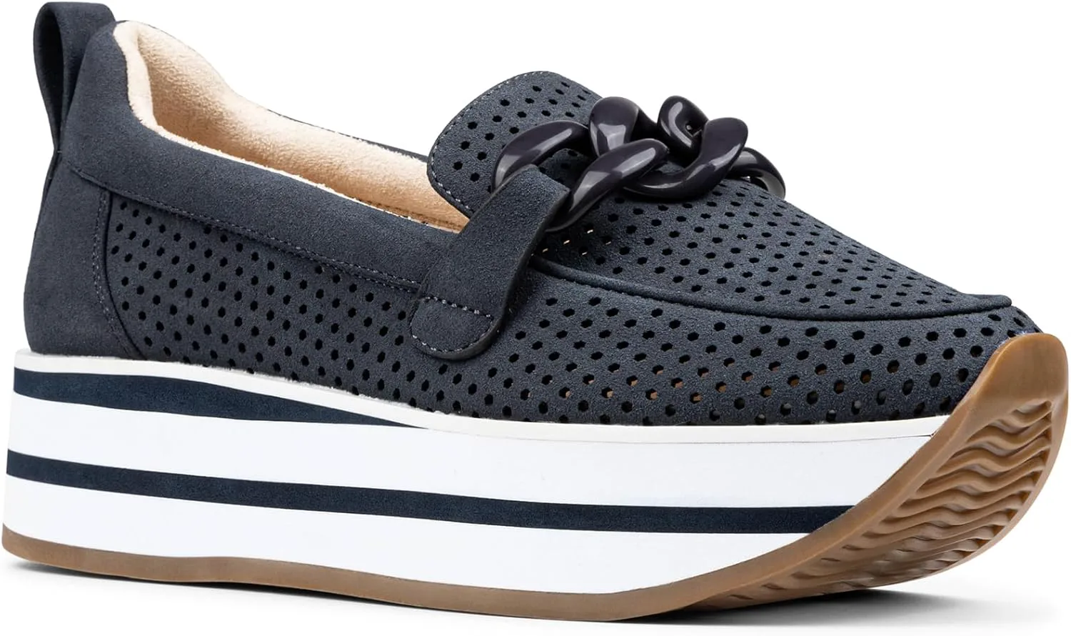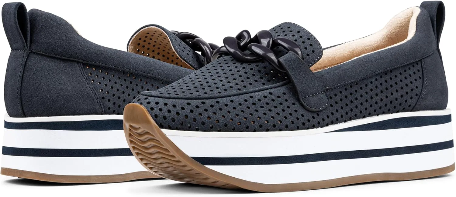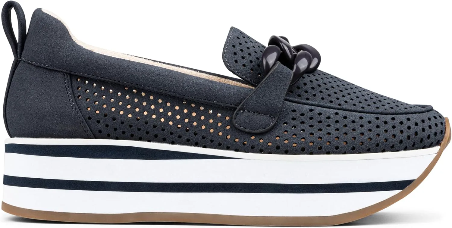 Лоферы Fern Platform от NYDJ выполнены на спортивной подошве, что делает их интересным вариантом гибридной обуви. Верх из ультрамягкого перфорированного искусственного замша делает дизайн легким, воздушным и дышащим, а мягкая платформа добавляет высоты и стиля. Эти слипоны оснащены стелькой с эффектом памяти и легкой промежуточной подошвой из пеноматериала EVA, обеспечивающей комфорт при ходьбе весь день. Завершают образ совпадающий декоративный элемент в виде цепочки, мягкая окантовка и резиновая подошва.