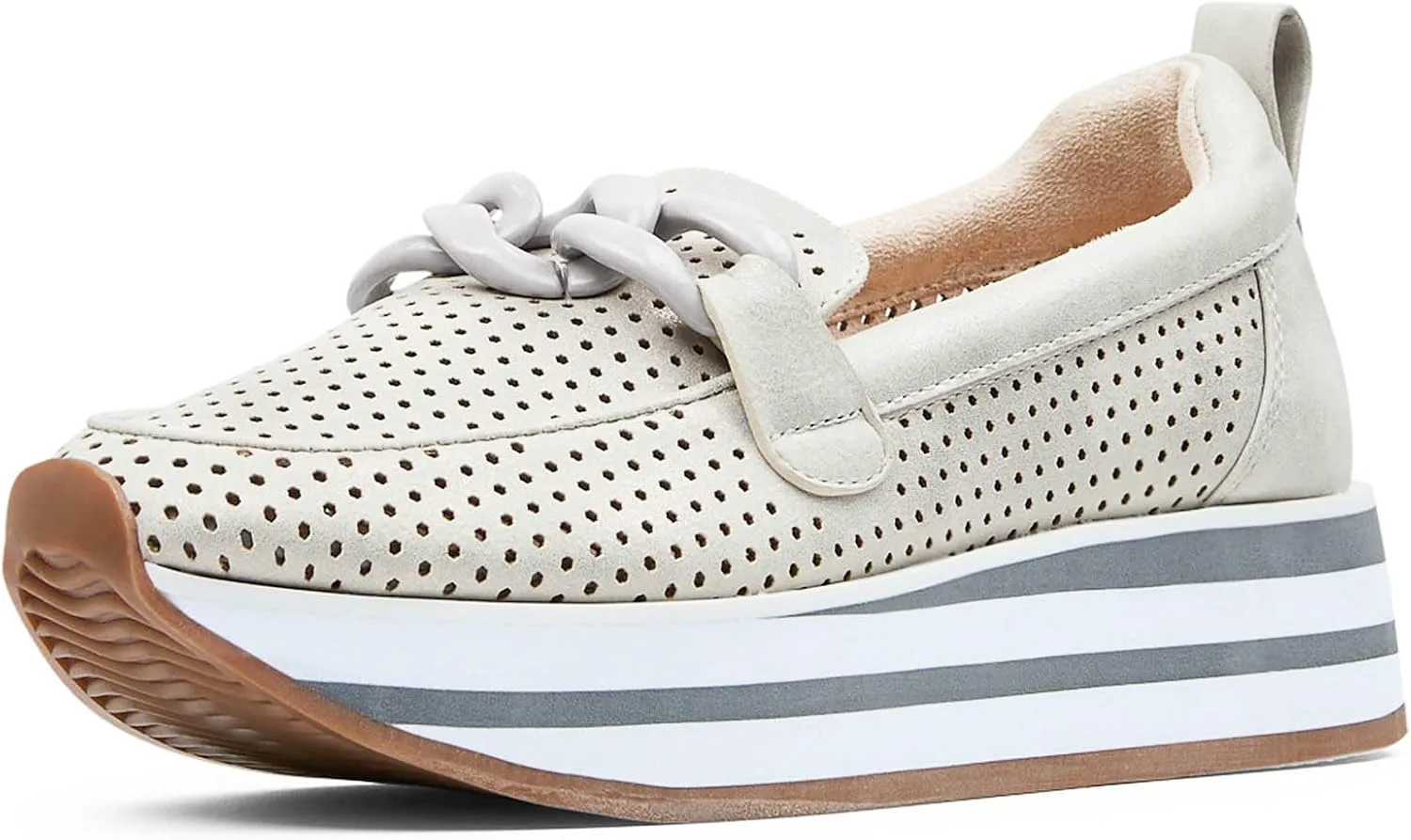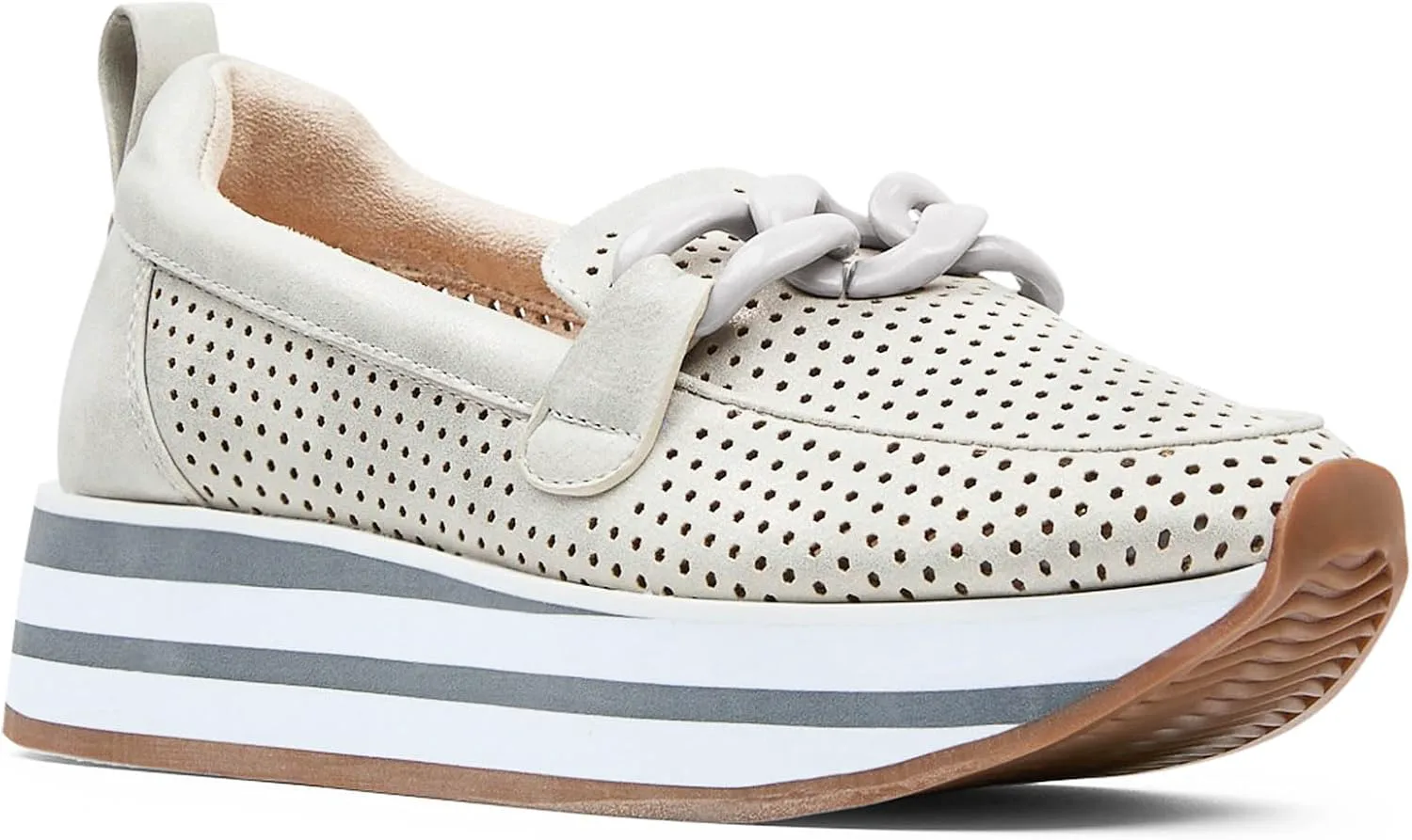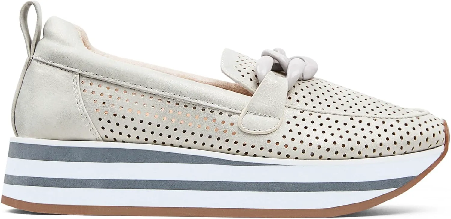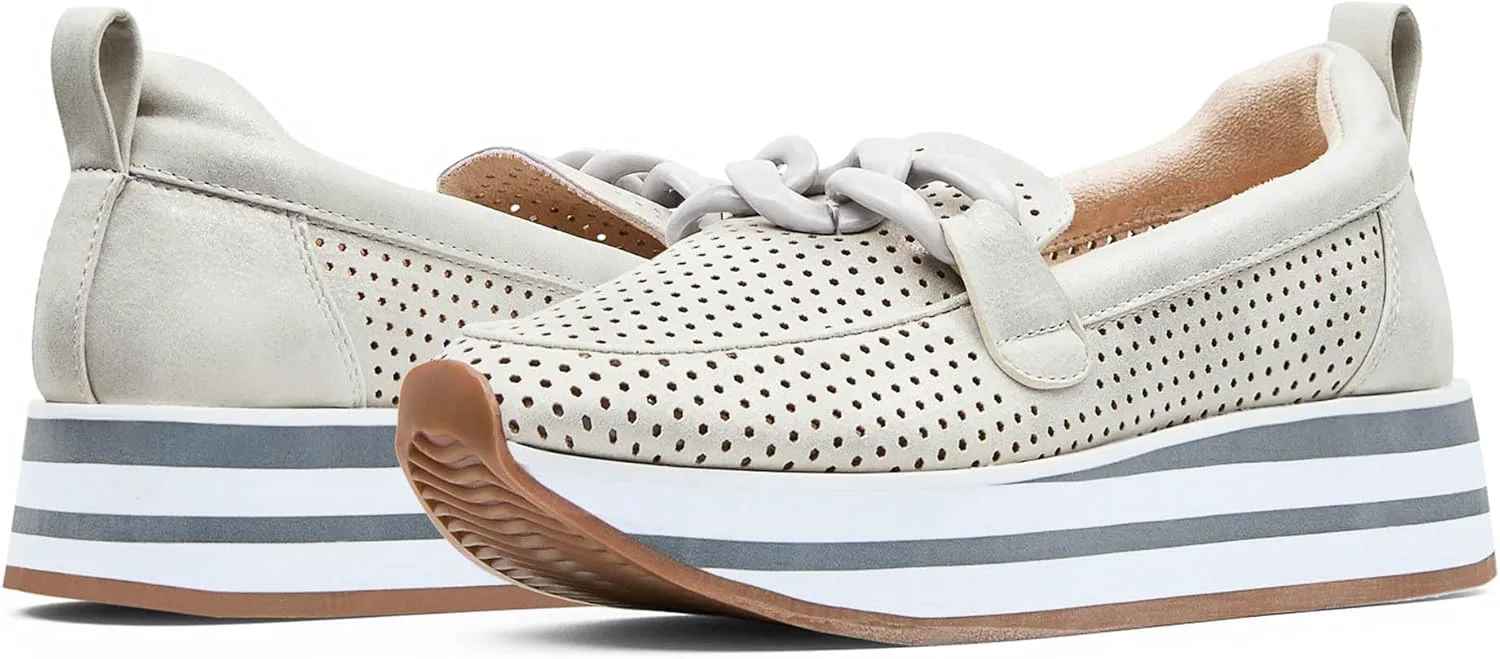 Лоферы Fern Platform от NYDJ выполнены на спортивной подошве, что делает их интересным вариантом гибридной обуви. Верх из ультрамягкого перфорированного искусственного замша делает дизайн легким, воздушным и дышащим, а мягкая платформа добавляет высоты и стиля. Эти слипоны оснащены стелькой с эффектом памяти и легкой промежуточной подошвой из пеноматериала EVA, обеспечивающей комфорт при ходьбе весь день. Завершают образ совпадающий декоративный элемент в виде цепочки, мягкая окантовка и резиновая подошва.