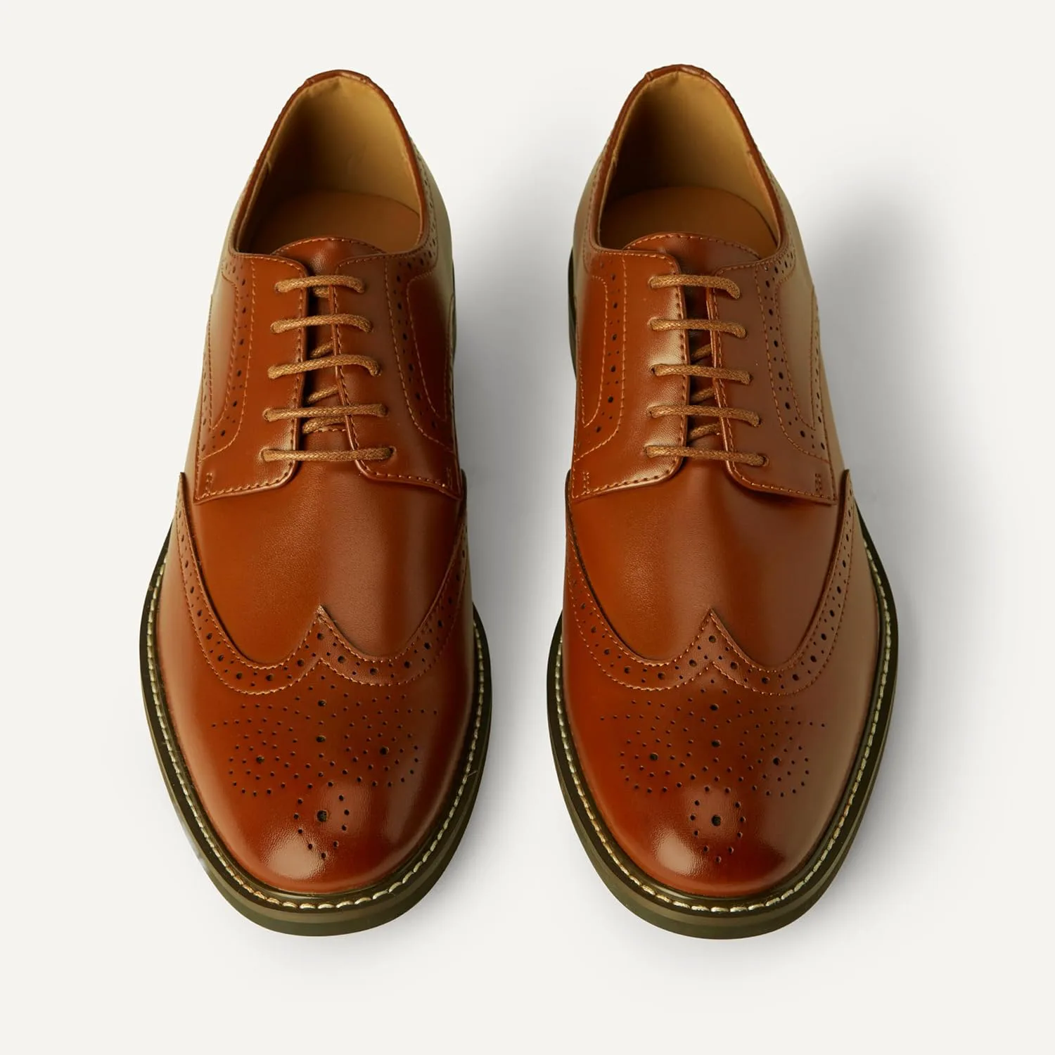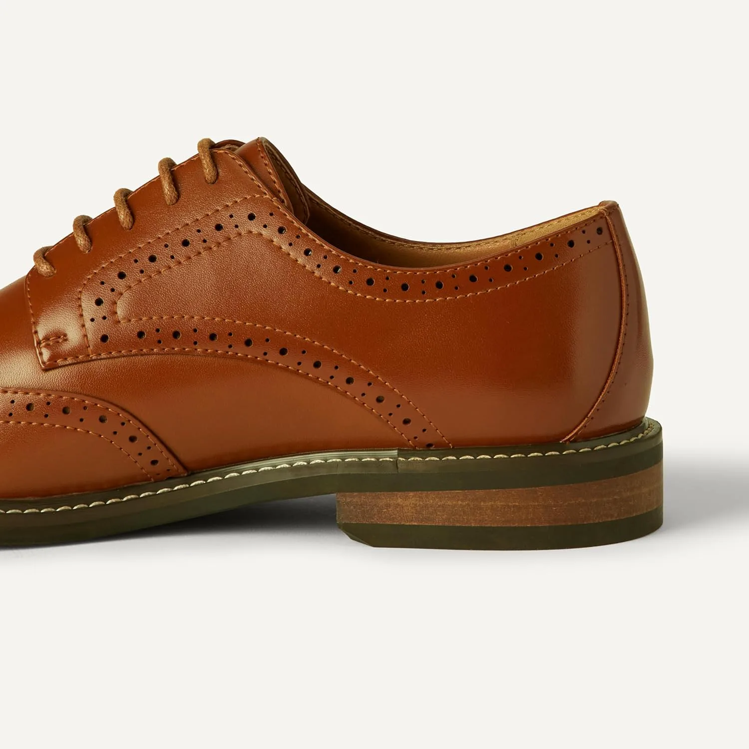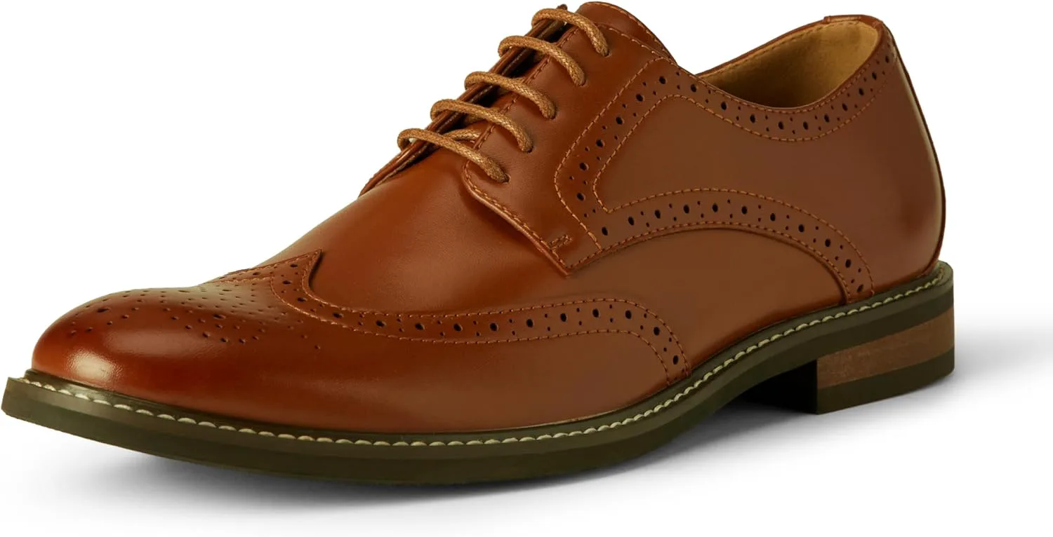 КОМФОРТ И ПОСАДКА: Эти мужские классические туфли оснащены дышащей стелькой из пенопласта с высоким отскоком для дополнительного комфорта и застежкой на шнуровке. МАТЕРИАЛ: Обувь Amazon Essentials изготовлена из высококачественных альтернативных кожаных материалов. Этот стиль выполнен в верхней части из искусственной кожи. СТИЛЬ: Эти классические классические туфли отличаются сложными традиционными деталями и контрастной строчкой на подошве. ДИЗАЙН: Эти отполированные дерби - вечная классика, которая преобразит ваш офисный наряд. ДЕТАЛИ: Каблук длиной 1,25" с контрастной вставкой и нескользящей подошвой