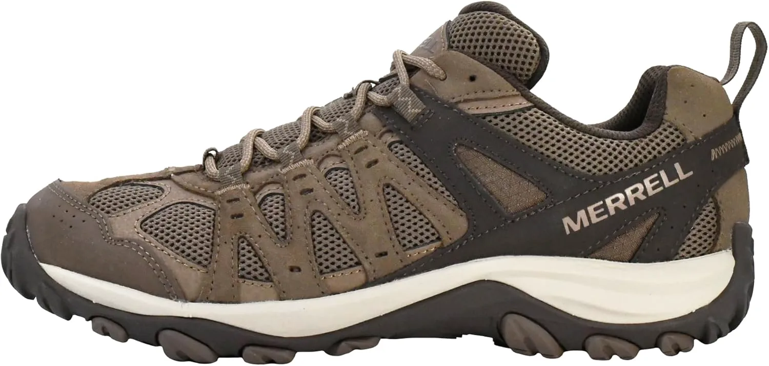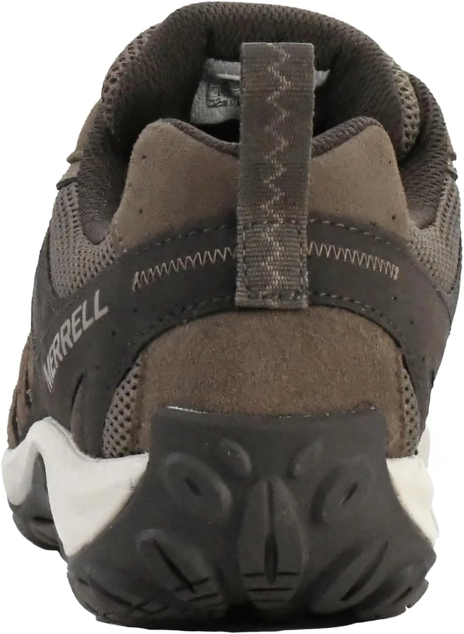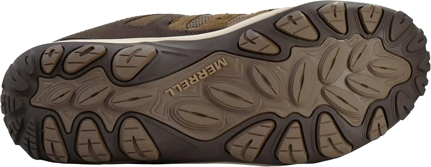 Верх из замшевой кожи и дышащей сетки Легкая промежуточная подошва из пеноматериала EVA для стабильности и комфорта Подошва Merrell из липкой резины с долговечным сцеплением, обеспечивающим надежное держание там, где это нужно Защитный и устойчивый к истиранию резиновый мысок Формованная нейлоновая дуговая вставка