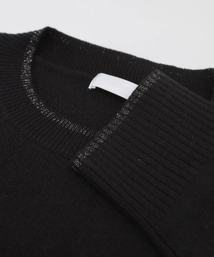 - Блестки вокруг шеи и запястий придают платью женственный вид, несмотря на простой черный фасон.
