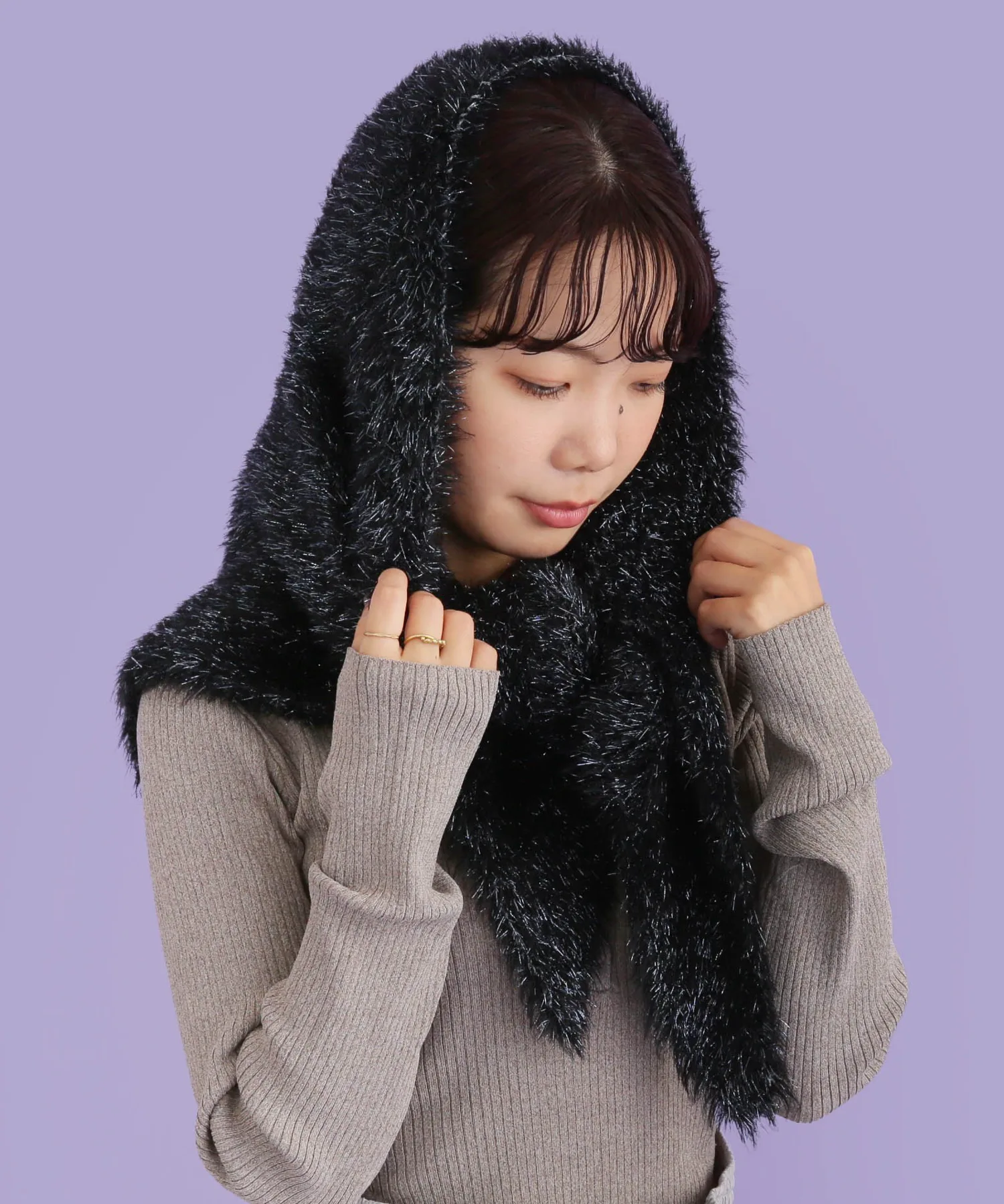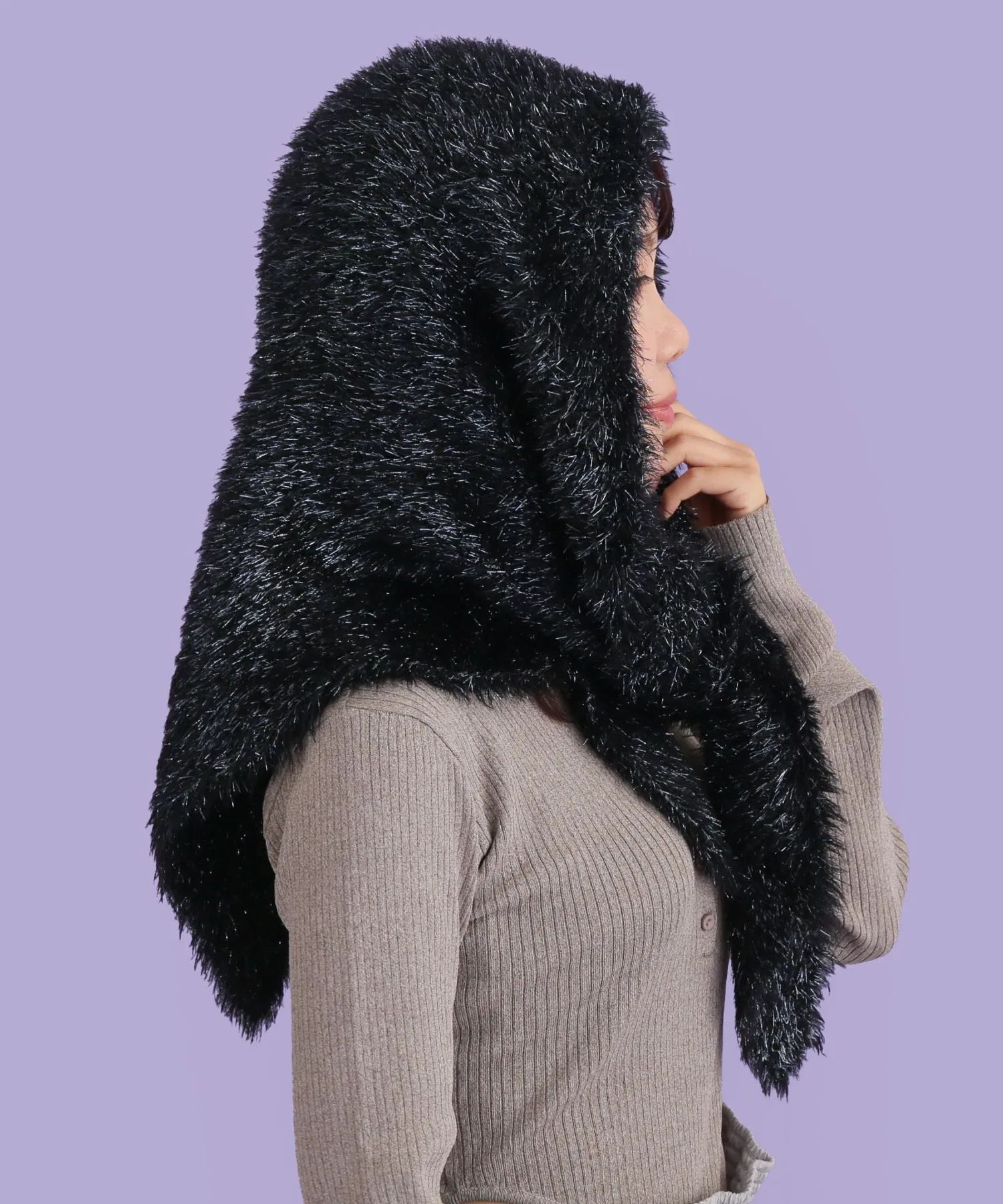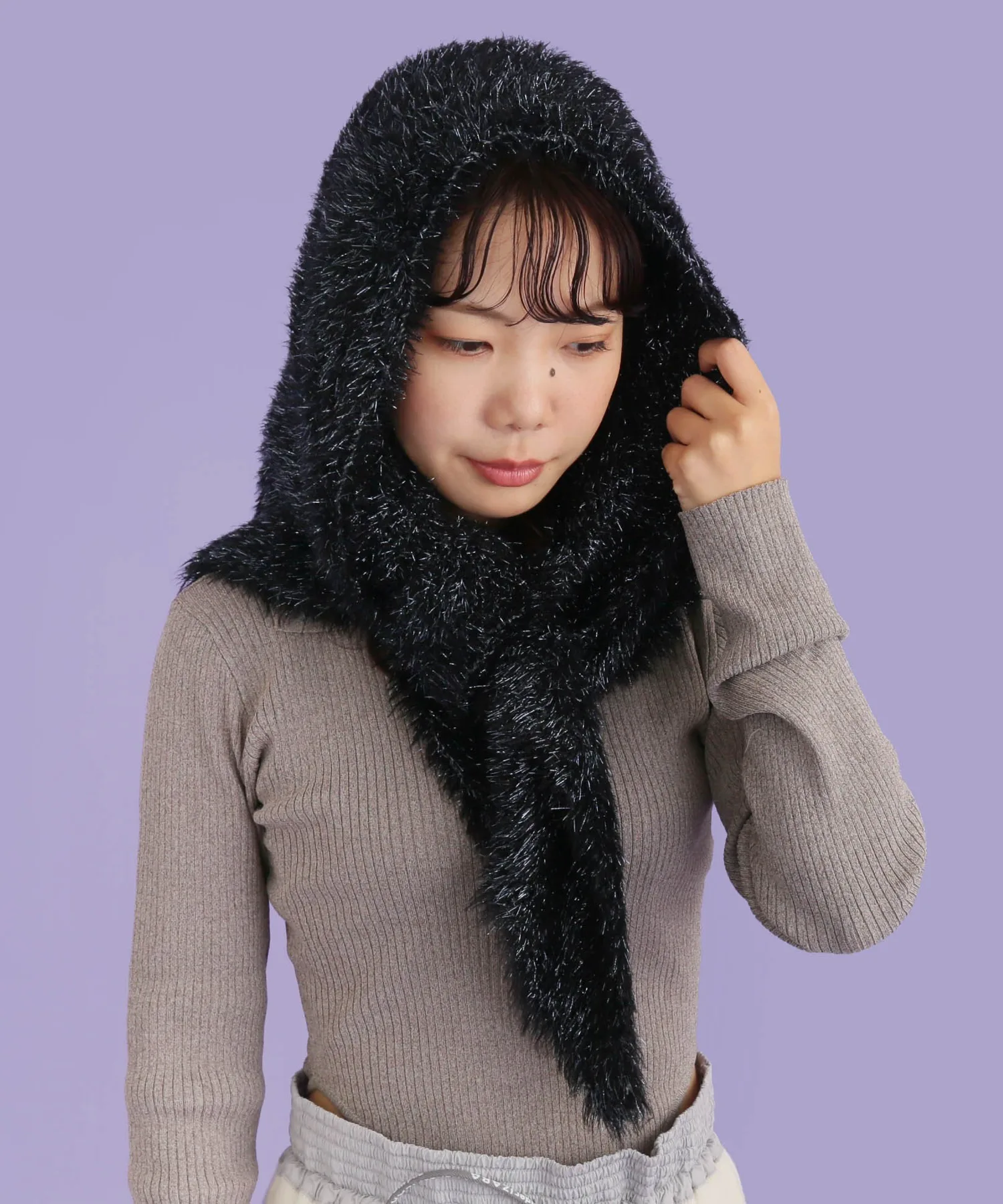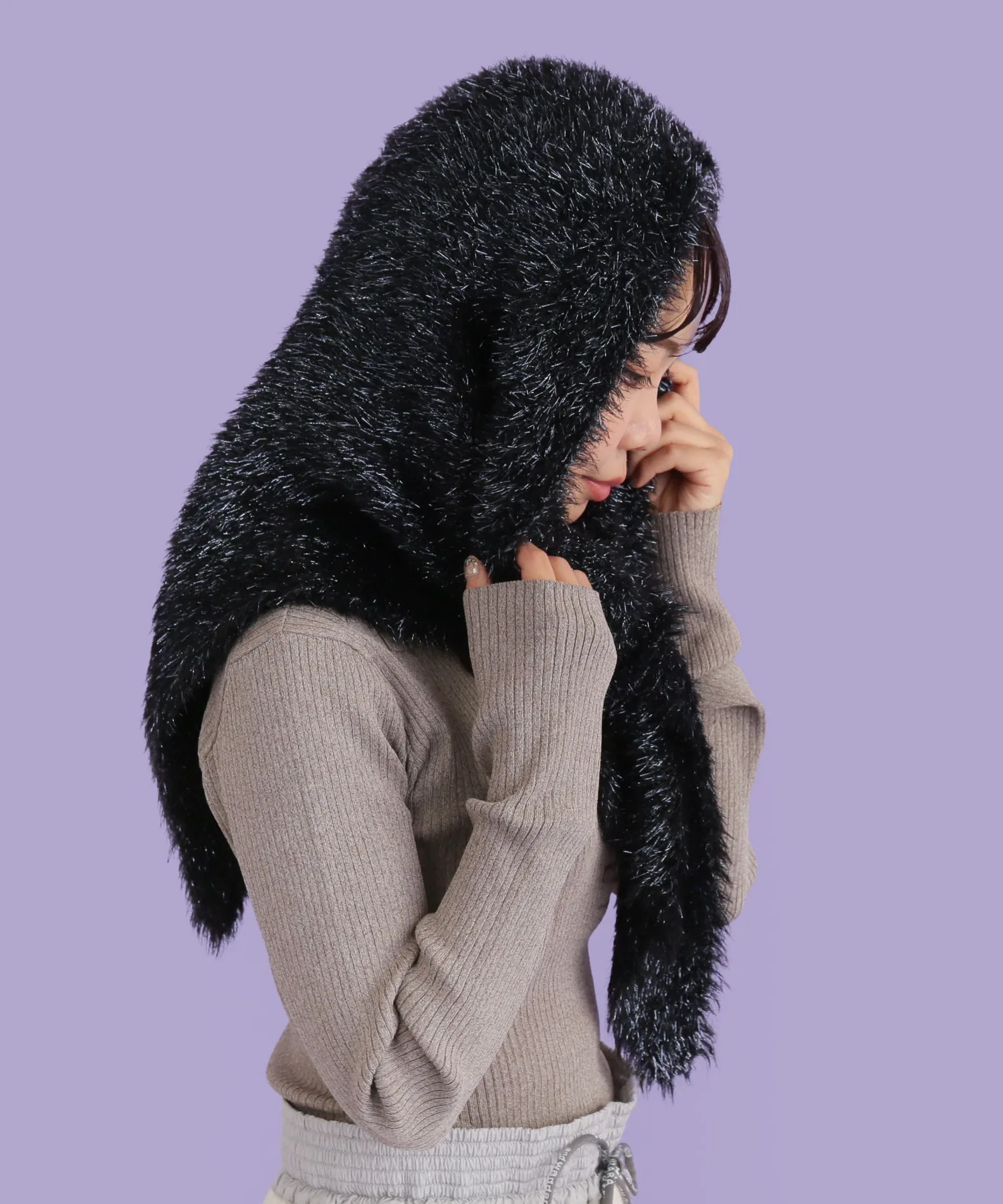 Его можно накинуть на голову как балаклаву, обернуть вокруг головы как шарф или накинуть на плечи. ◎