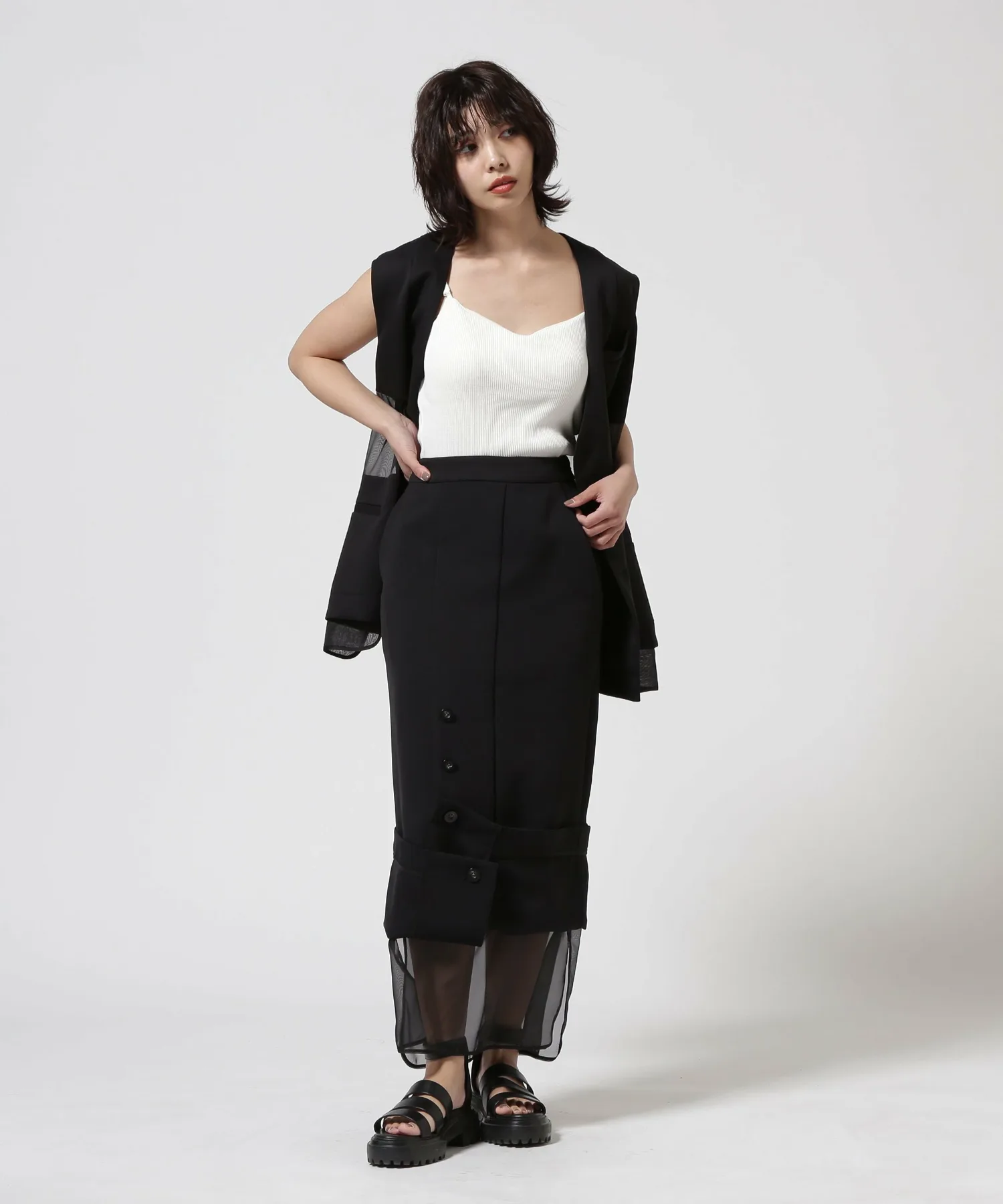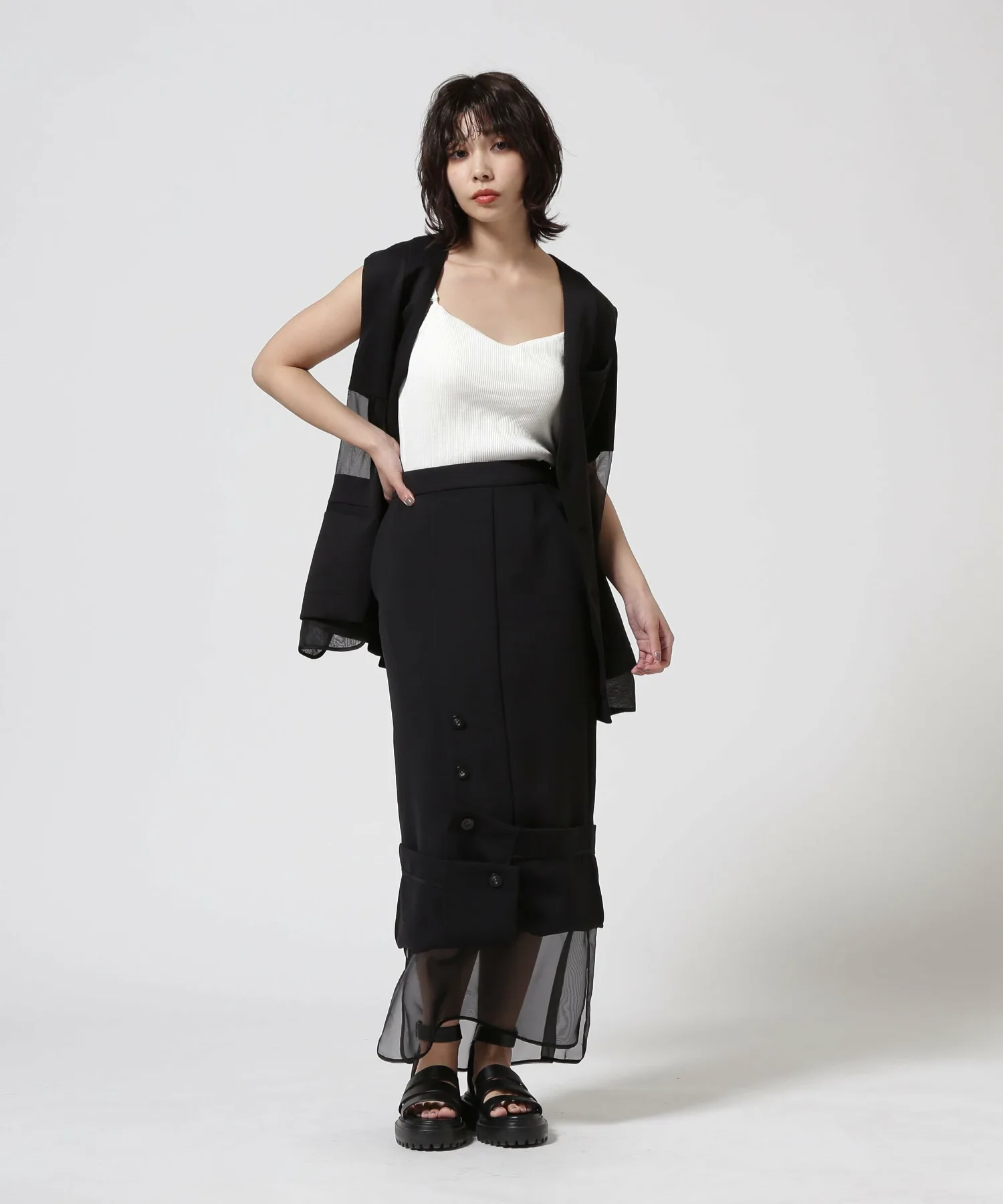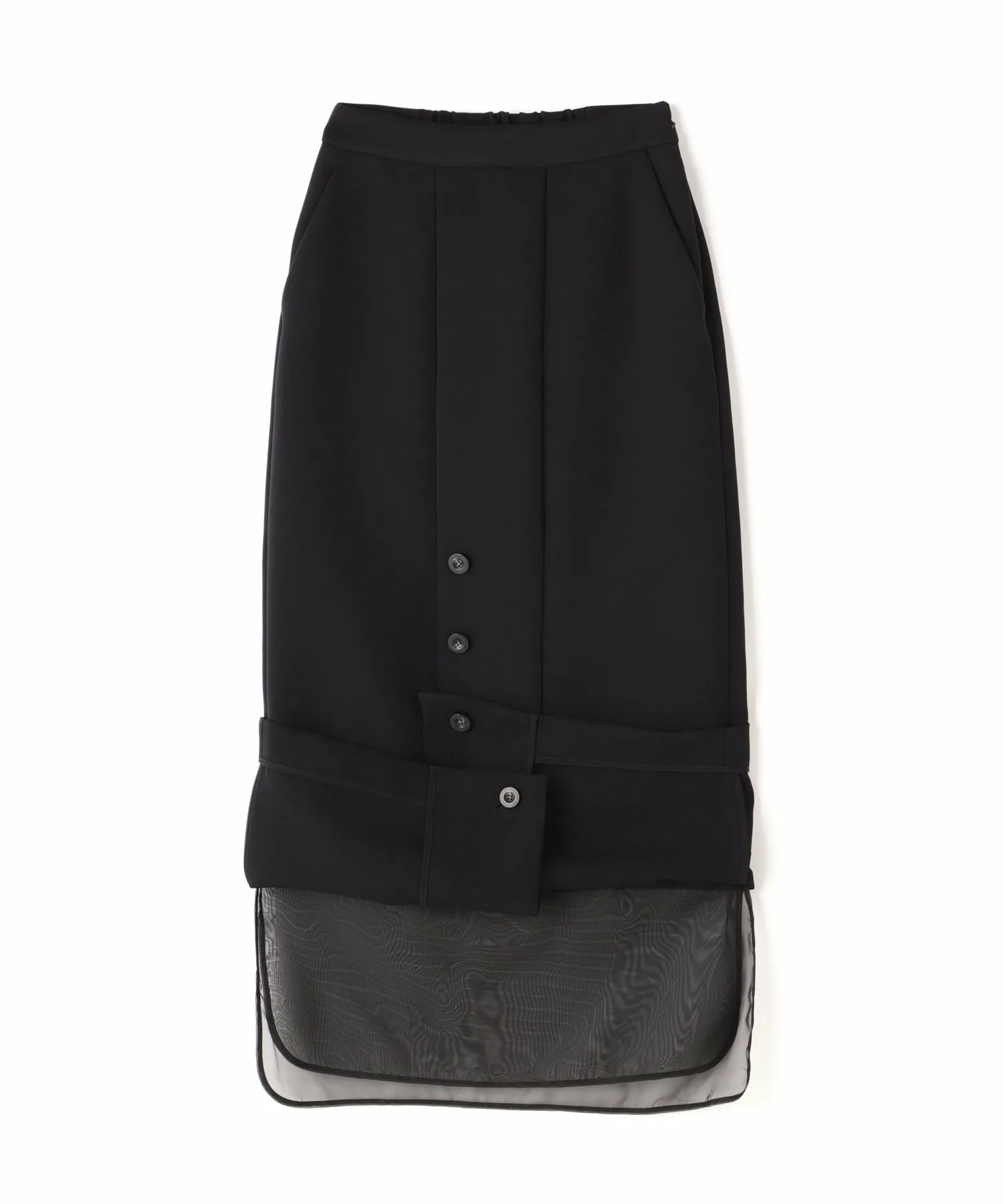 Эта юбка выполнена из многослойной прозрачной ткани, которую можно носить как с подвернутыми краями, так и навыпуск. Двусторонняя конструкция позволяет носить ее с подвернутыми краями или навыпуск в зависимости от случая. Мягкий, но плотный материал делает ее подходящей как для повседневной, так и для торжественной одежды.