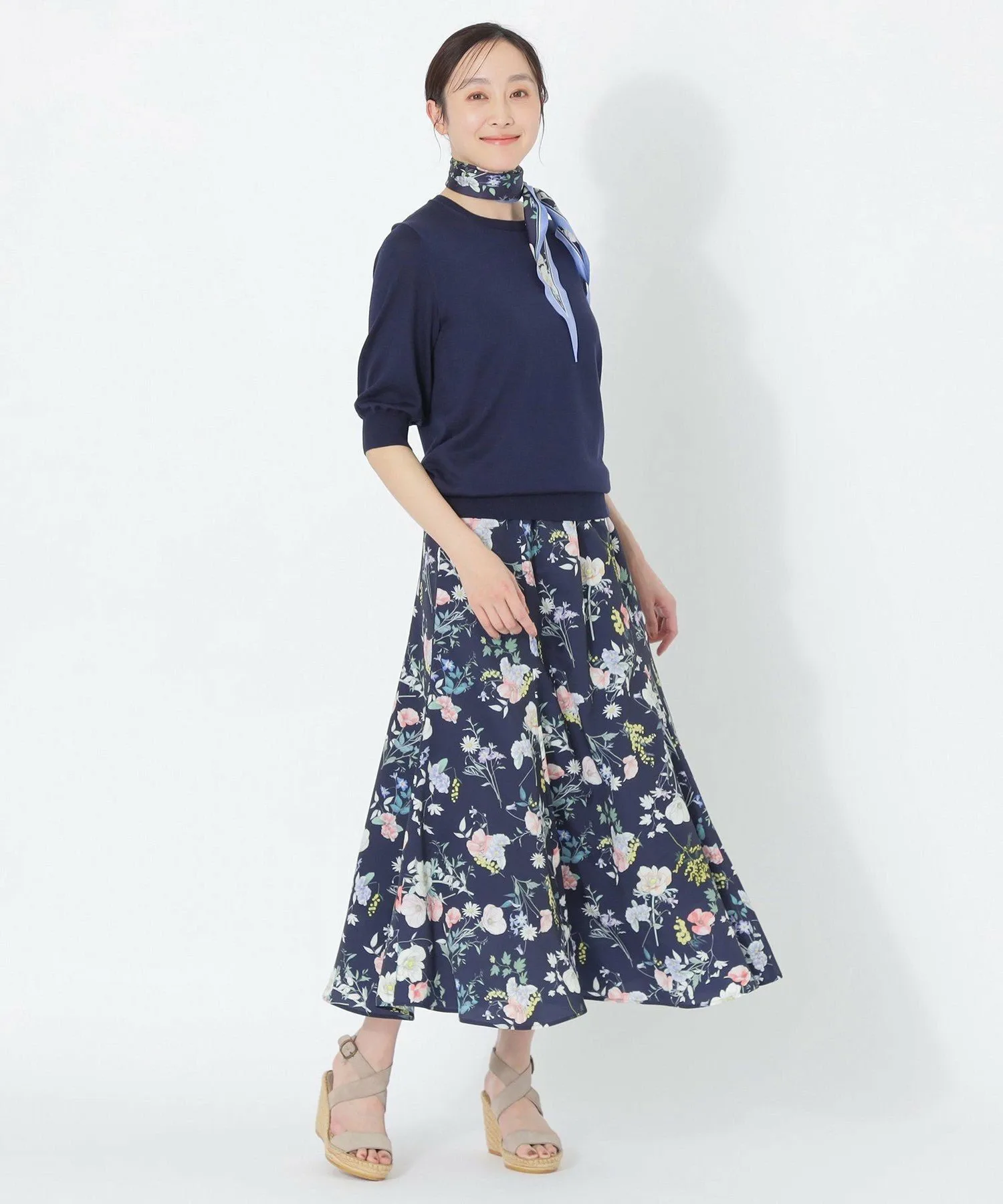 В этой коллаборации с Hibiya Kadan представлены два узора: «LITTLEFLOWER BLESSING» с фиолетовым мотивом цвета 25 и «SPRINGFLOWER GALLERY» с узором в виде шарфа по краю цвета 29. Основа выполнена из полиэстерового крепа, легко моющегося материала с антистатическим покрытием.