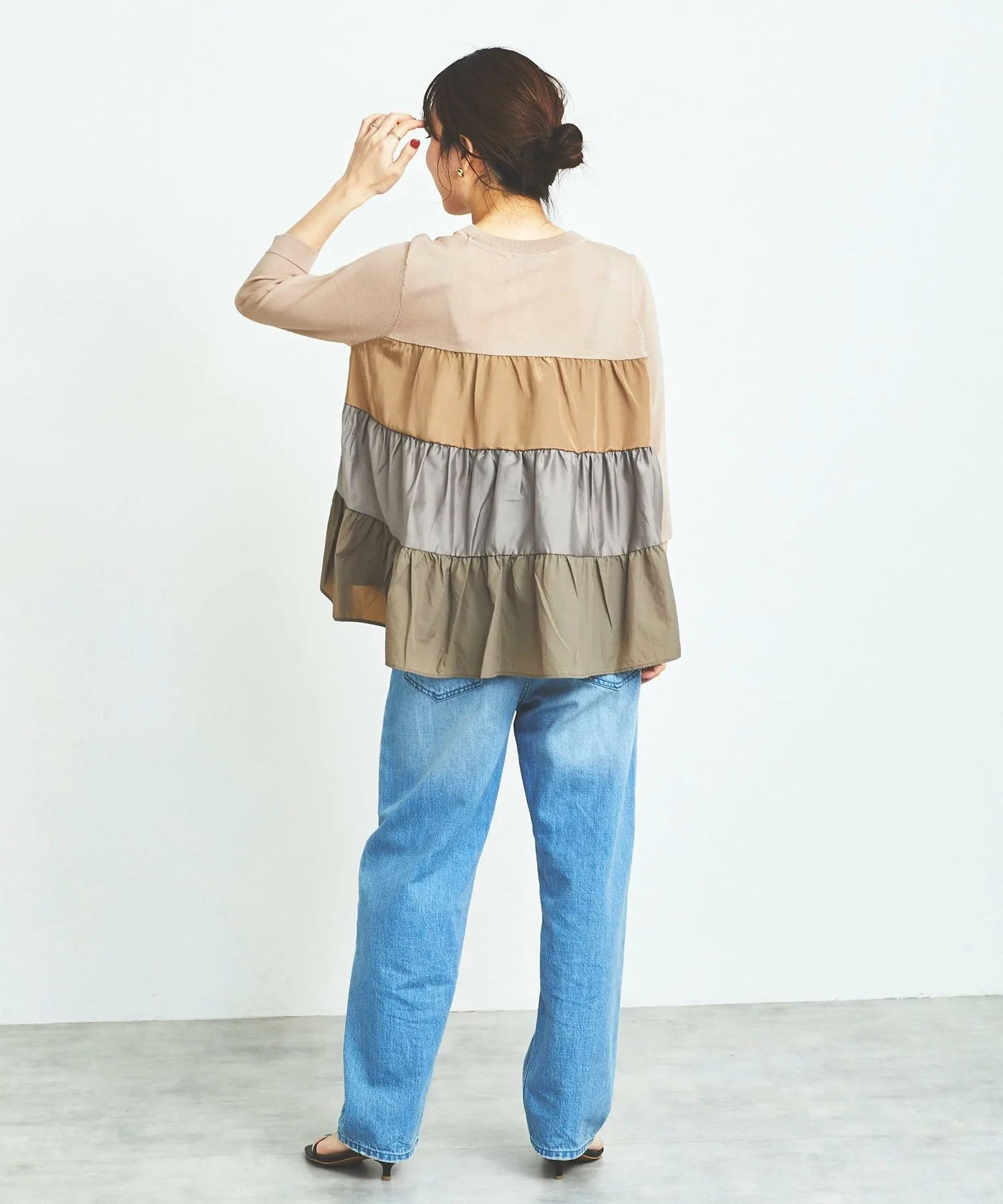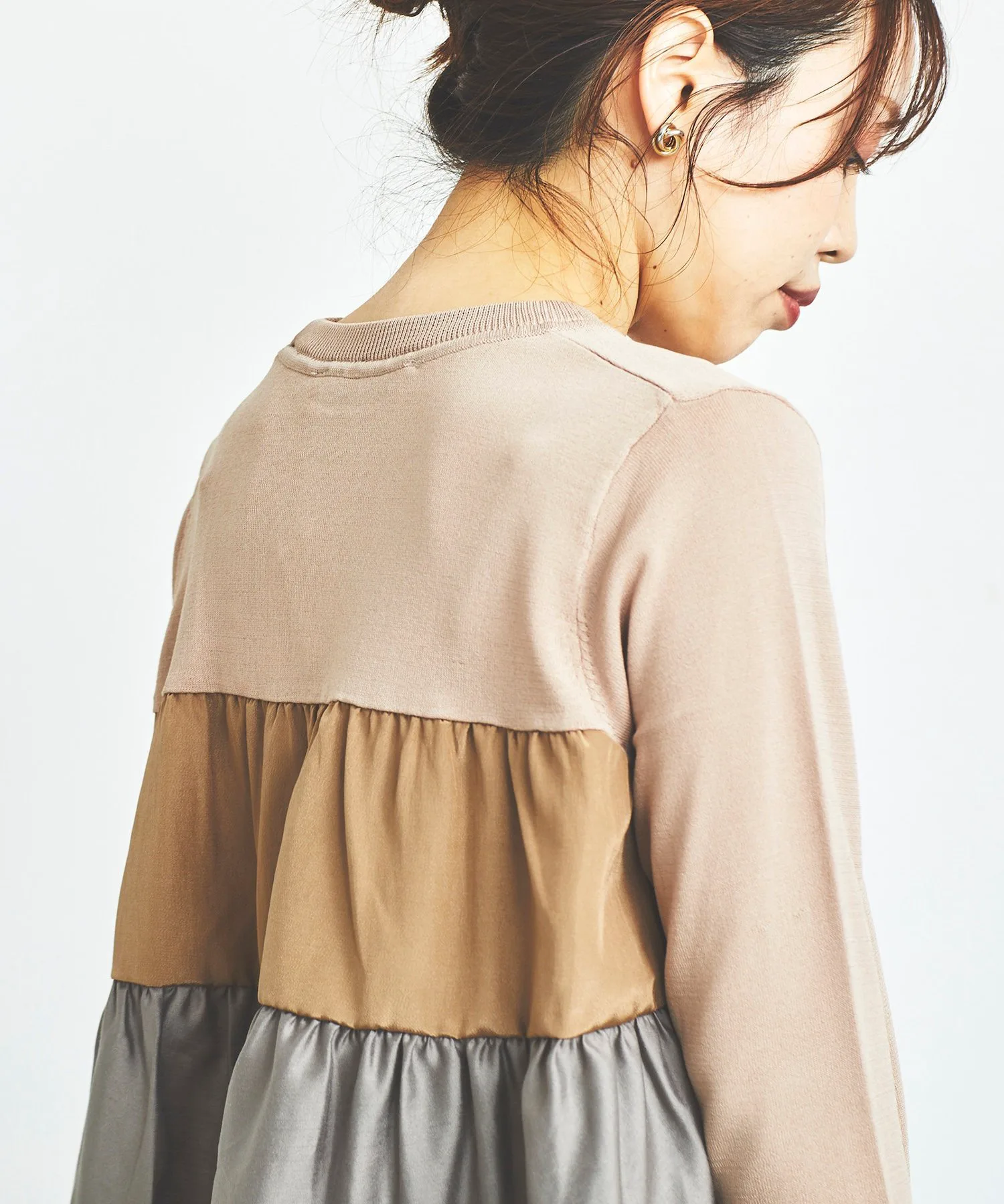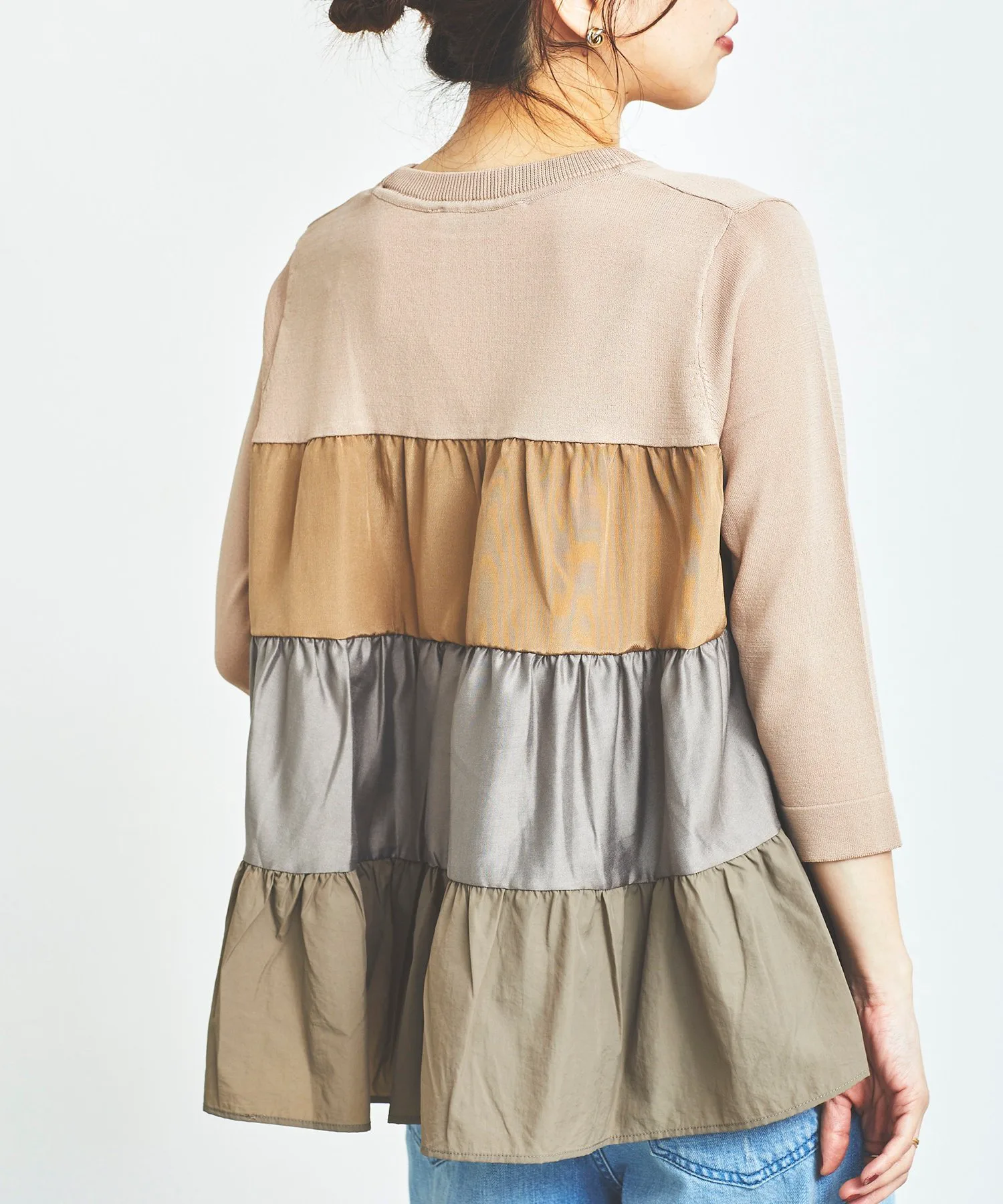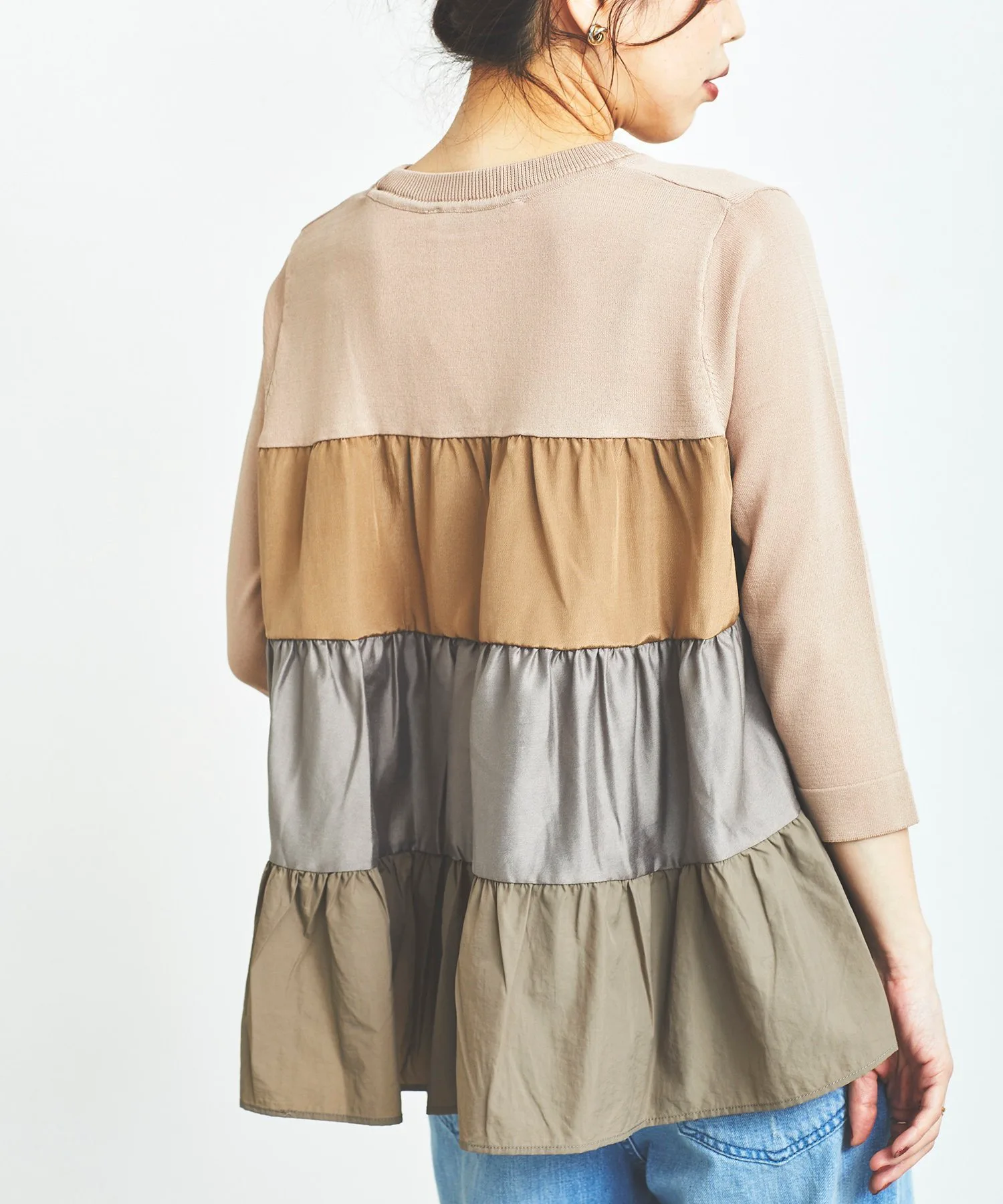 Освежающий вязаный топ с многослойным сочетанием трех разных материалов.