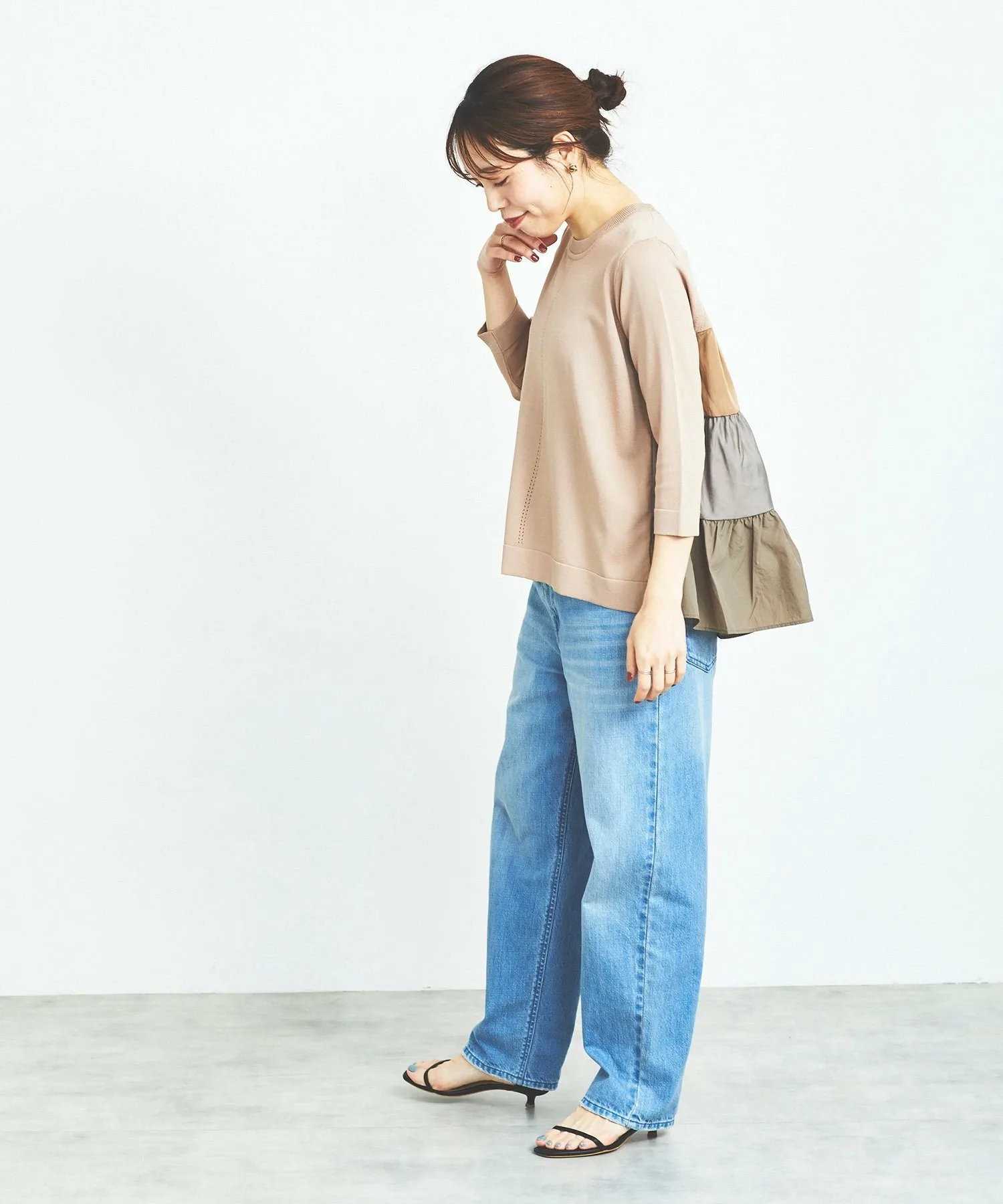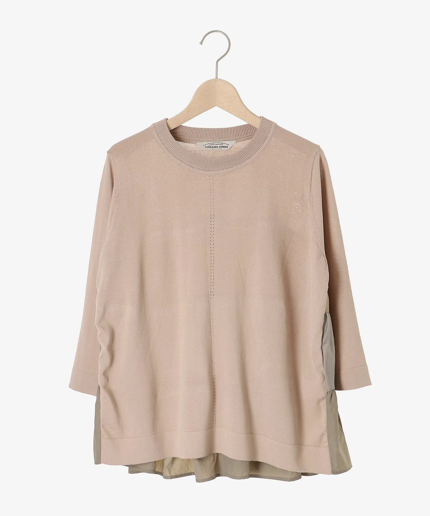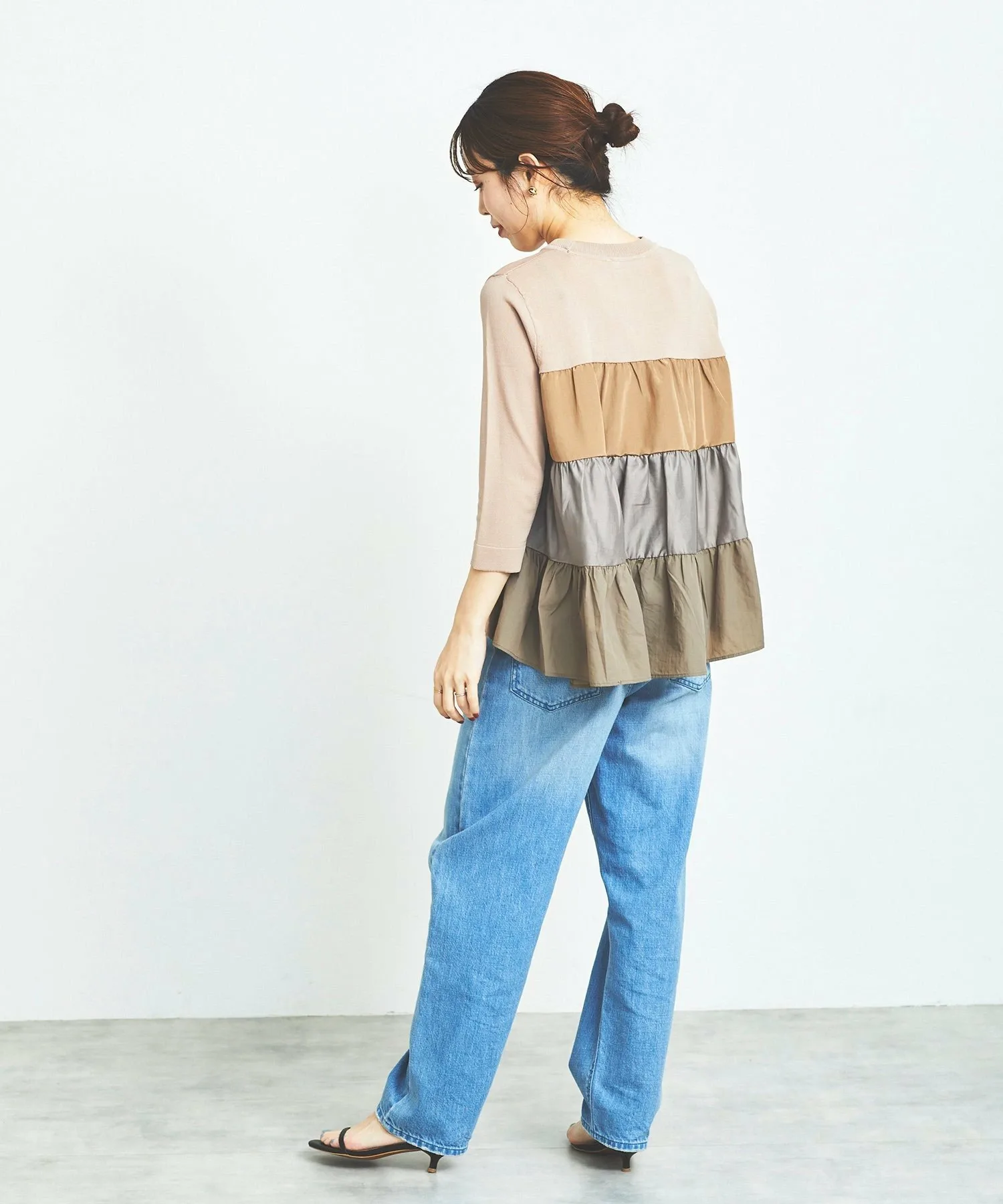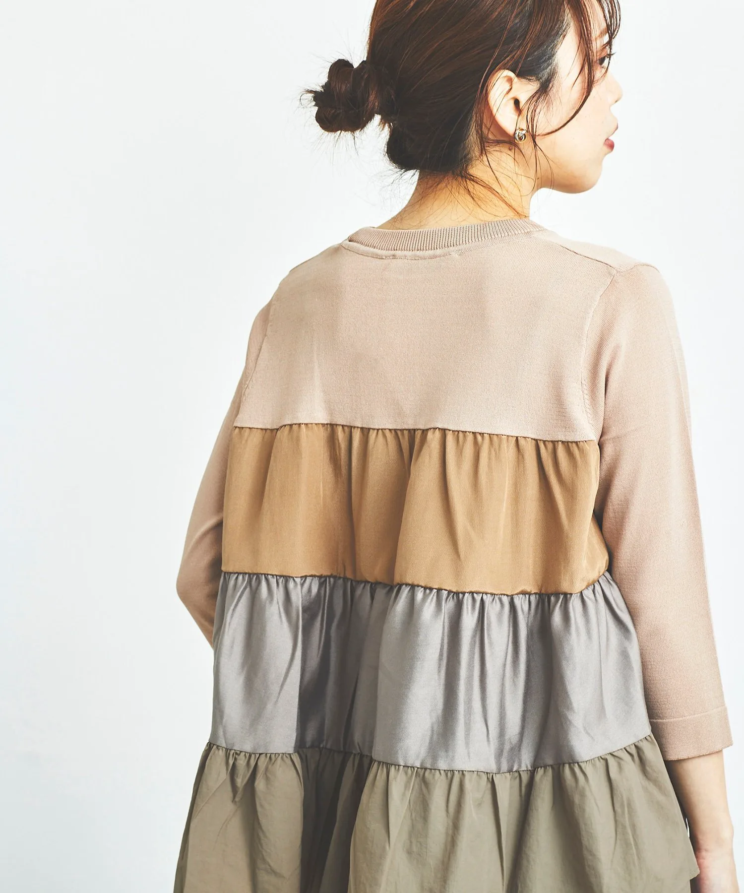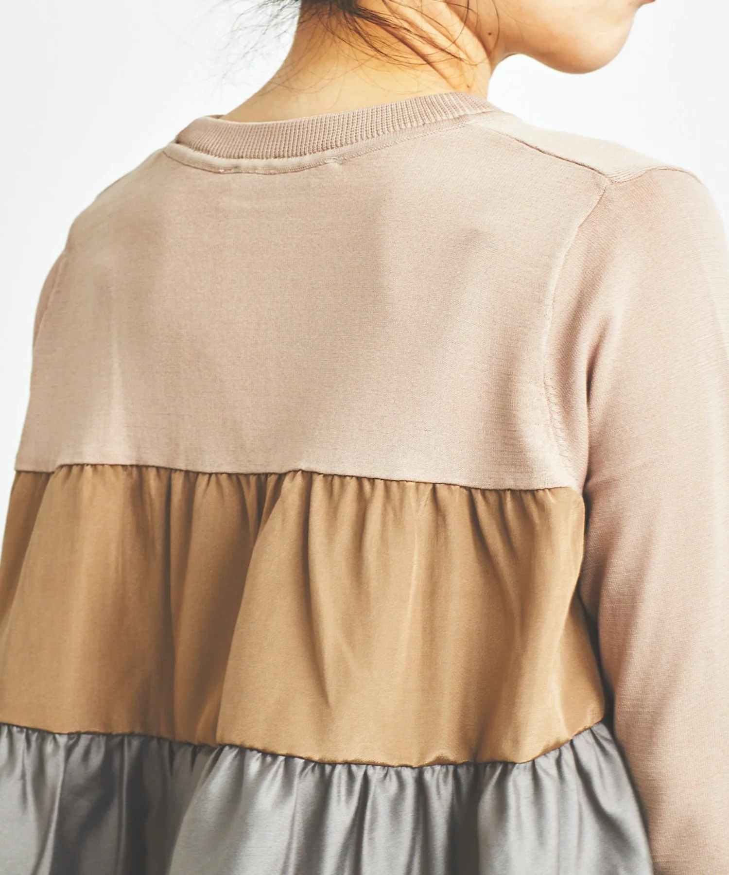Освежающий вязаный топ с многослойным сочетанием трех разных материалов.