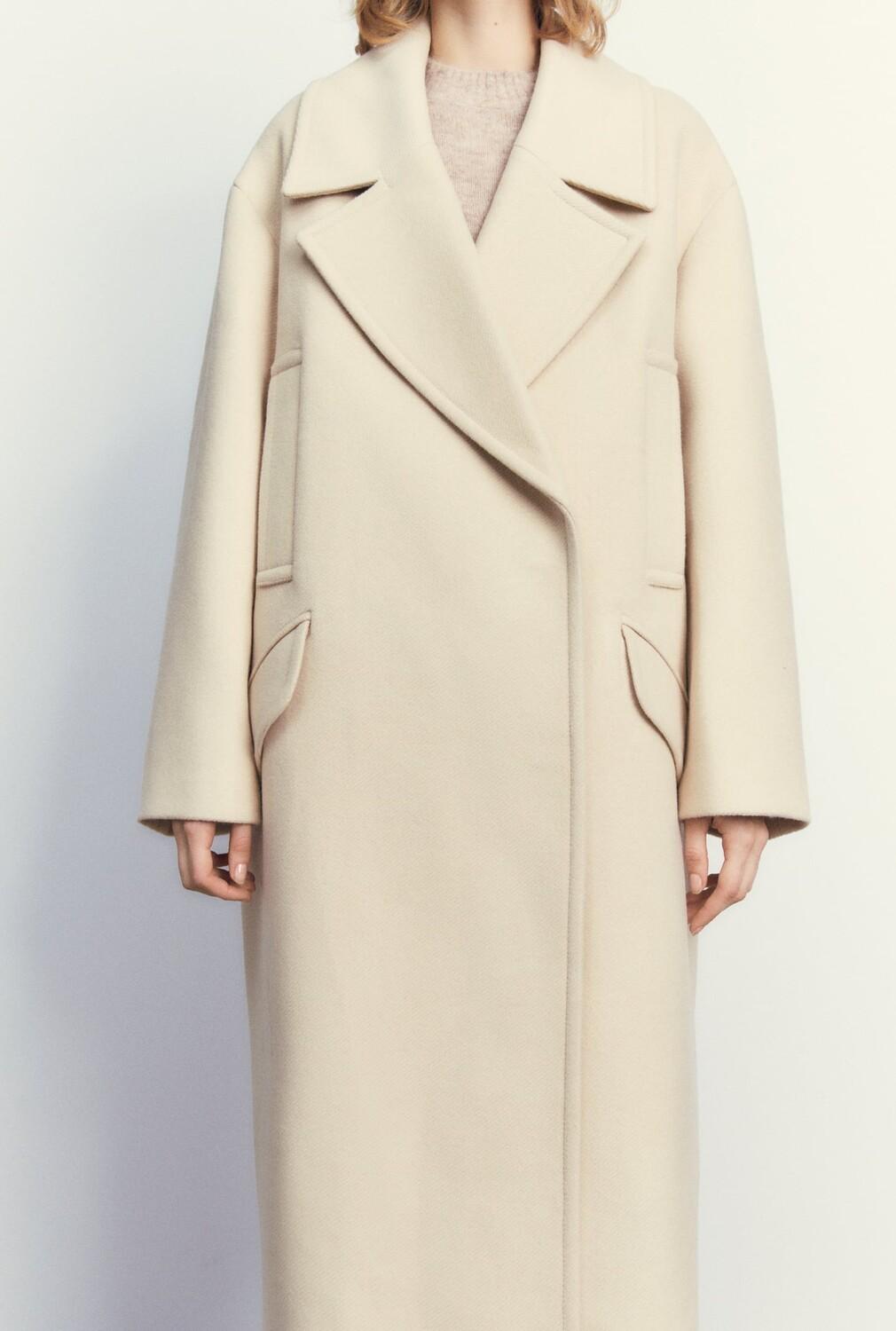 Пальто оверсайз с карманами ZARA, ваниль 8 037₽