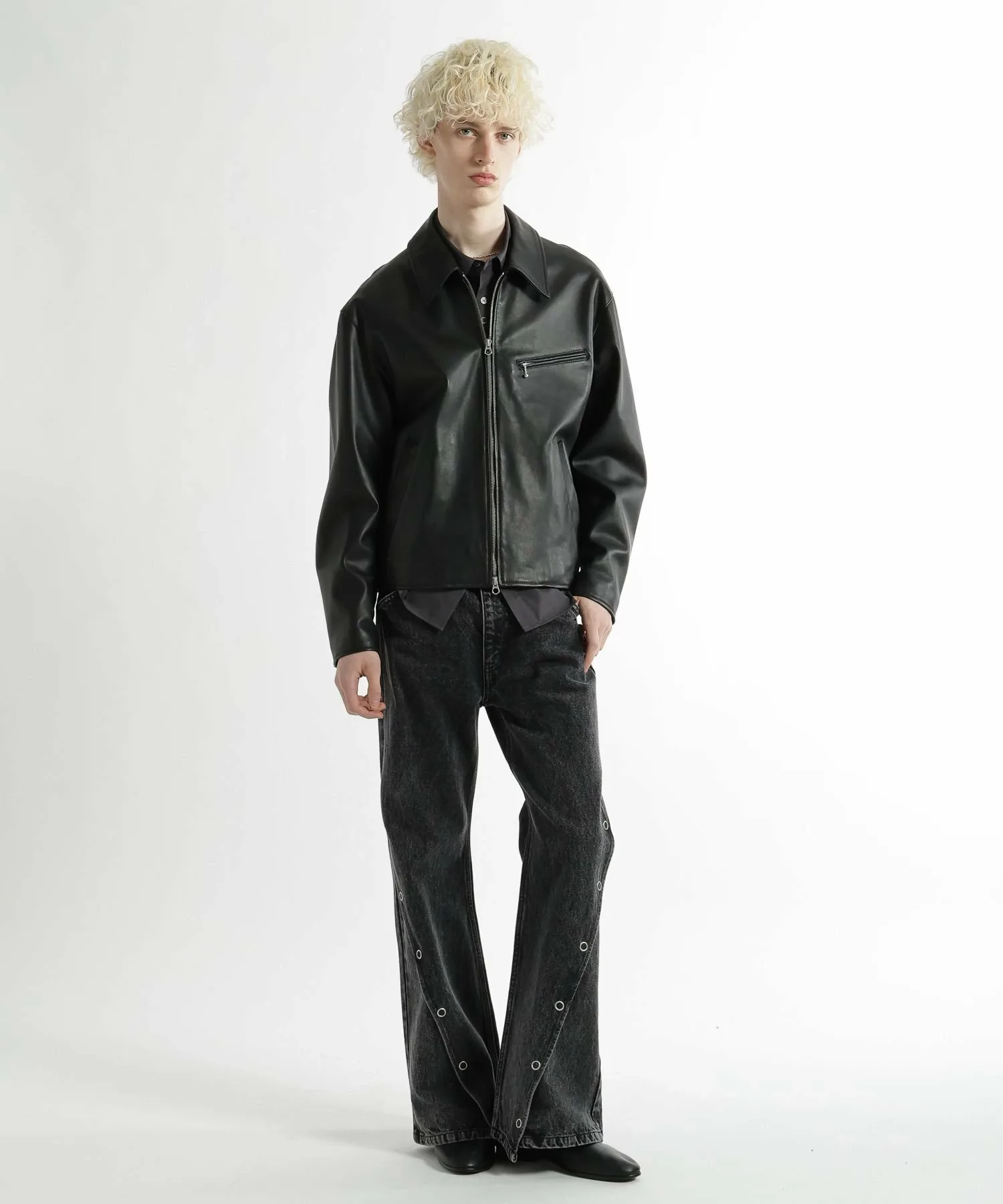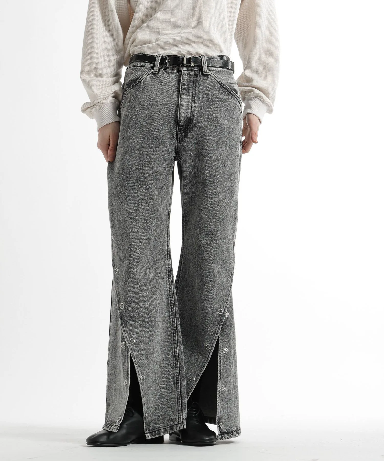 Высокая талия и оптимальный объем без чрезмерного расклешения красиво подчеркивают линии ног, создавая современный баланс.