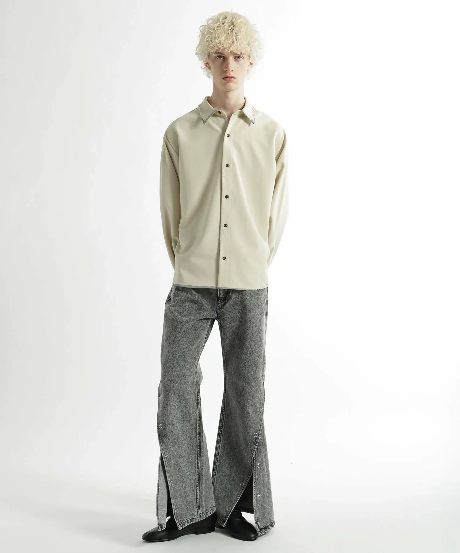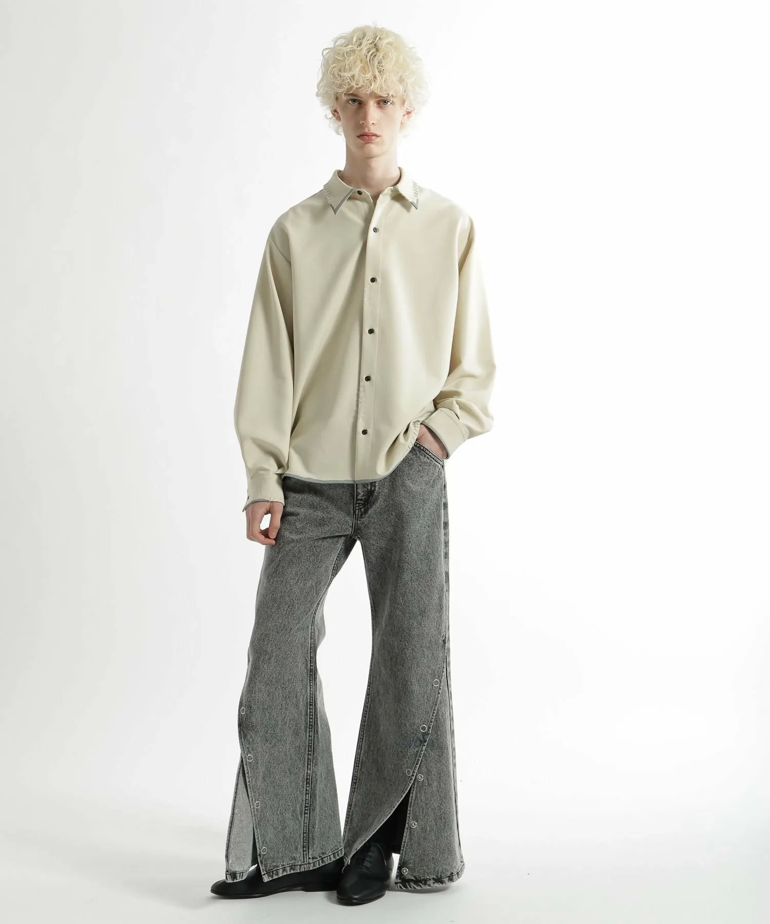 Боковые кнопки добавляют дизайнерский акцент. Расстегивая и застегивая кнопки, вы можете регулировать ширину подола, изменяя силуэт от прямого до расклешенного.