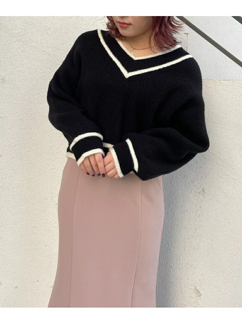 Немного укороченная длина идеально сочетается с модными вещами, такими как брюки с высокой талией♪
