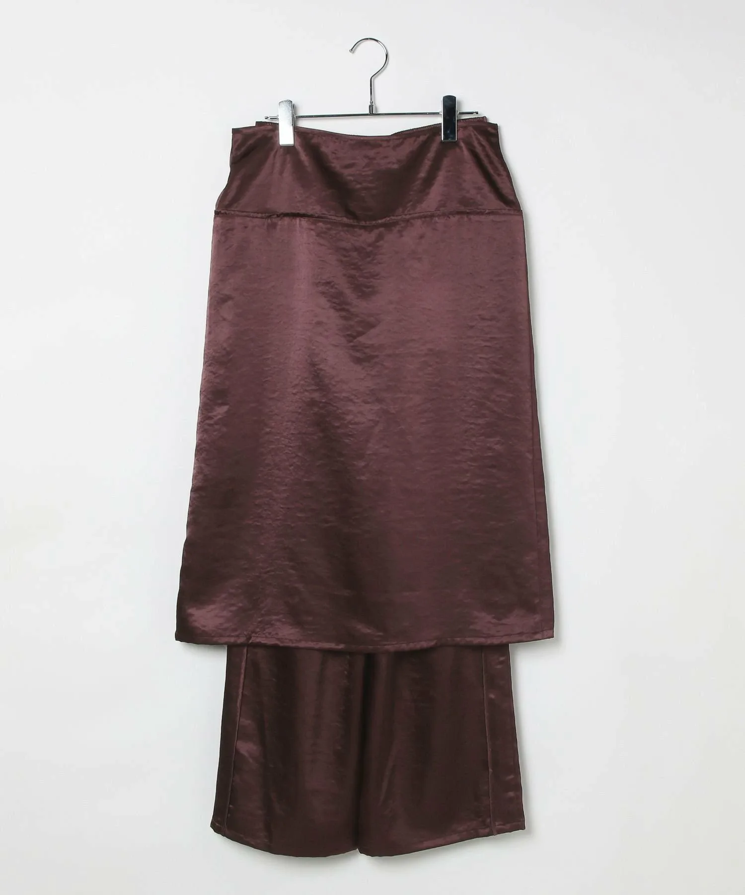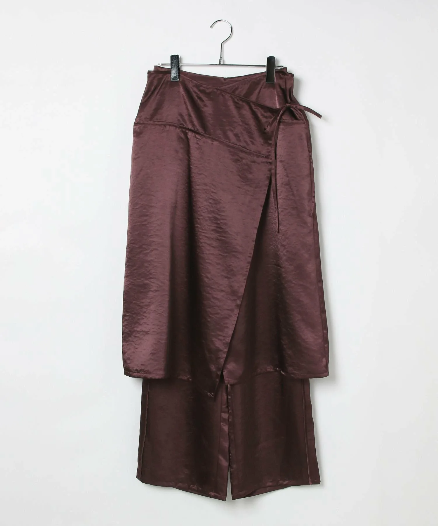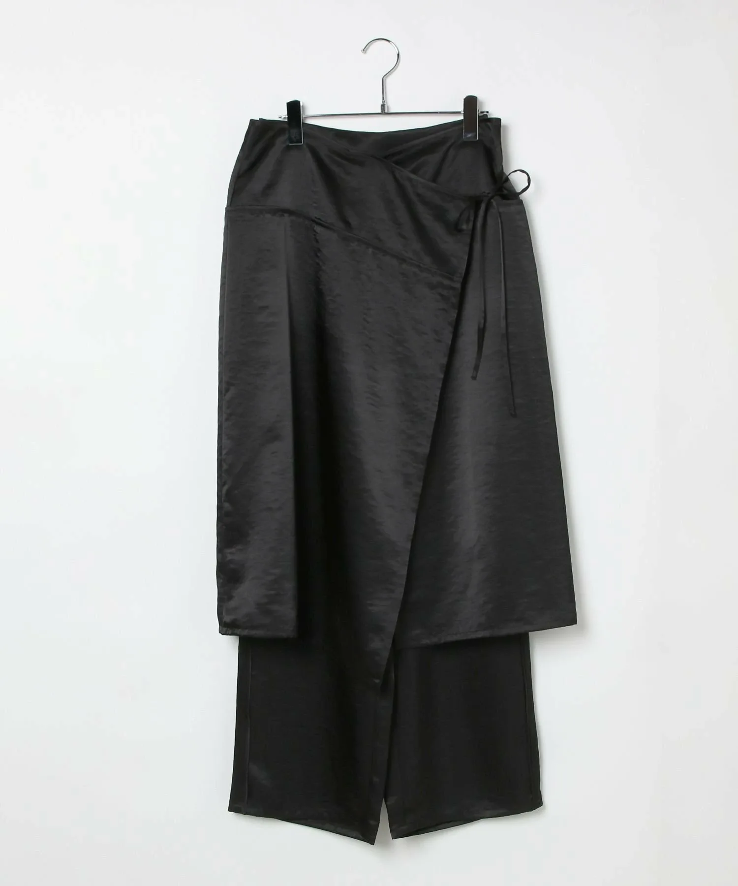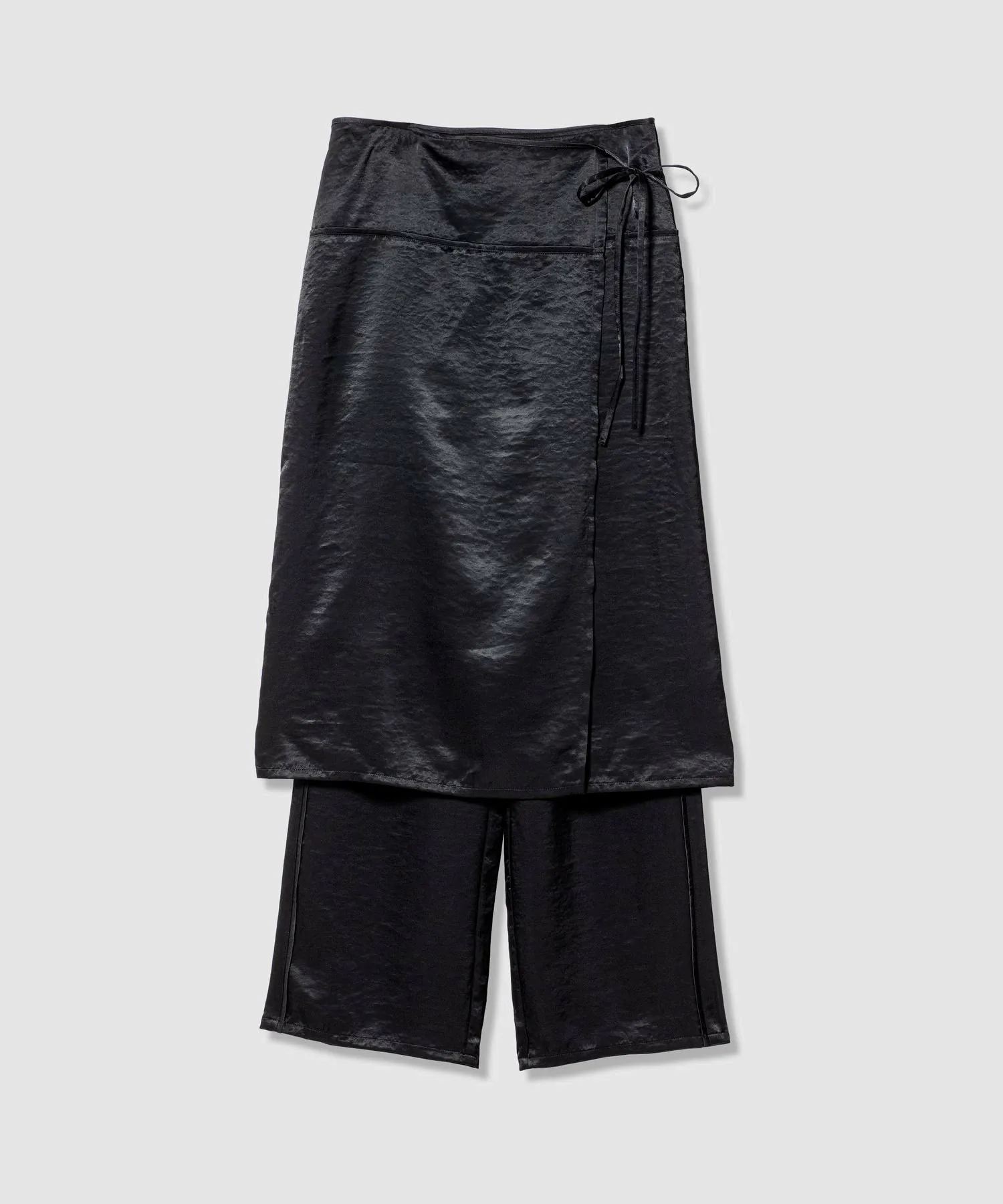 Дизайн брюк, которые можно носить в сочетании с юбкой из того же материала с запахом.