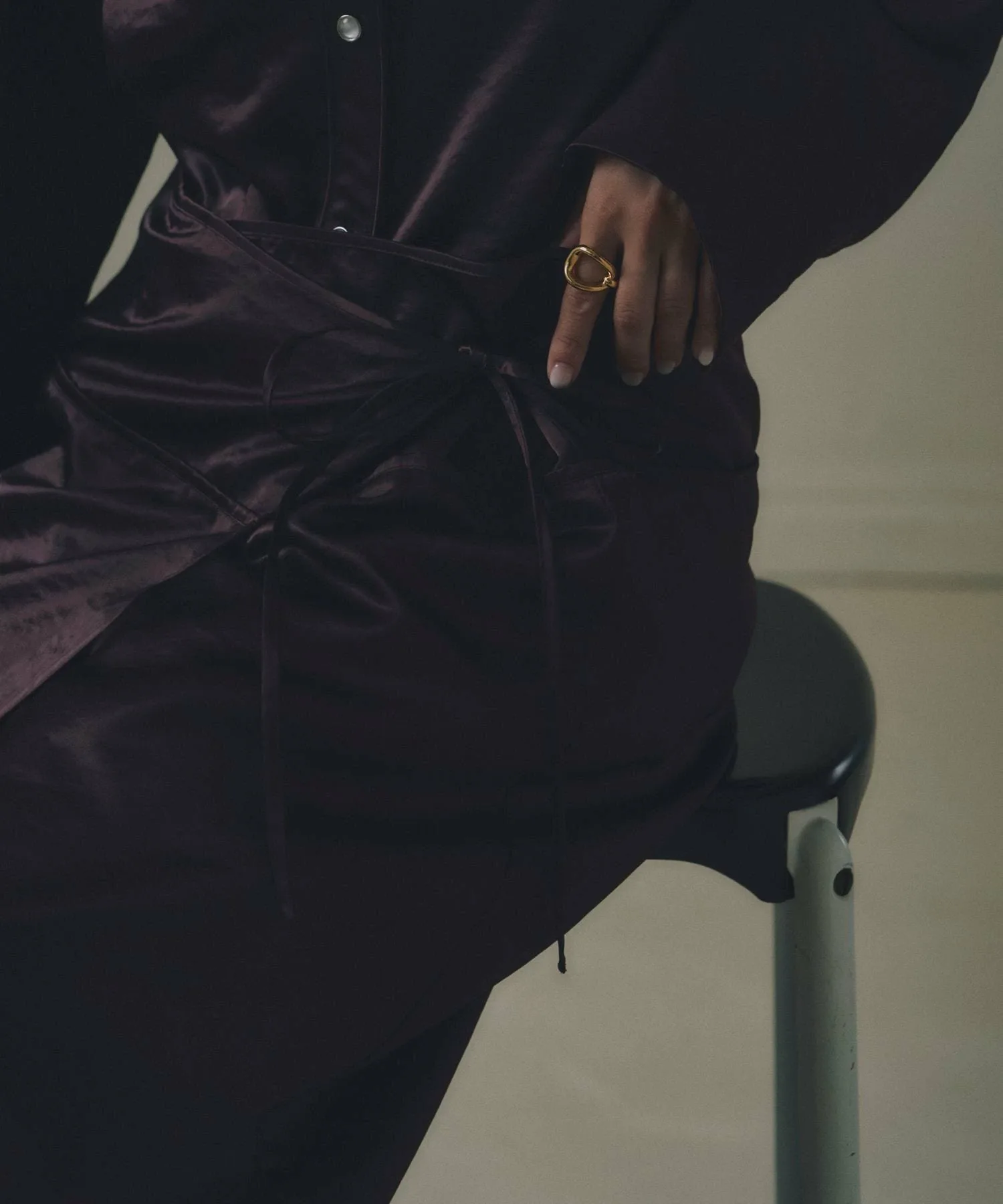 Изготовлен из атласной ткани, похожей на триацетат, с элегантным блеском и умеренной плотностью.
