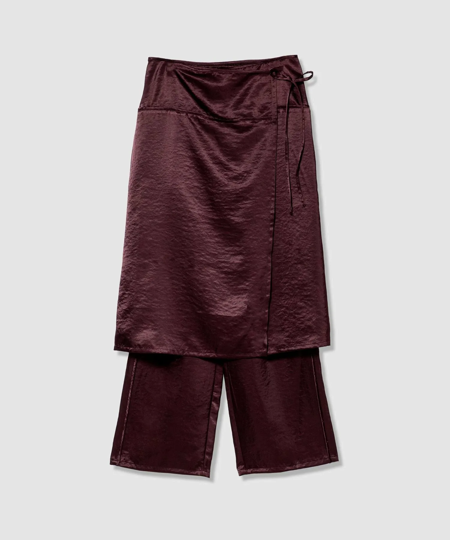 Дизайн брюк, которые можно носить в сочетании с юбкой из того же материала с запахом.