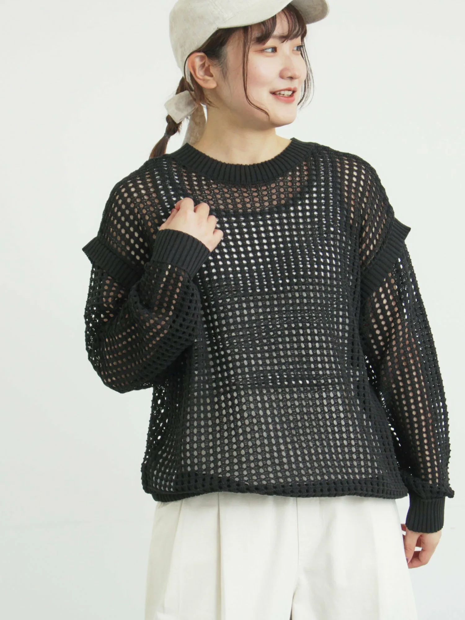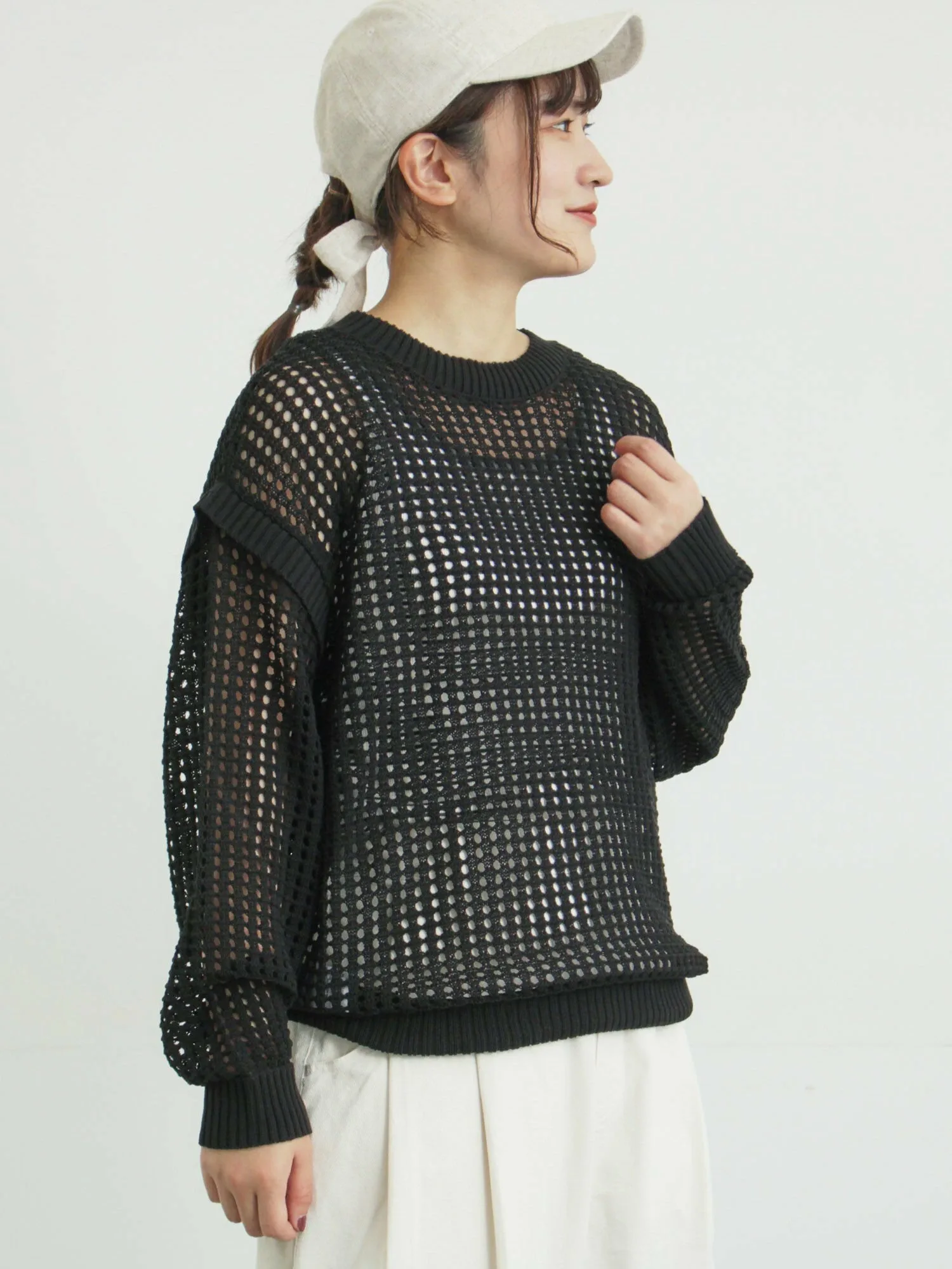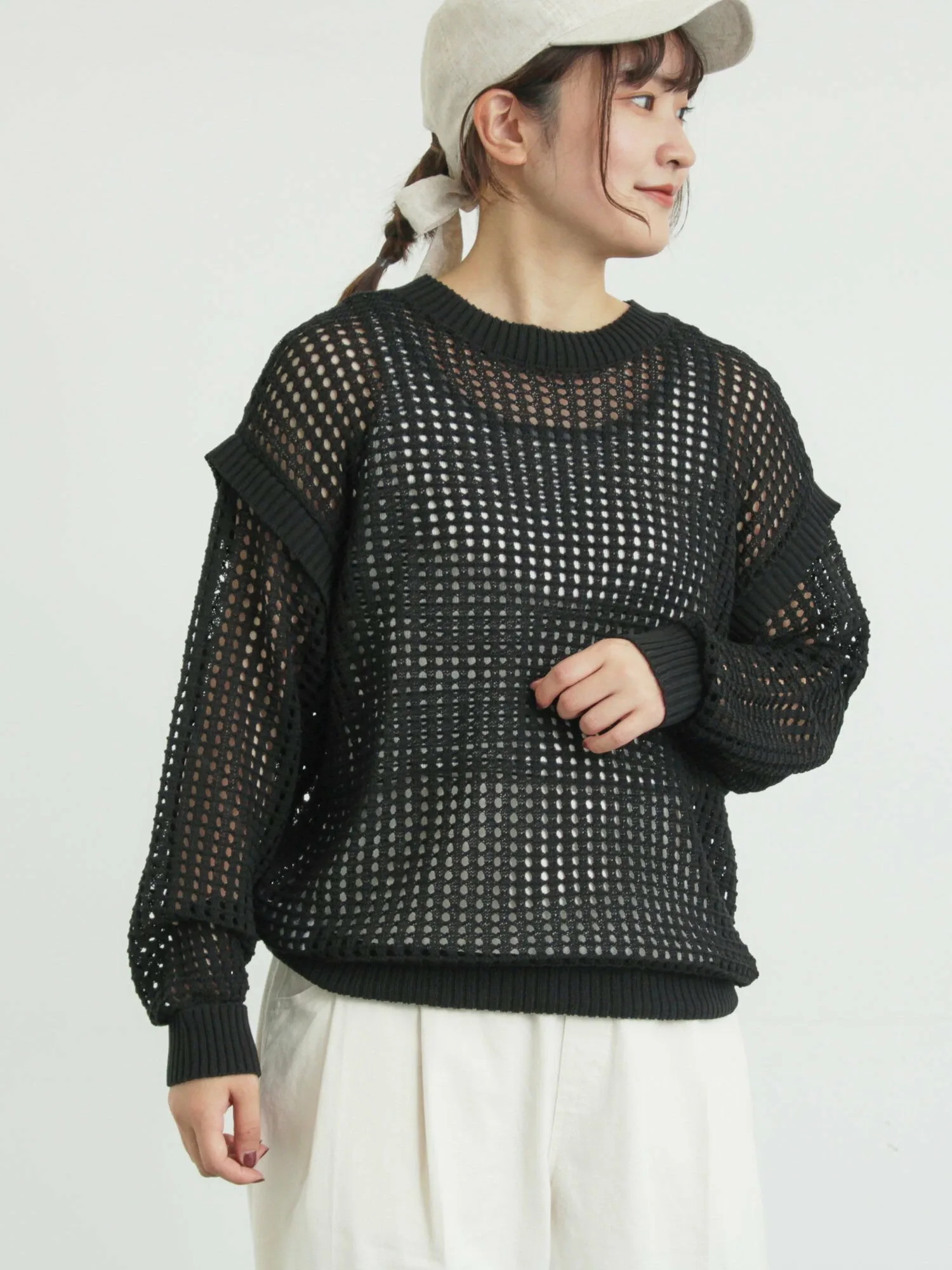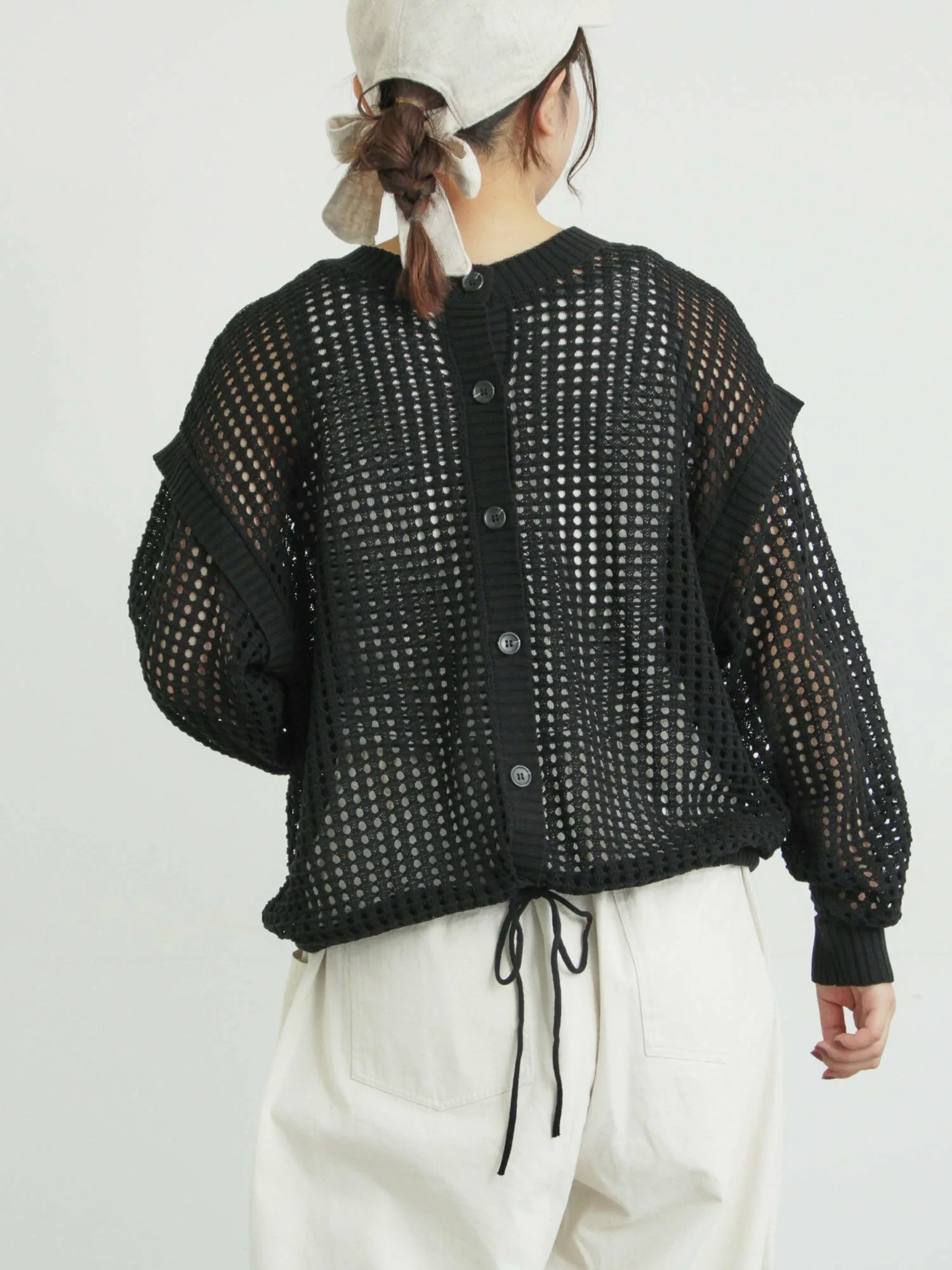Топ с ажурной вязкой, позволяющей носить его как спереди, так и сзади, создает ощущение легкости.